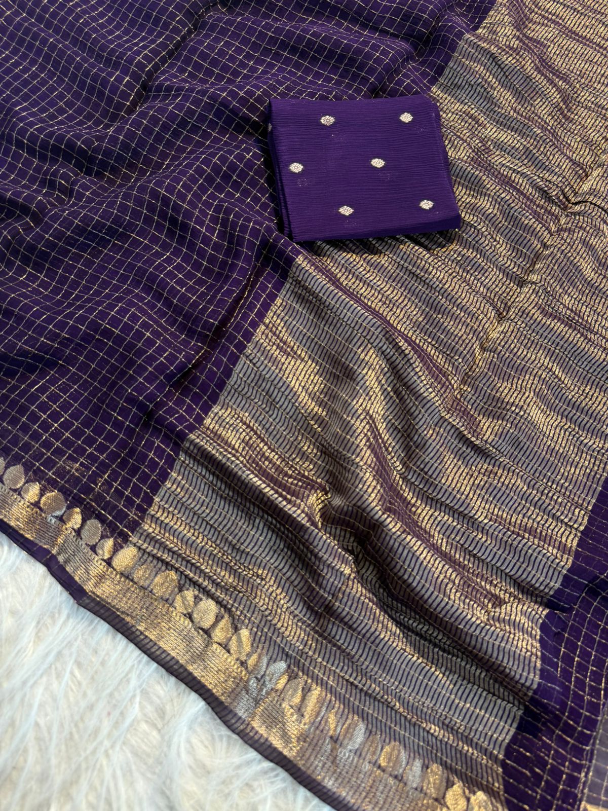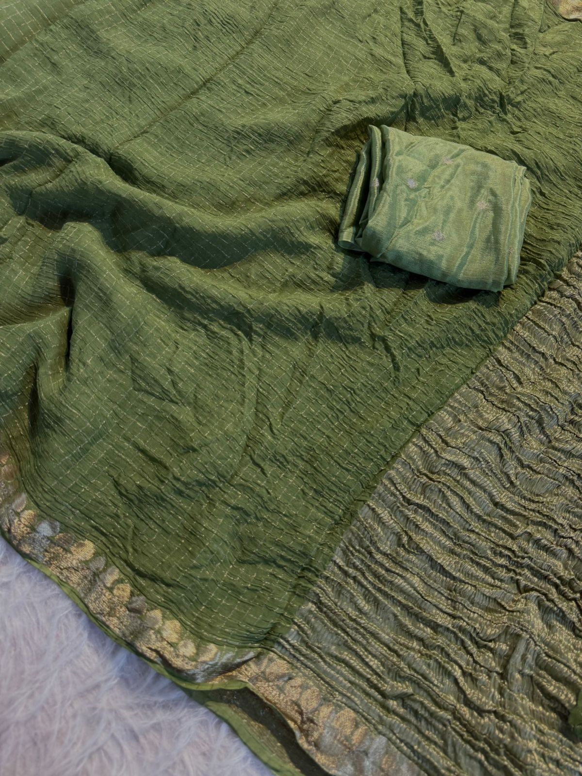 Paired with a pure viscose Chinon blouse in the same color, this ensemble offers a seamless and sophisticated look. Simple yet classy, this saree is ideal for those who love understated elegance.