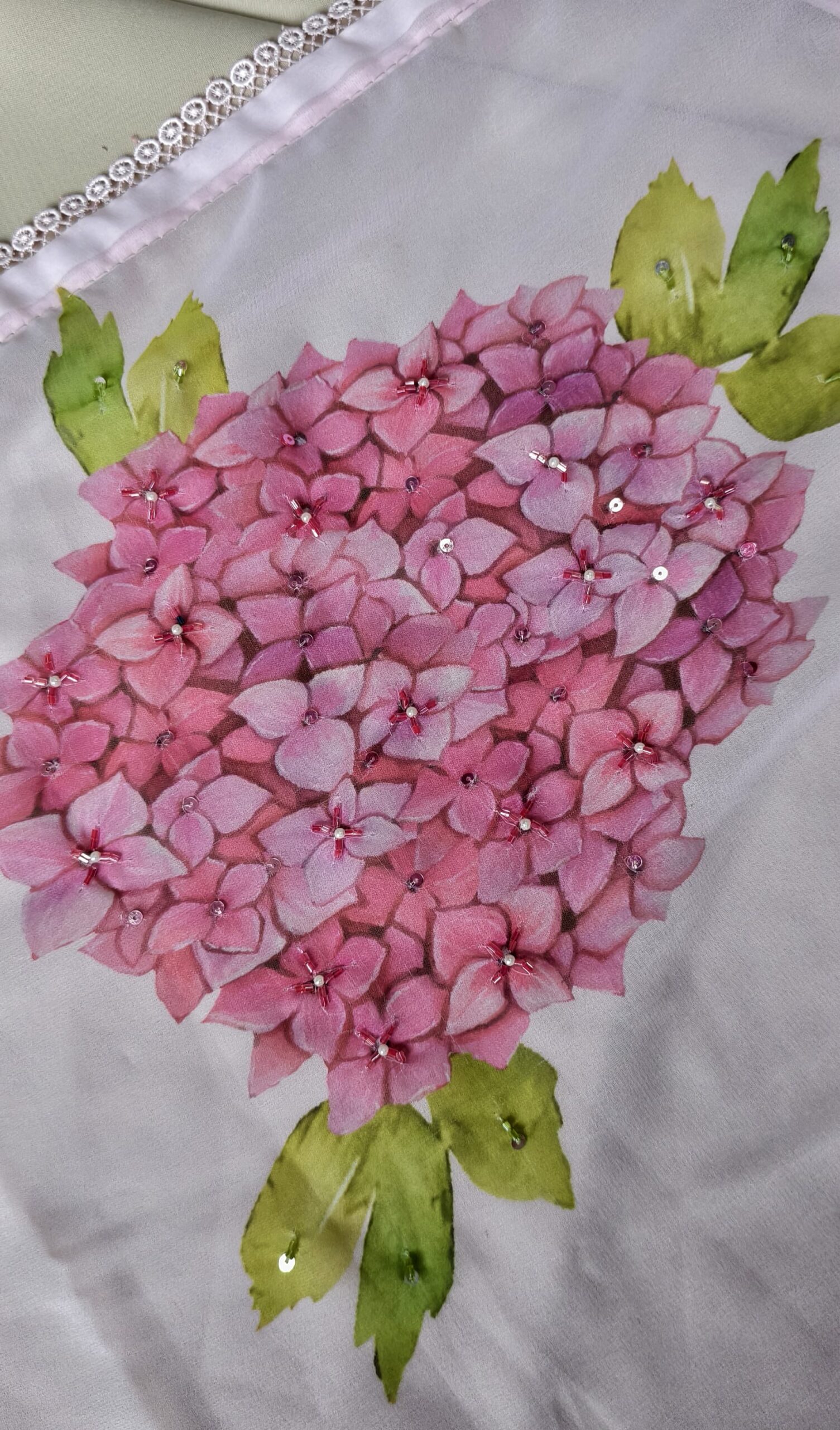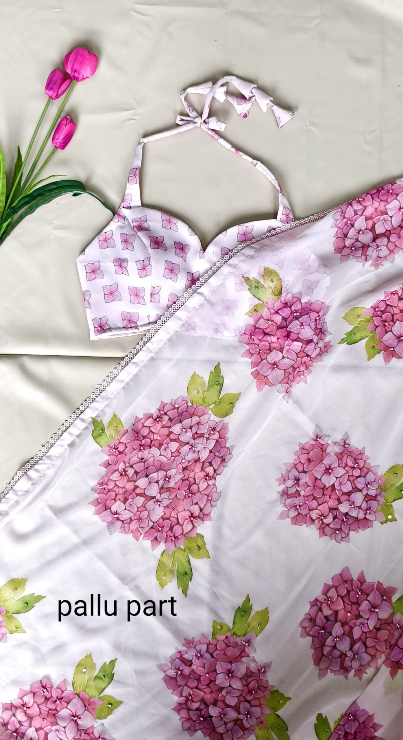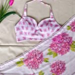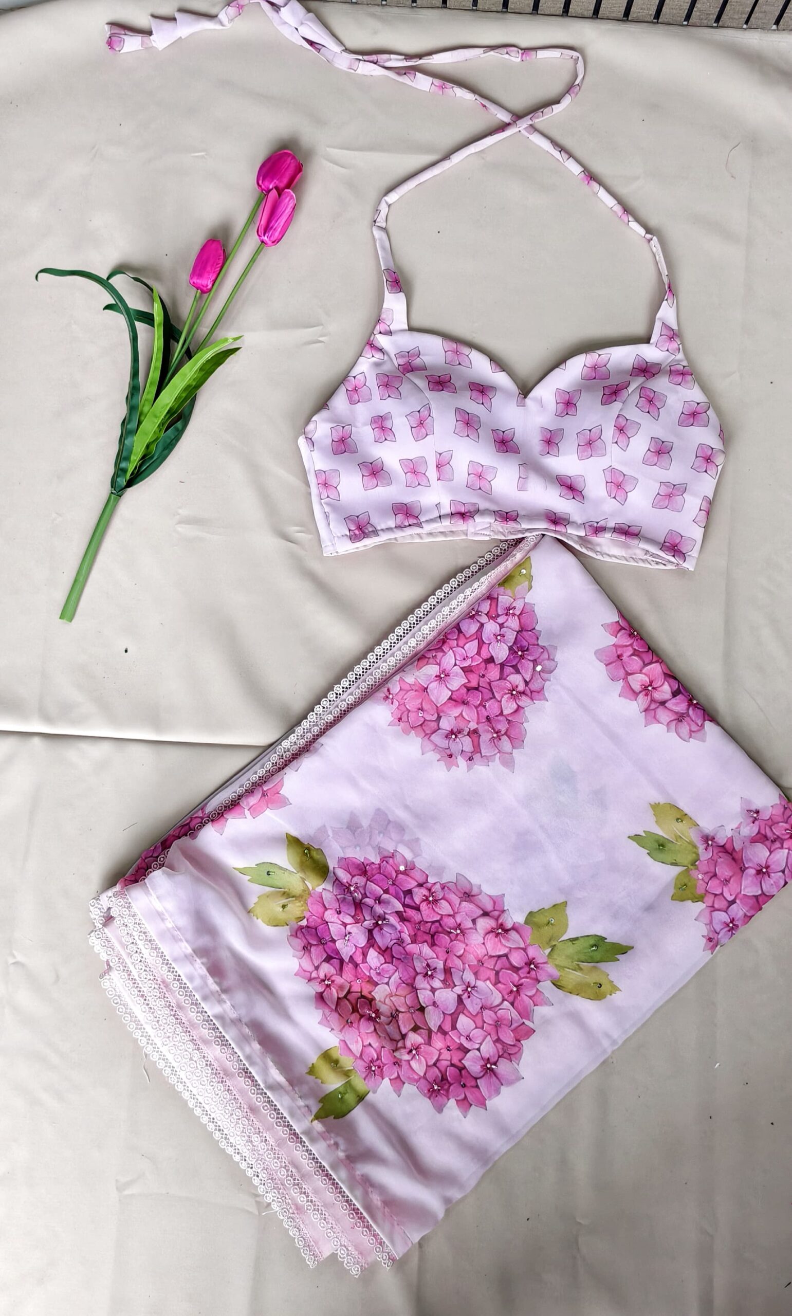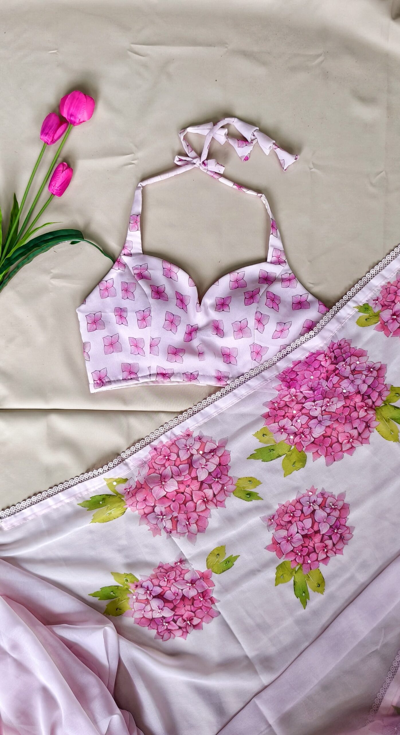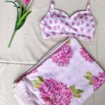 🌺 Adorned with floral prints and delicate beads work, this saree beautifully blends charm and sophistication.
