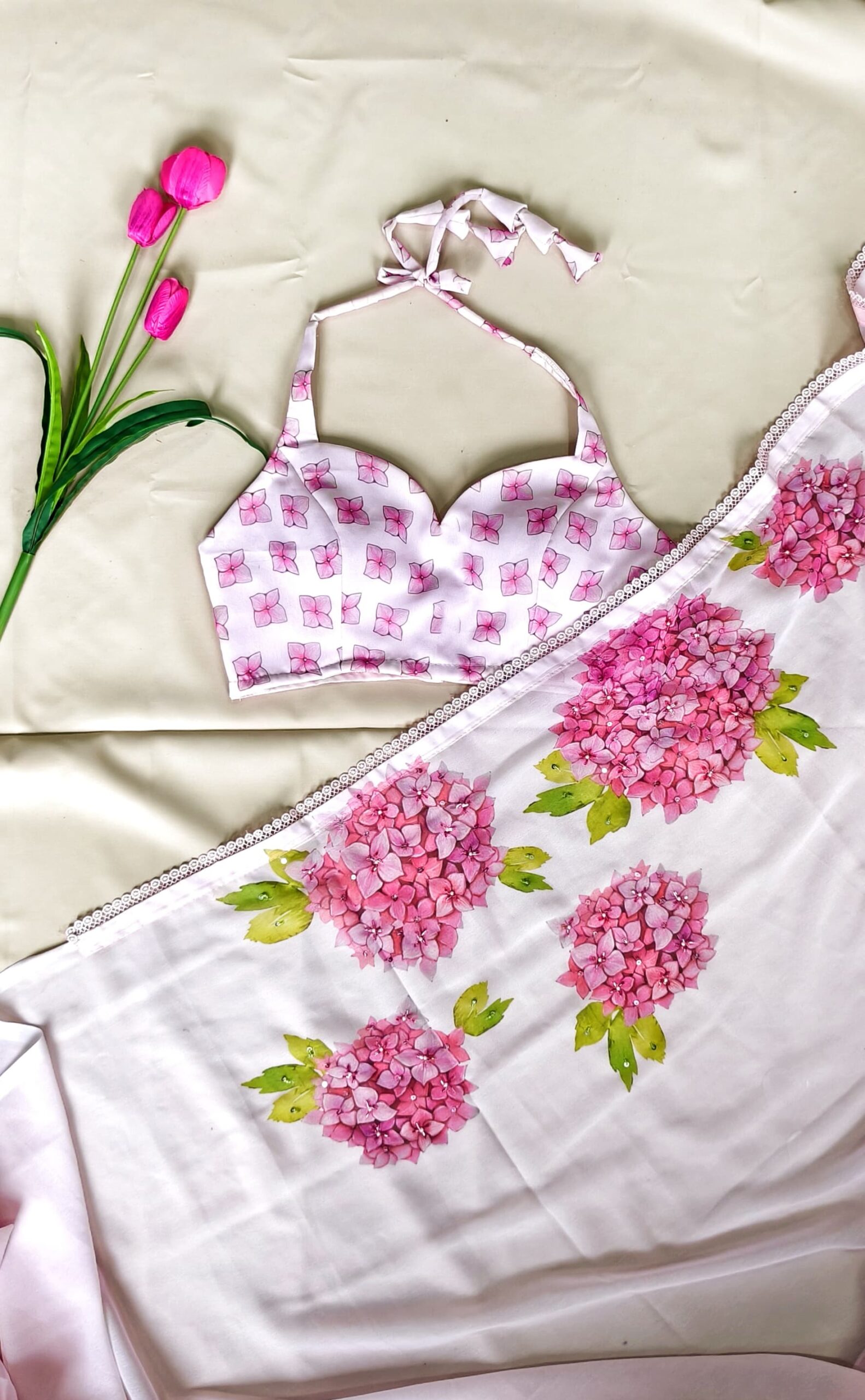 💐 Blouse: Comes with a matching floral printed blouse piece
