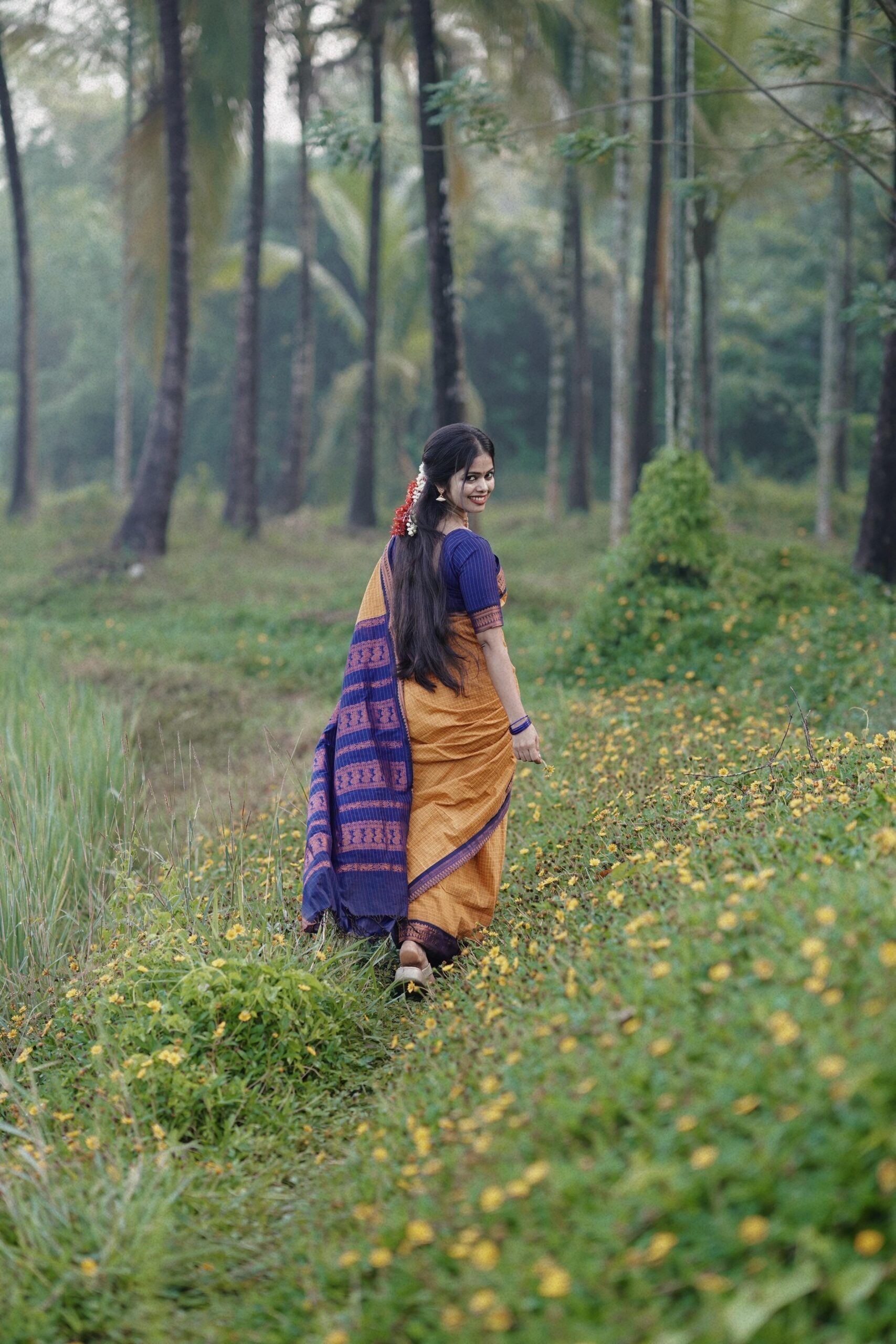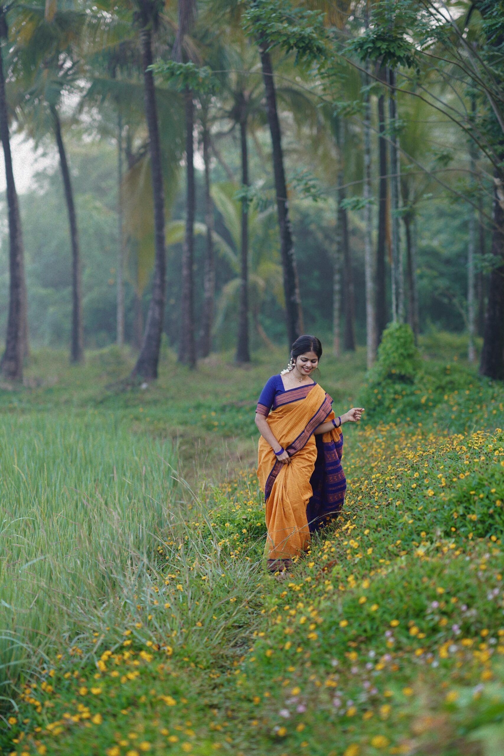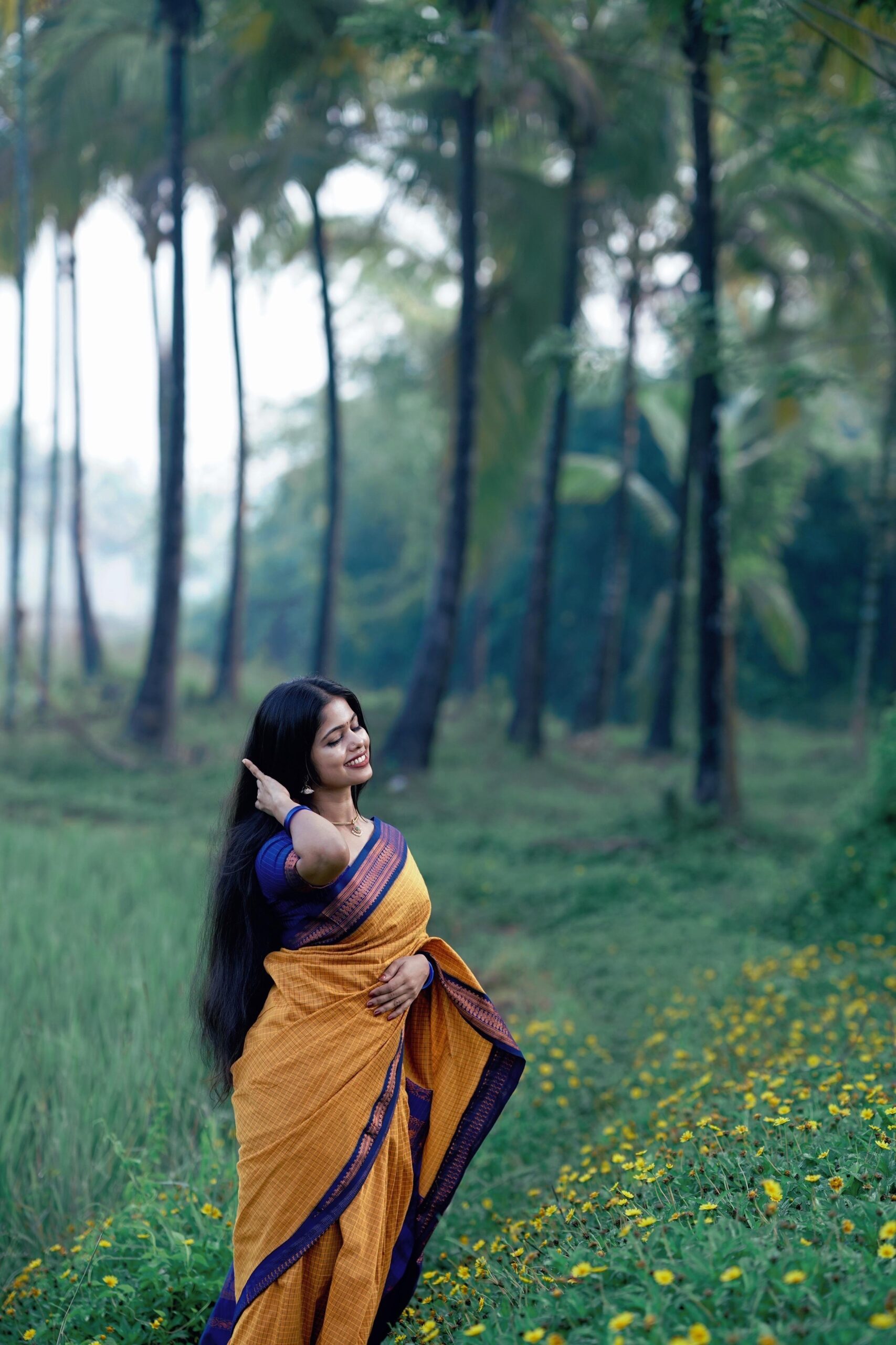 Elegant Kalyani cotton saree crafted in soft, breathable fabric with a graceful drape. Featuring a simple body with a contrast woven border and classic pallu, this saree is perfect for daily wear, office, and traditional outings. Comes with a matching blouse piece.