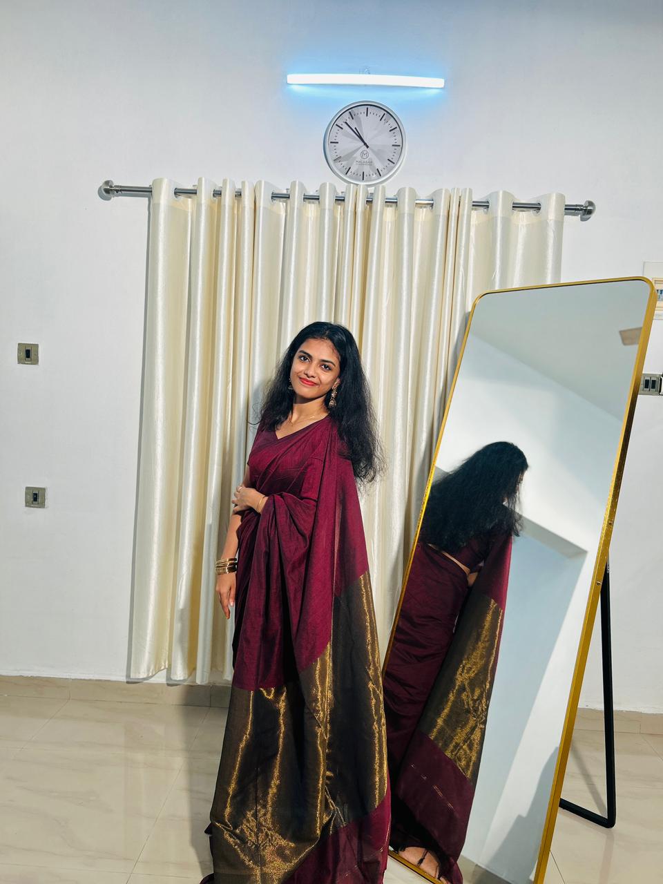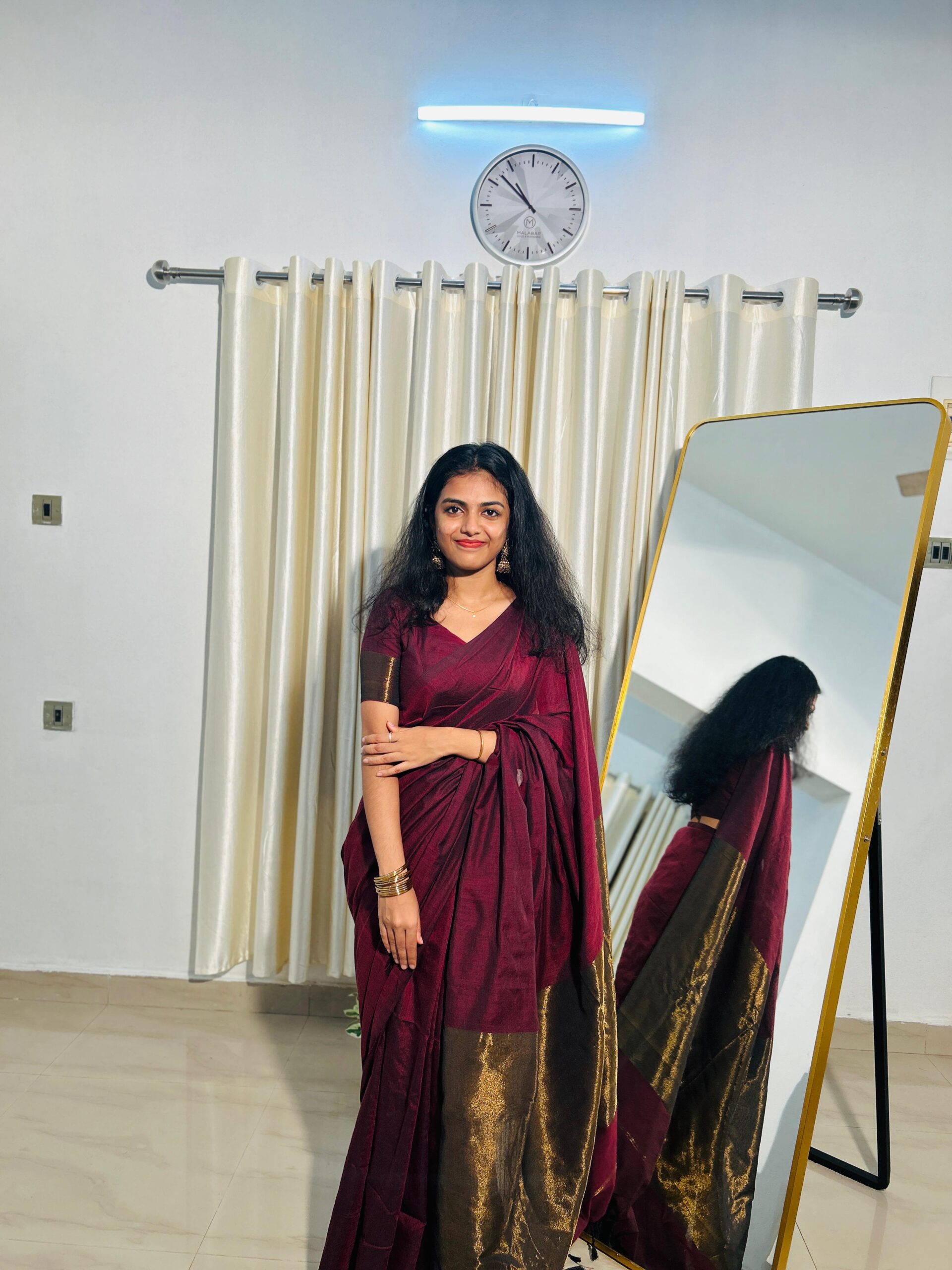 Bring home the timeless charm of Nayanthara’s iconic style with this Nayanthara Inspired Khadi Saree. Crafted from premium handwoven khadi, the saree offers a natural texture and soft, breathable comfort. Its minimalist design and elegant flow capture the essence of simplicity and sophistication, making it perfect for everyday wear, festive moments, or elegant gatherings. A saree that truly defines grace — subtle, classic, and beautifully effortless.