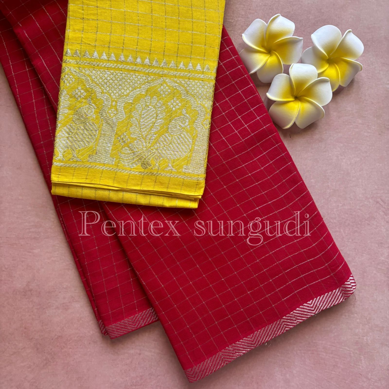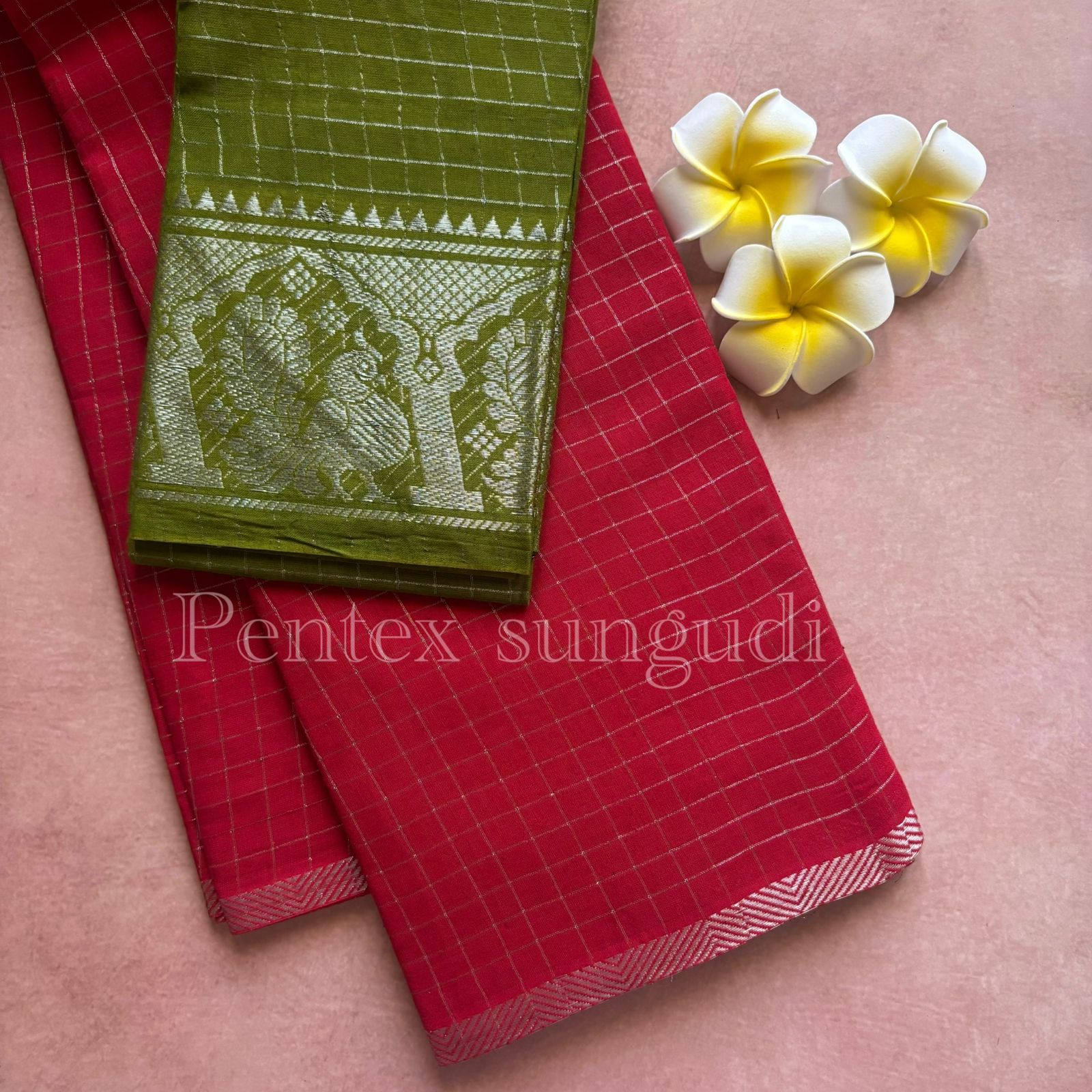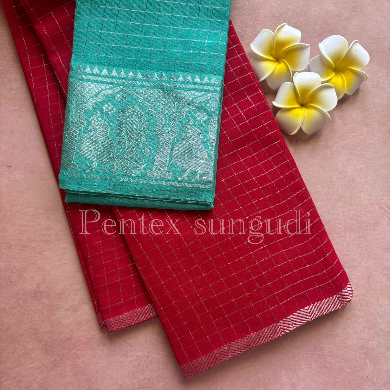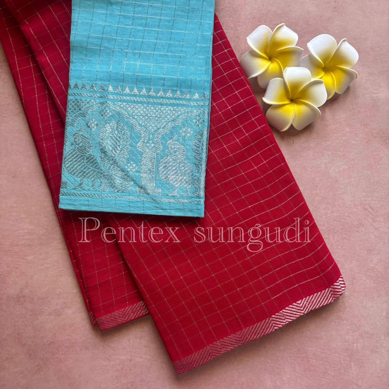 🌷 Premium Quality Silver Pentex Sungudi Cotton Saree 🌷