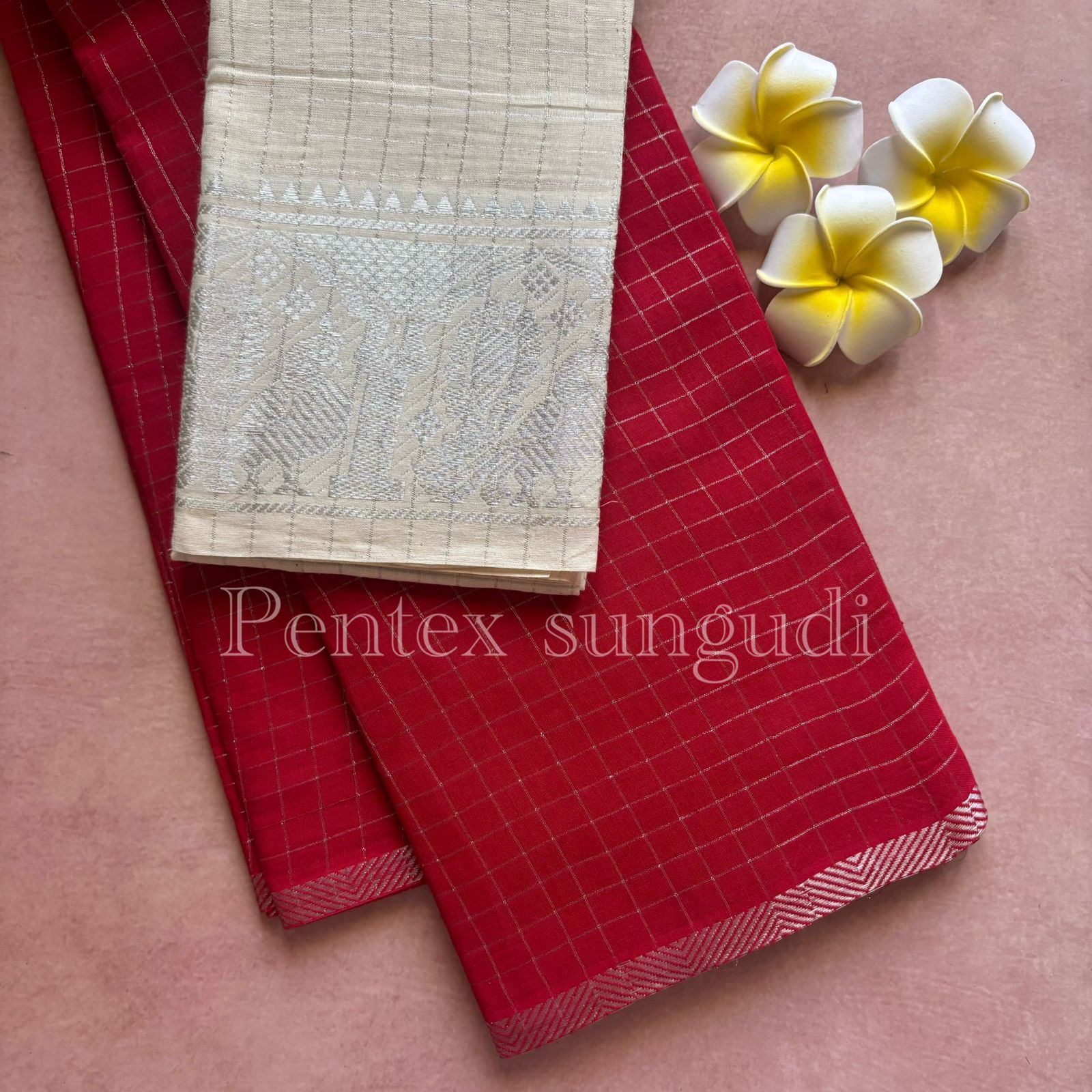 Premium Quality Silver Pentex Sungudi Cotton Saree