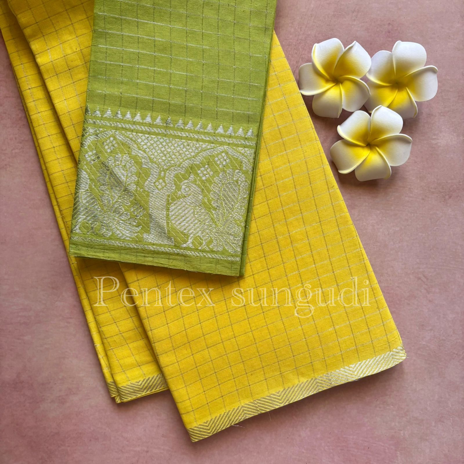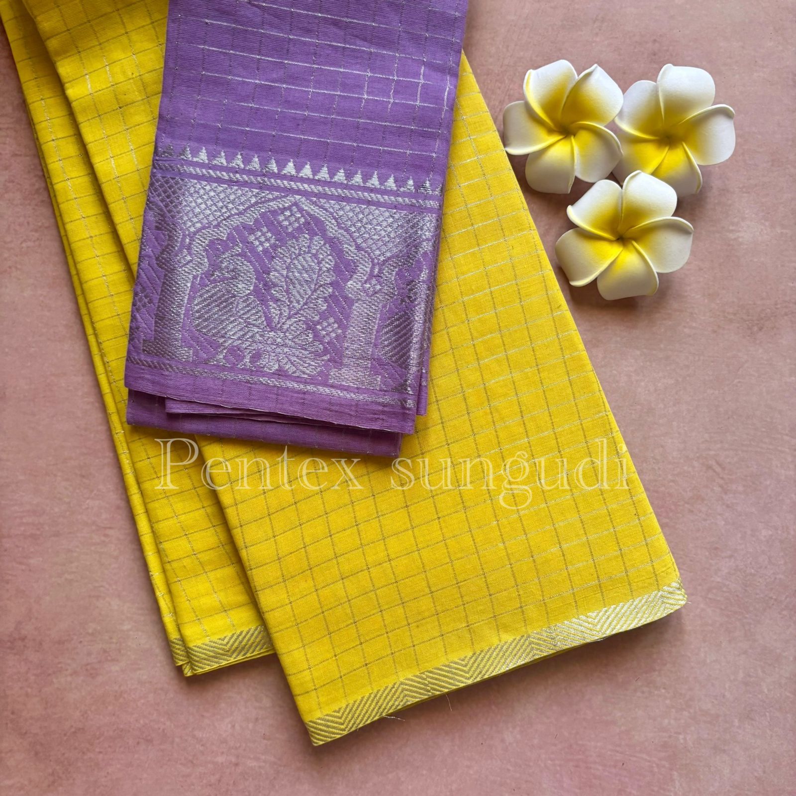🌷 Premium Quality Silver Pentex Sungudi Cotton Saree 🌷
