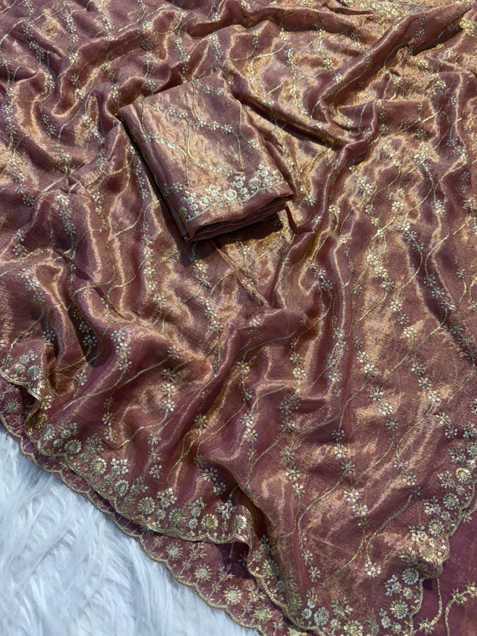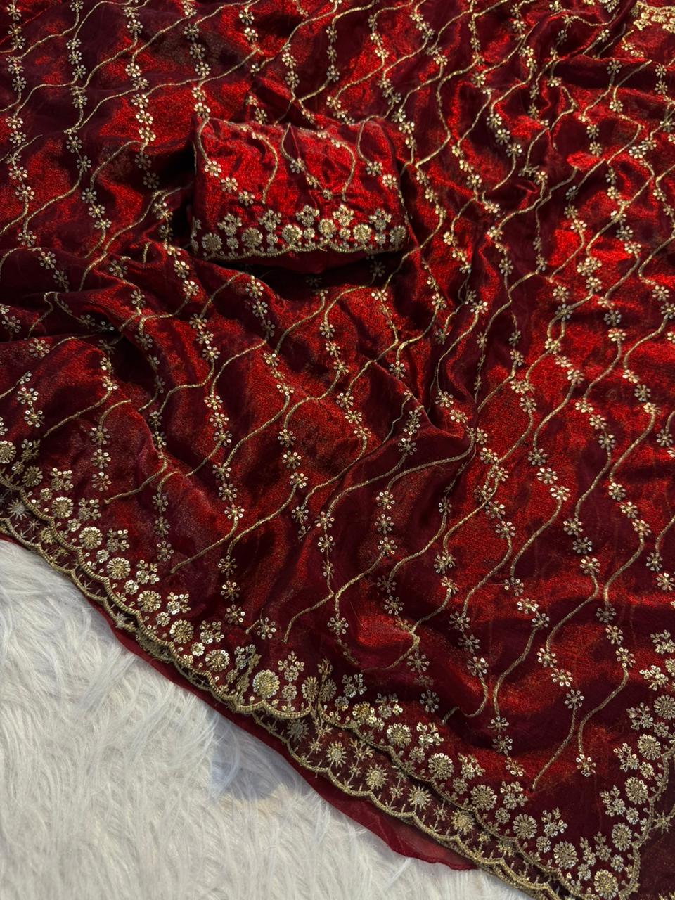 🔹 Blouse: Matching space silk blouse with elegant sequin embroidery work