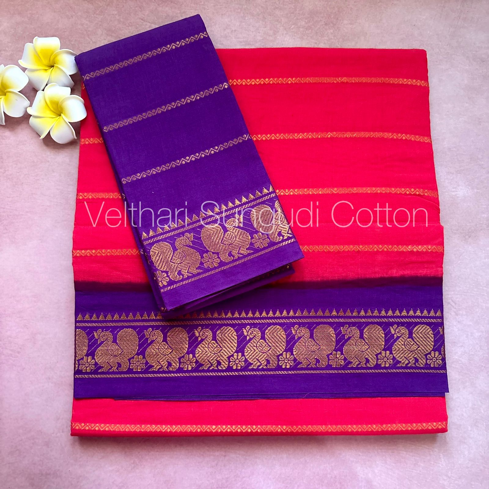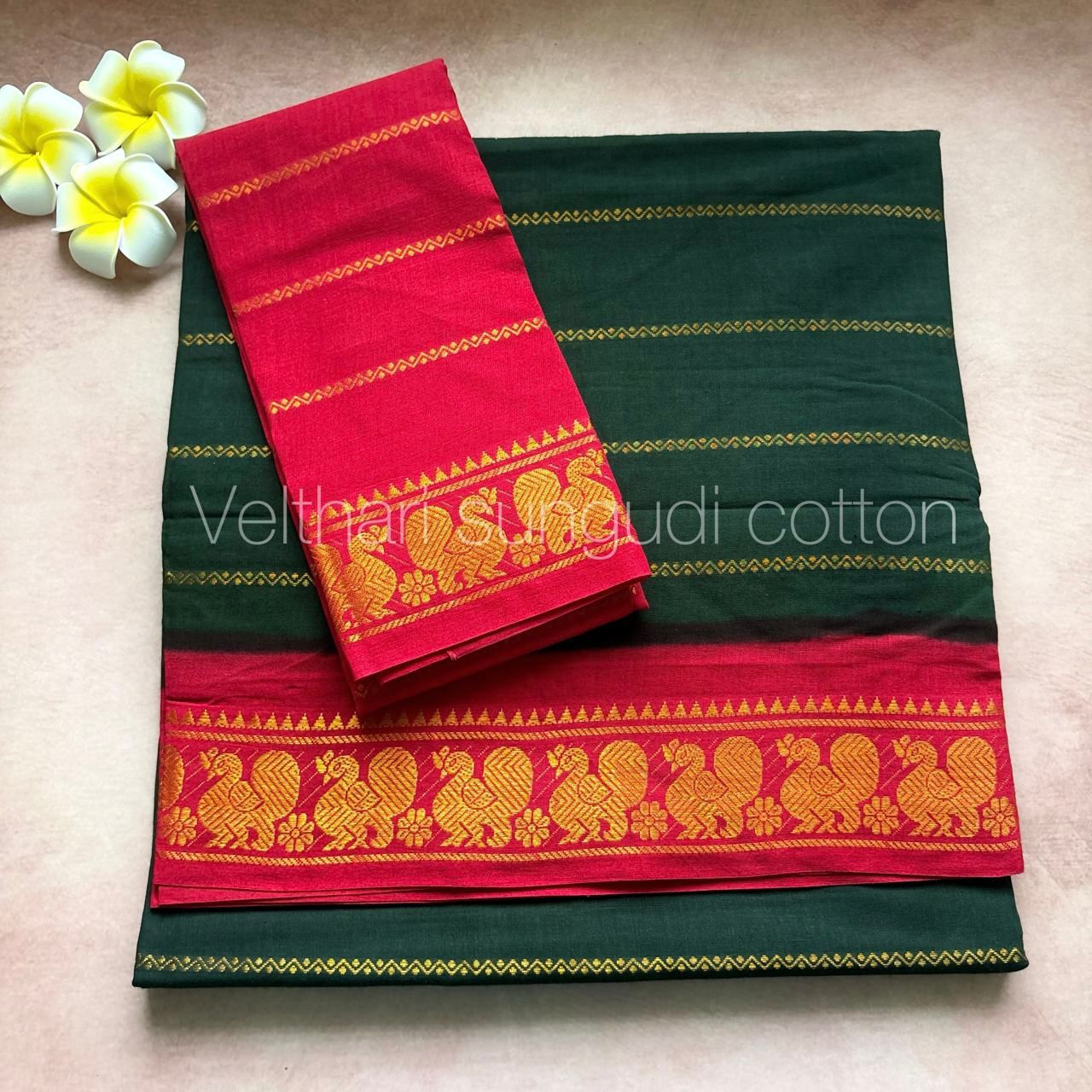 Premium quality velthari sungudi cotton saree with contrast border and contrast sungudi blouse