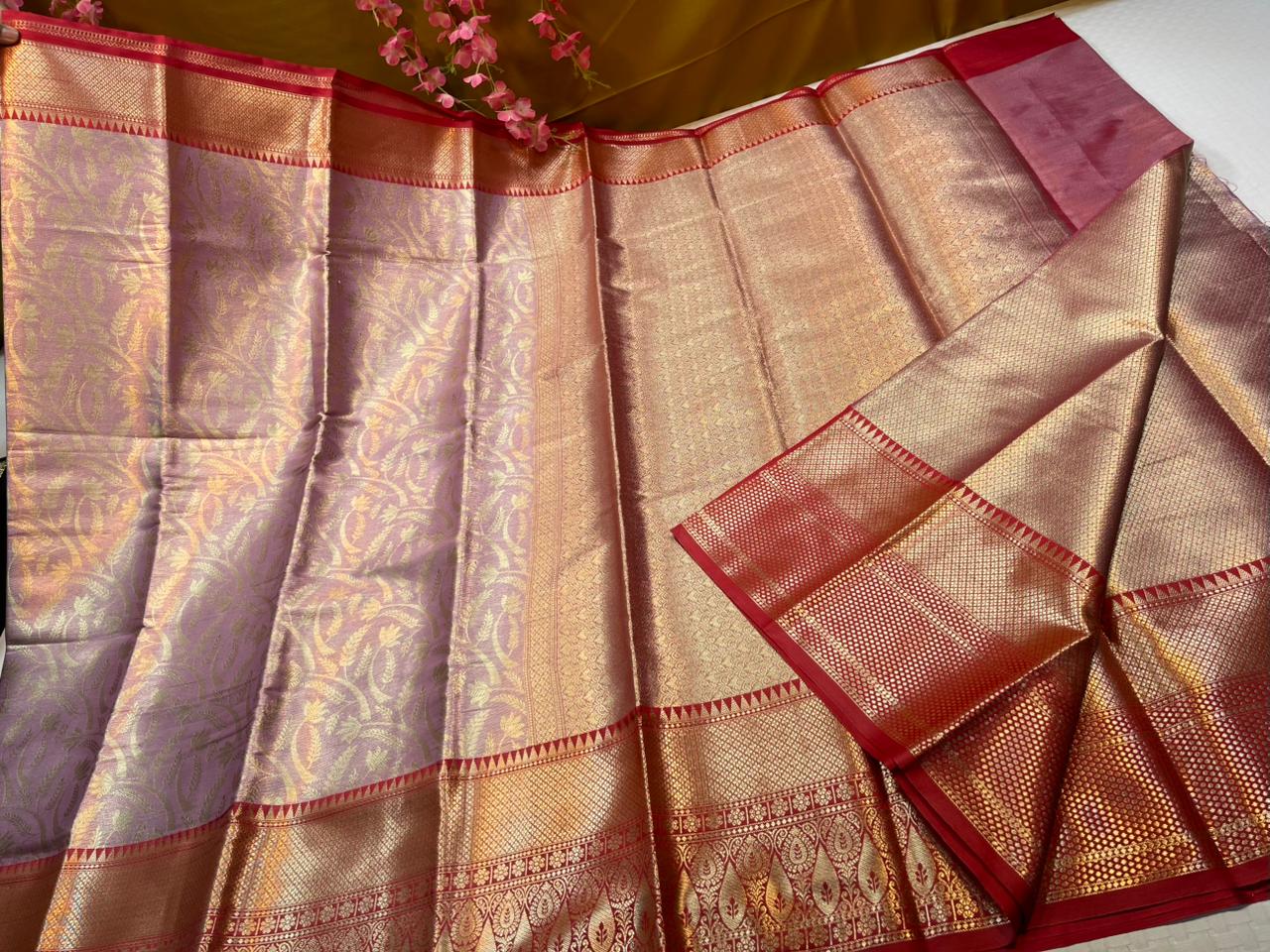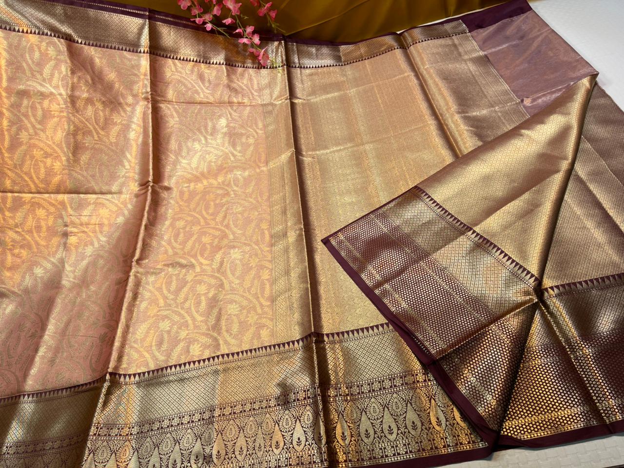 Soft semi-kanchi premium brocade saree in allover brocade jaal with zari weaving pattern allover saree having contrast weaving zari border