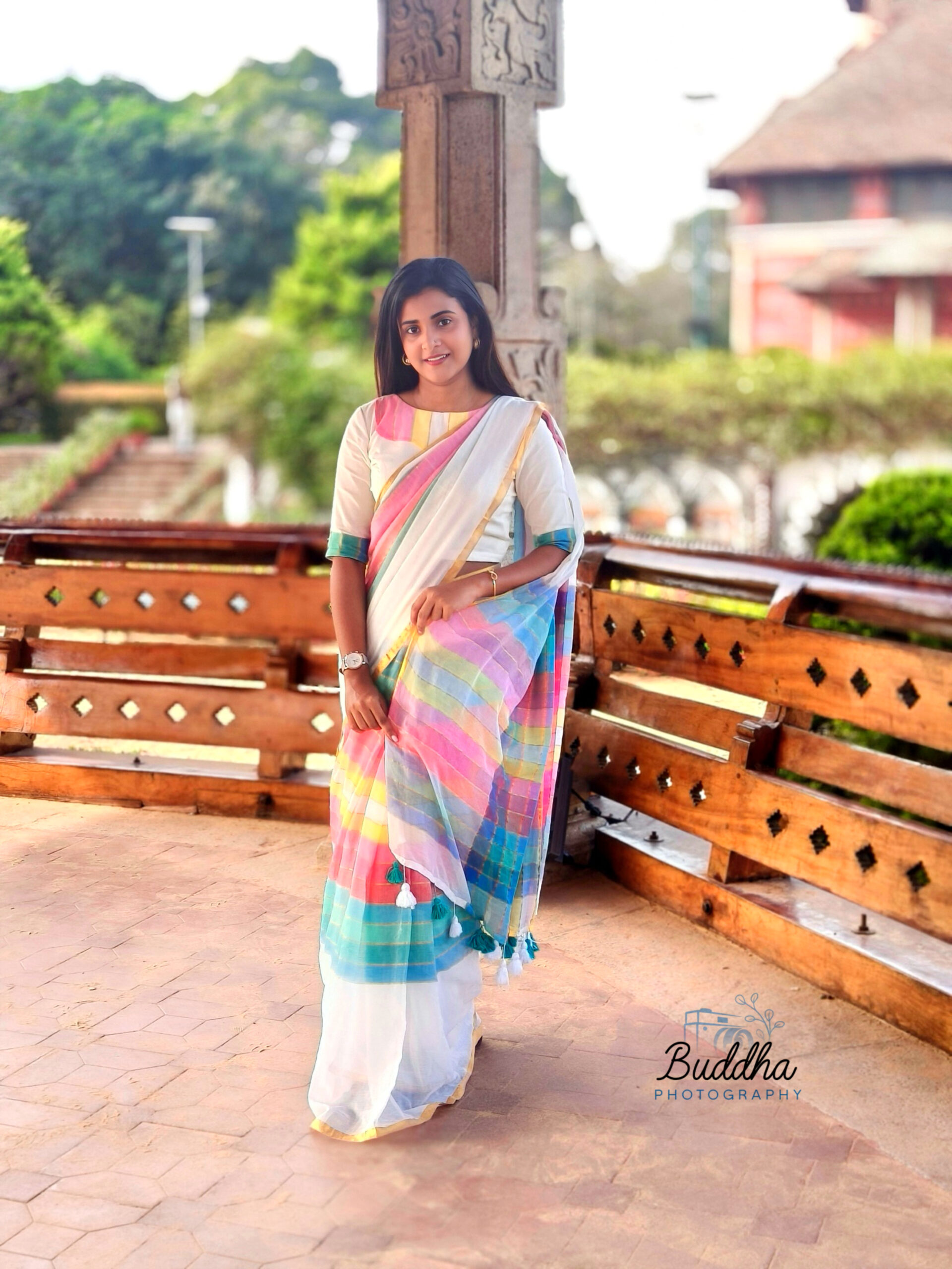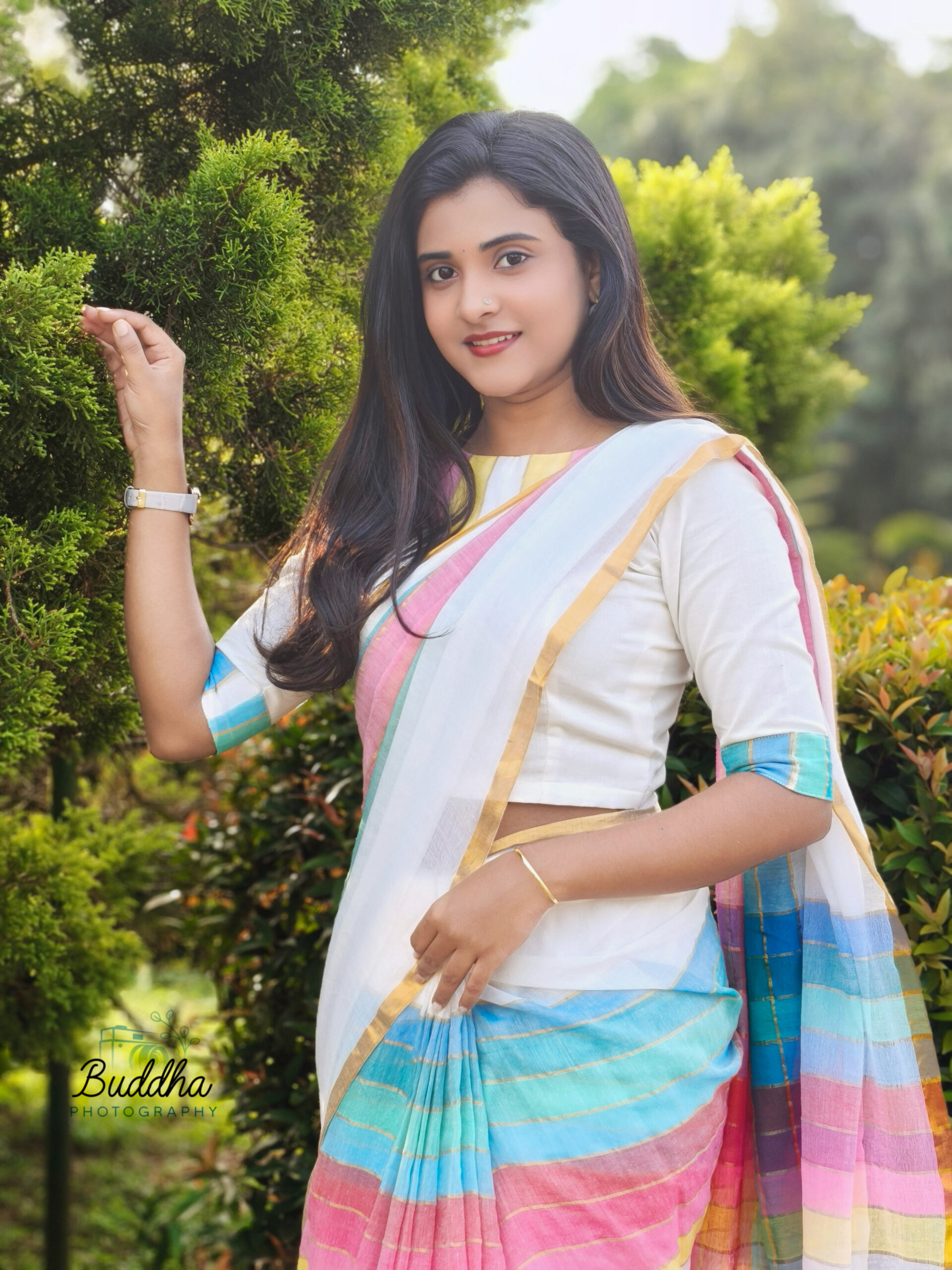 Lightweight and breathable pure mulmul saree crafted for all-day comfort. The soft texture offers a graceful fall, making it perfect for daily wear and summer occasions.