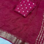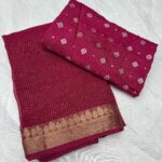 Adding to its richness, the saree features an exquisite jacquard-woven border, which lends depth, texture, and a regal touch to the overall design. It is perfectly paired with a same-color viscose blouse piece, allowing for a harmonious and complete ensemble that can be styled for both traditional events and contemporary gatherings.