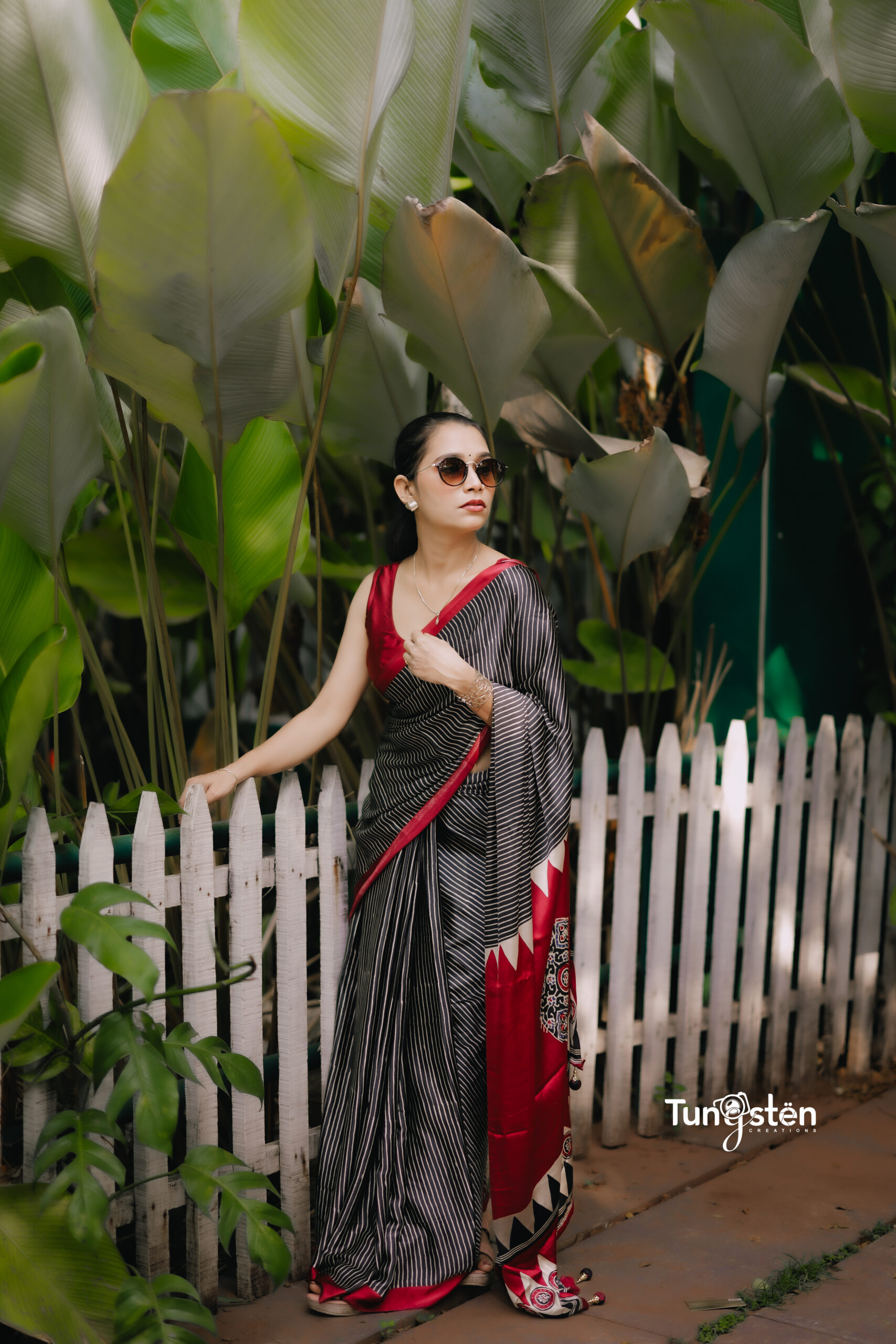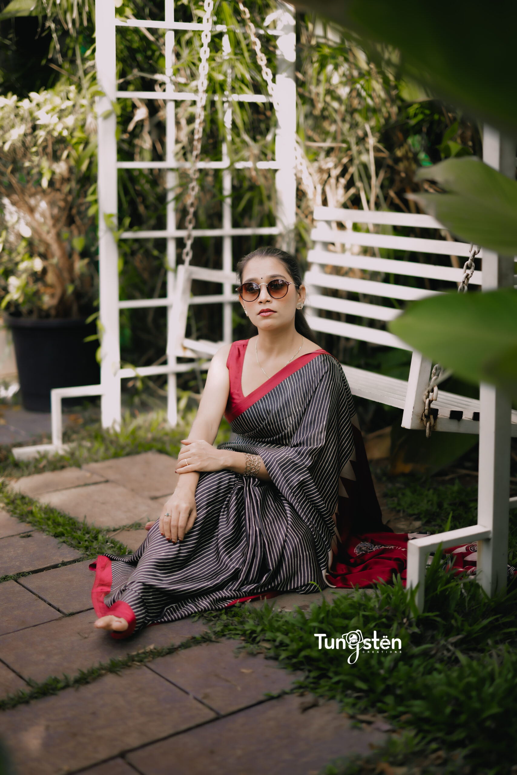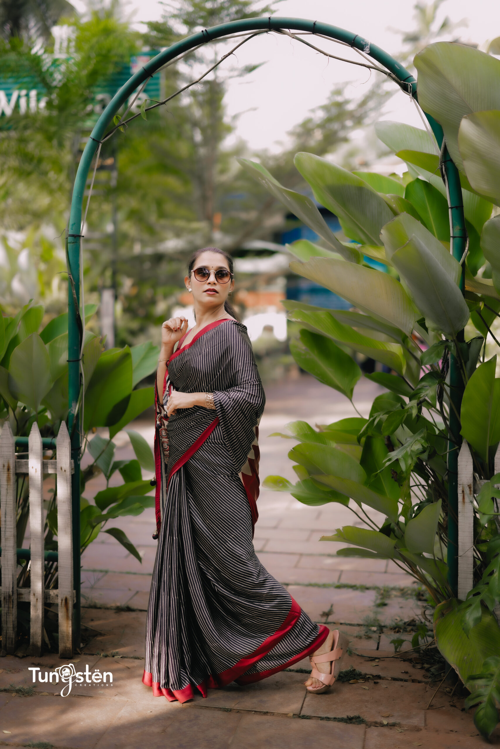 A beautifully crafted semi gaji mix semi modal silk saree in crepe fabric, offering a graceful drape and luxurious feel. Perfect for festive occasions, parties, and elegant gatherings.