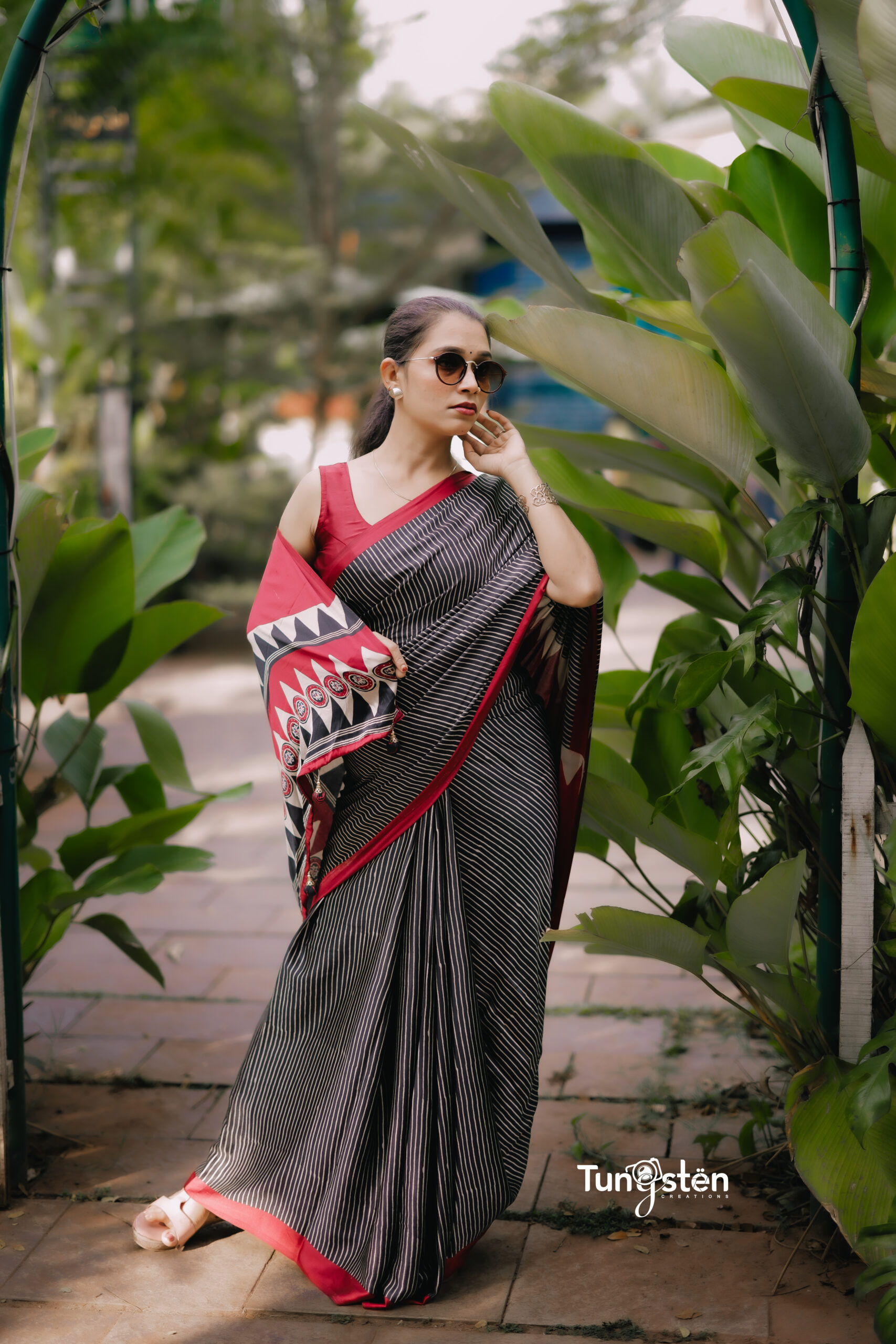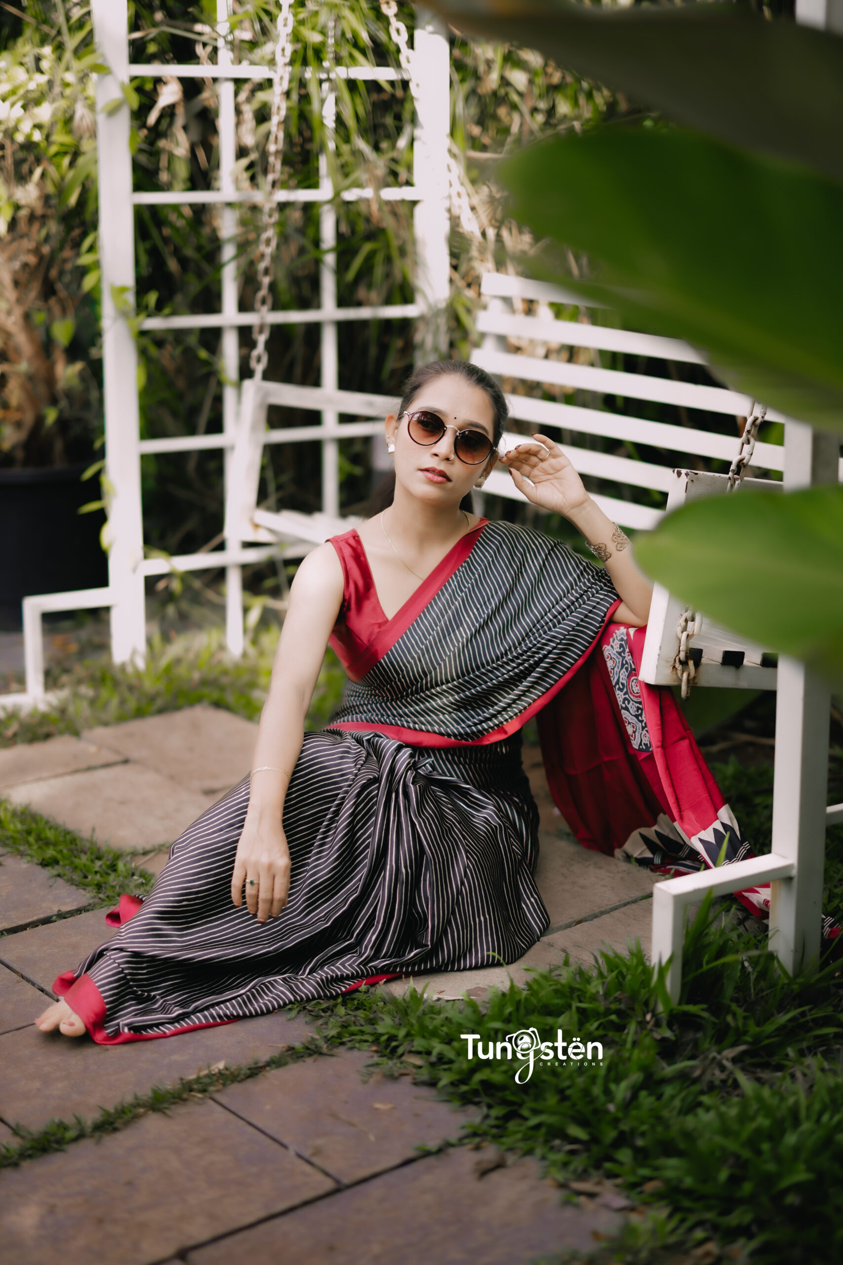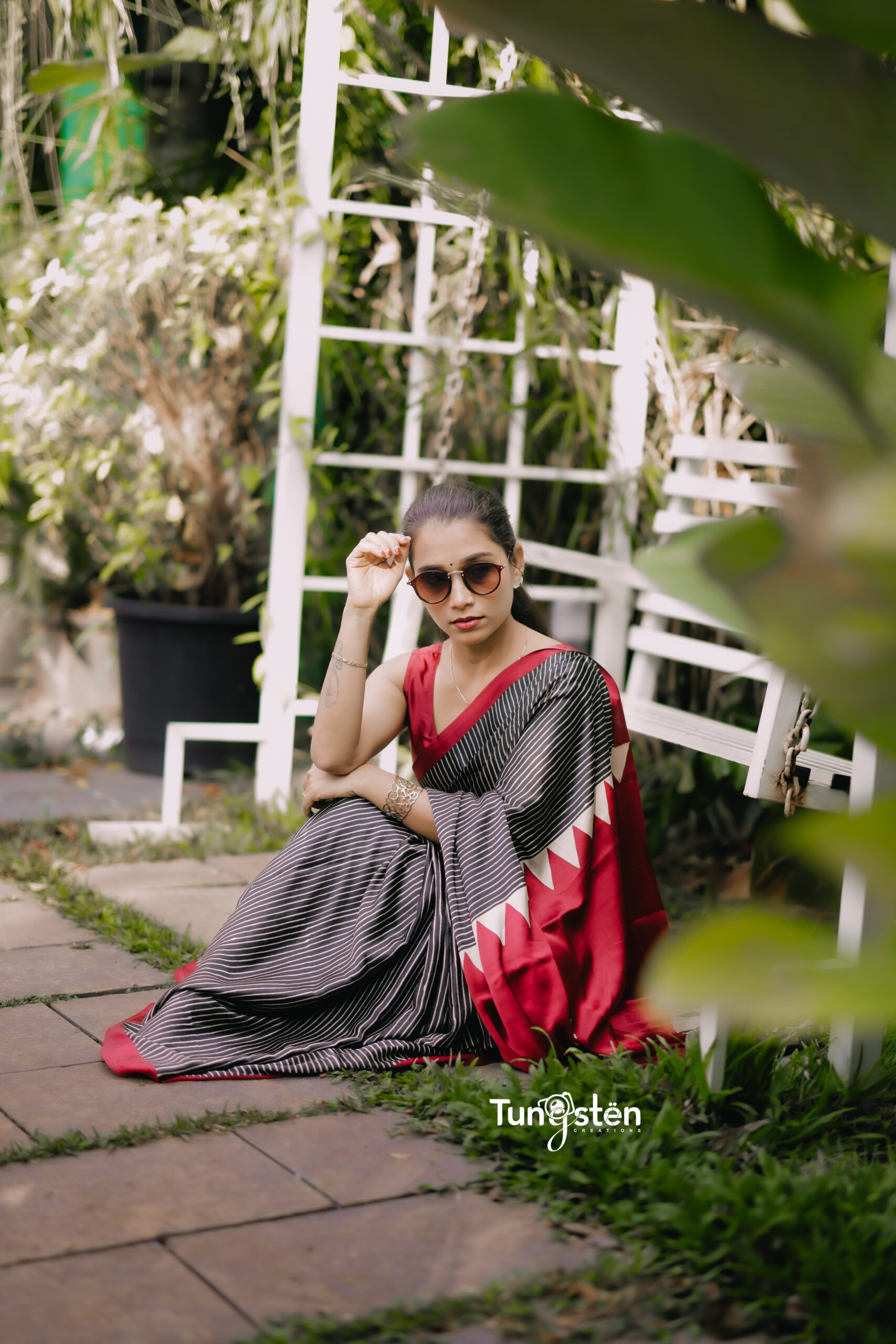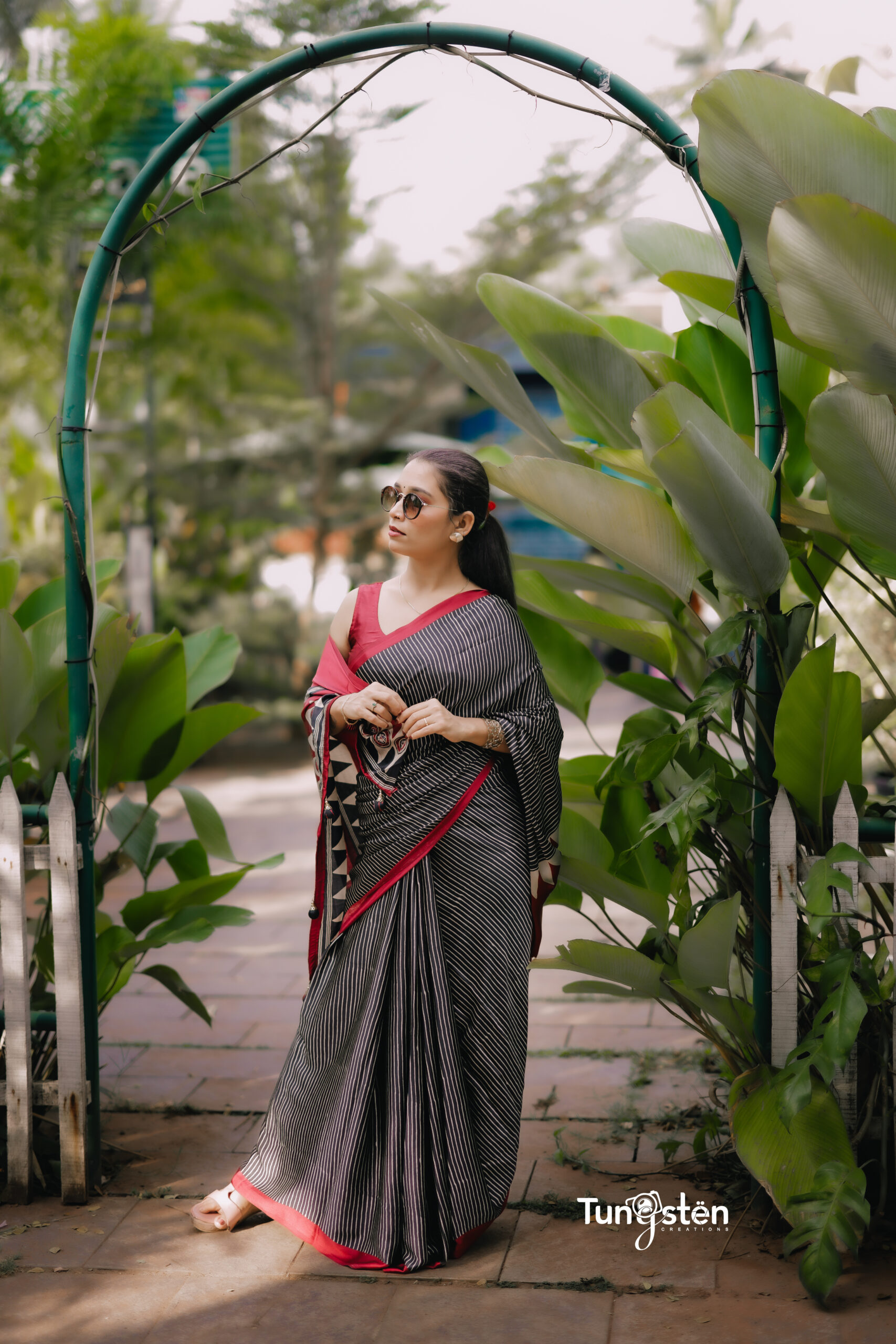 A beautifully crafted semi gaji mix semi modal silk saree in crepe fabric, offering a graceful drape and luxurious feel. Perfect for festive occasions, parties, and elegant gatherings.