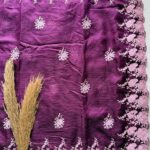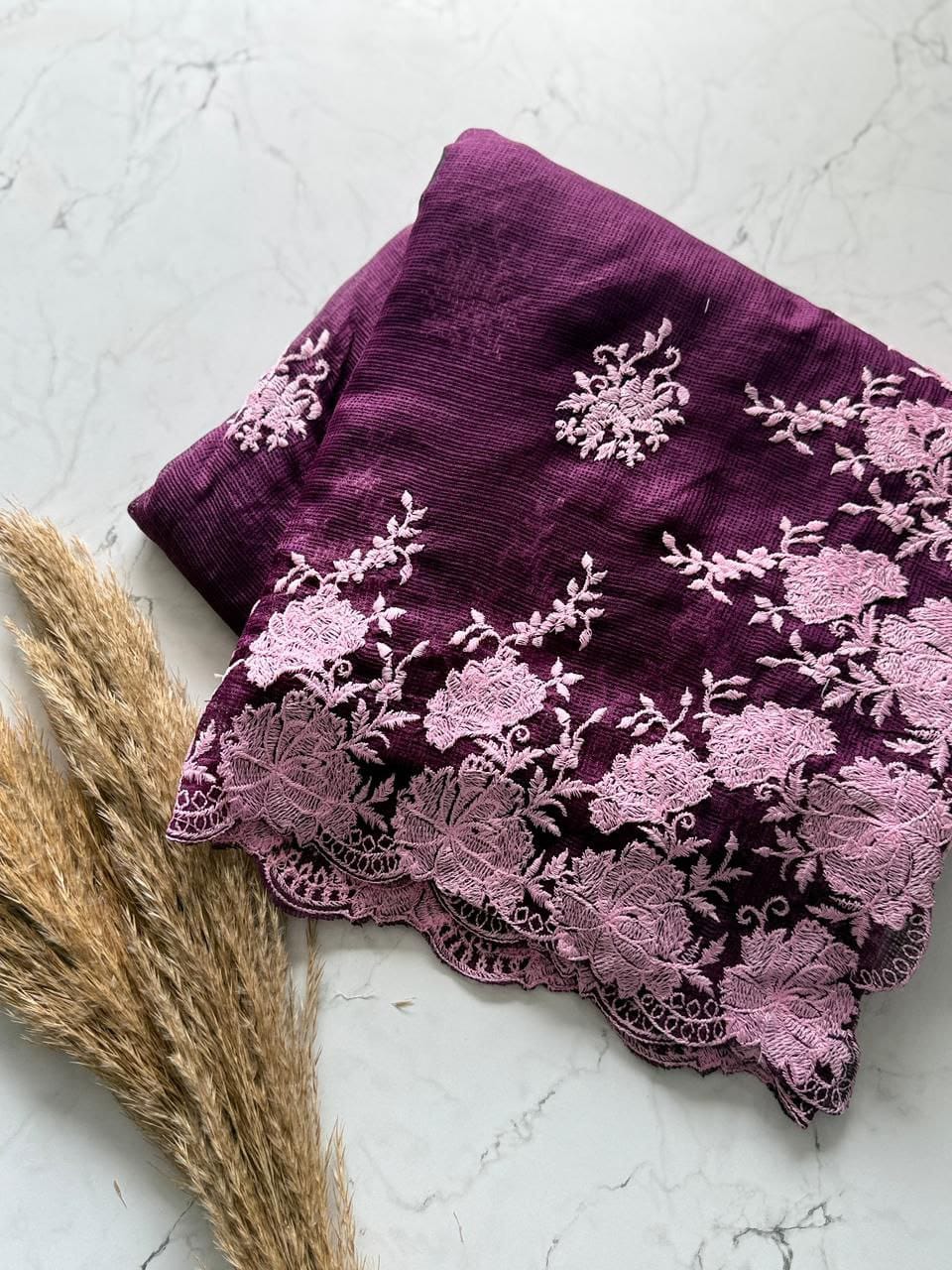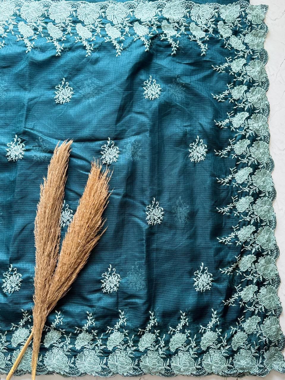 A beautifully crafted Soft Kota Doriya saree featuring elegant tone-to-tone multi-thread work with exquisite cutwork detailing throughout the saree, giving it a delicate and premium finish.