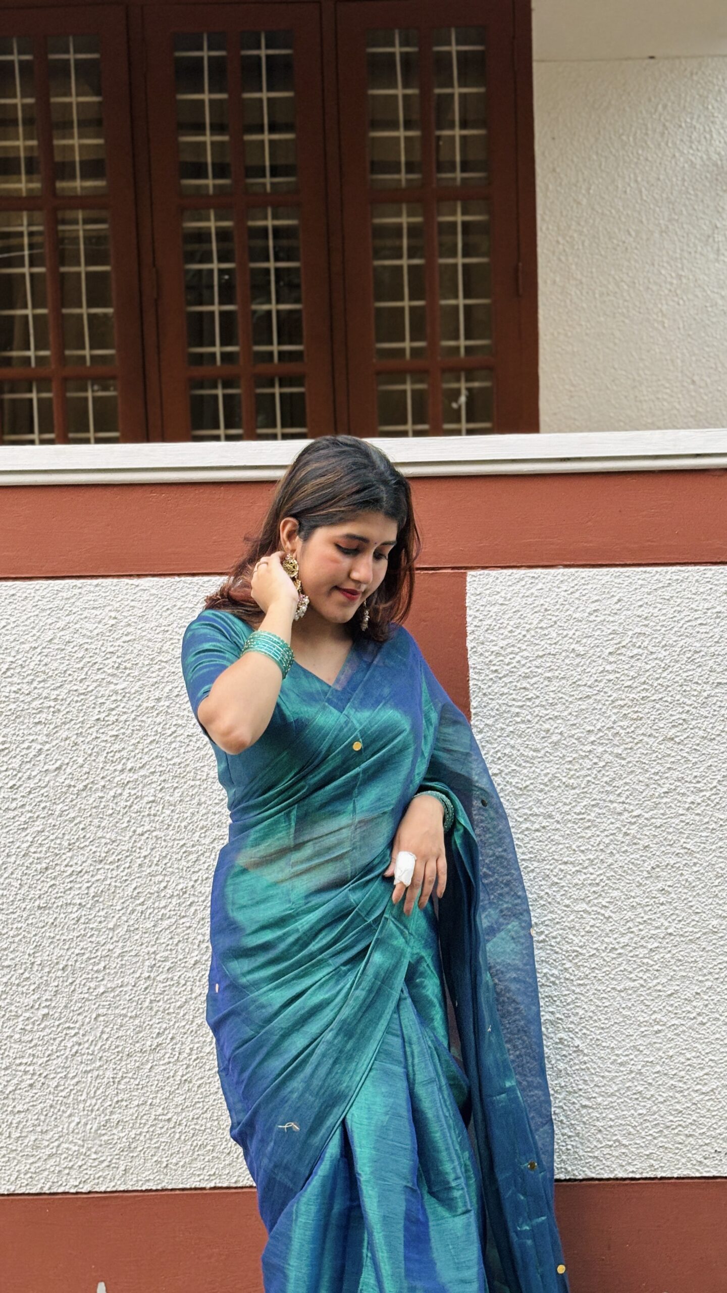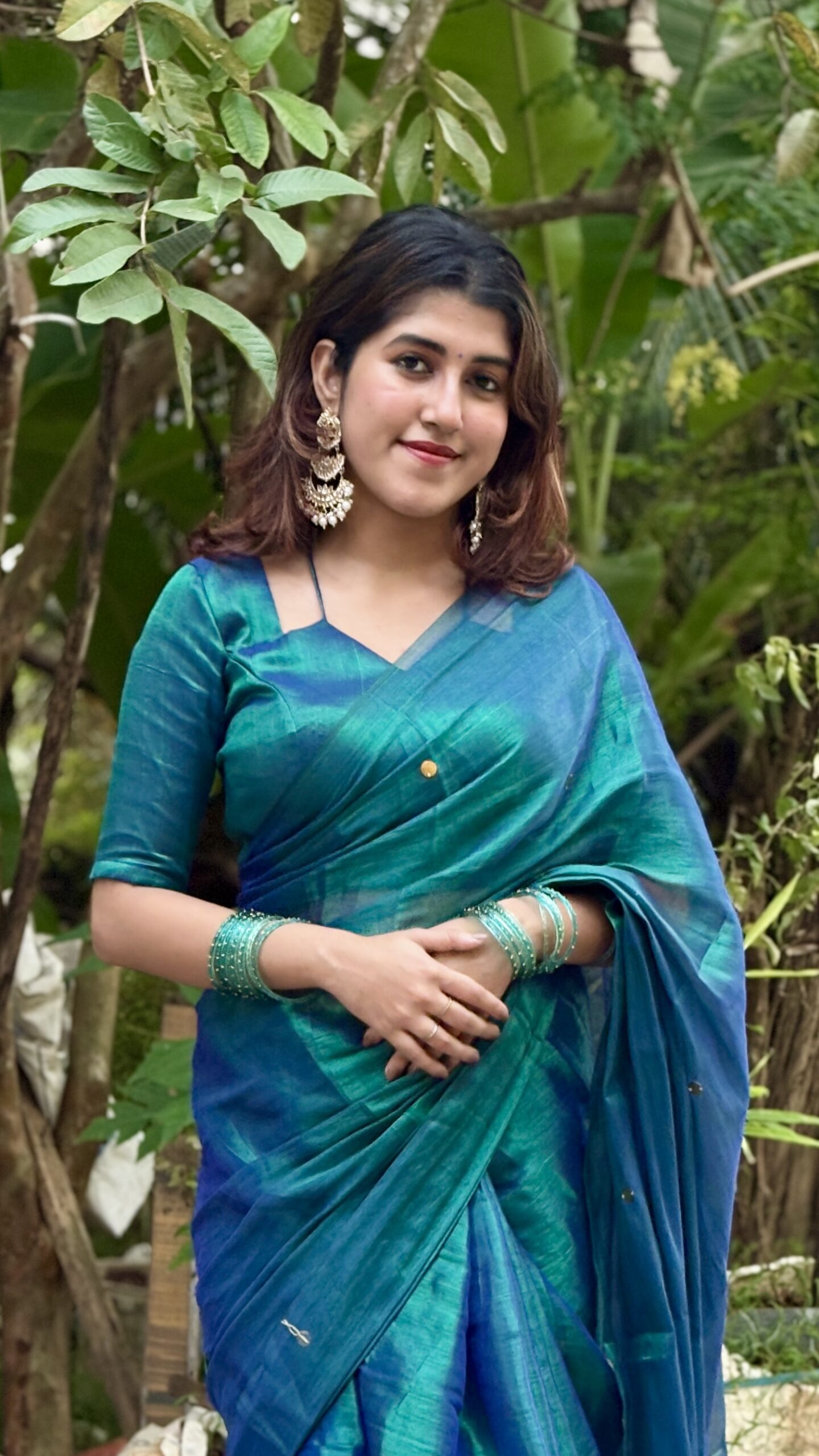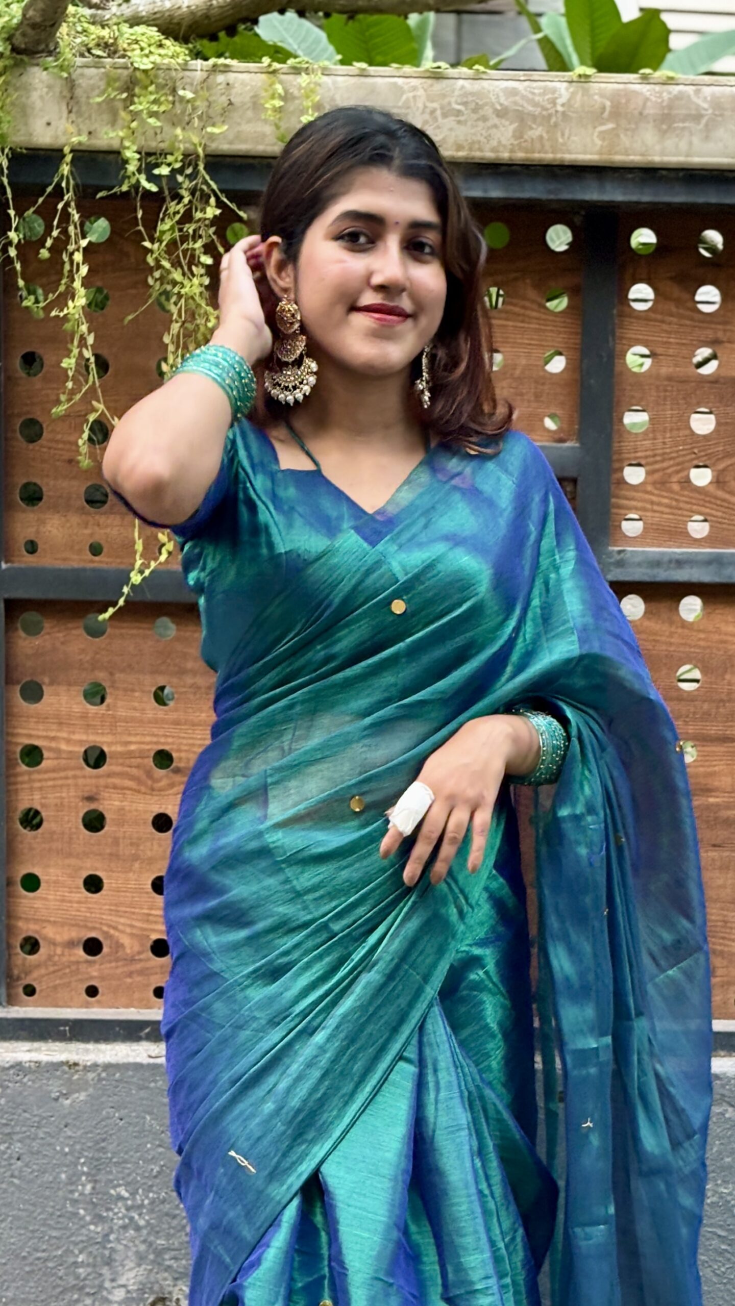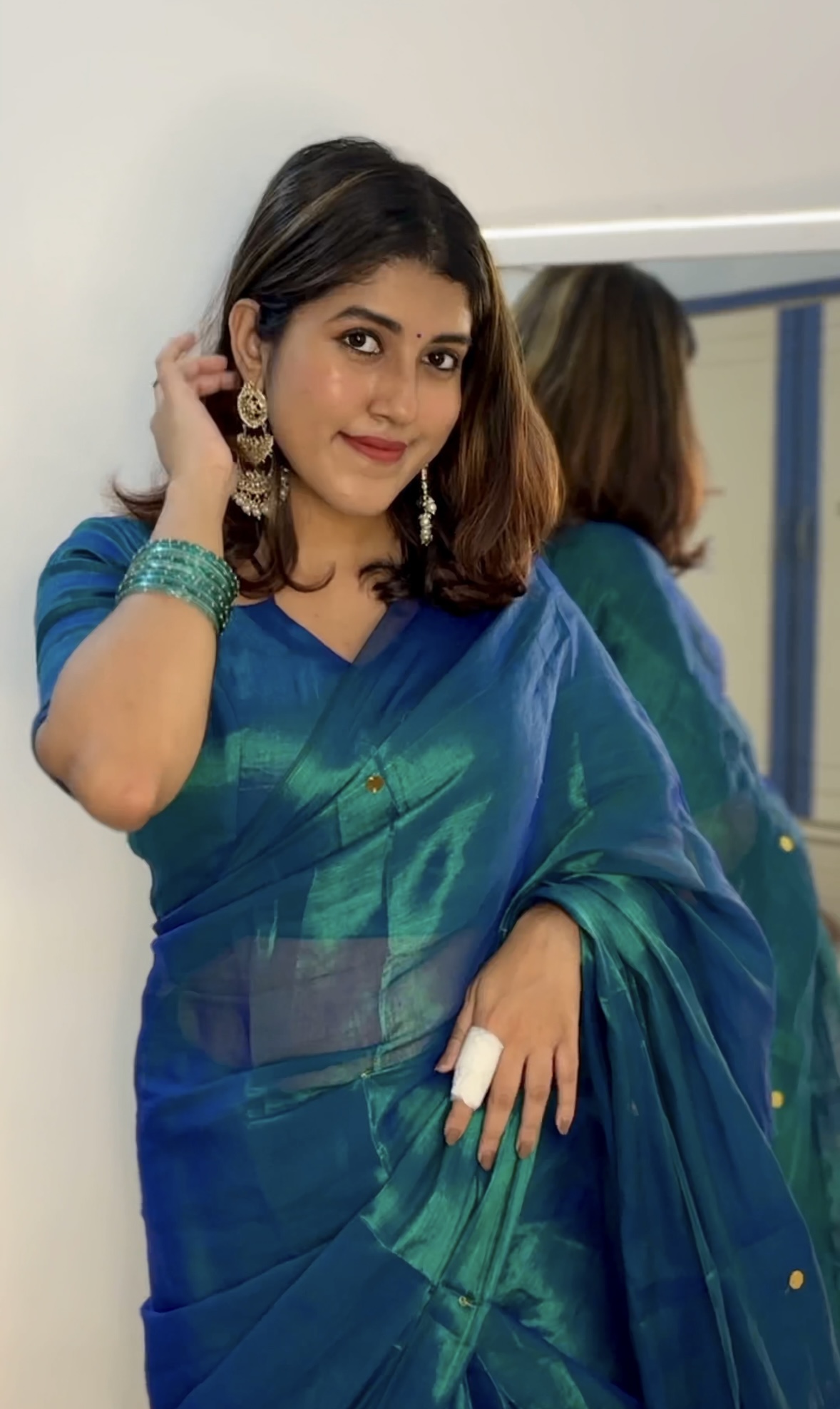 Experience elegance with this beautiful soft tissue saree, designed for a graceful and luxurious drape.