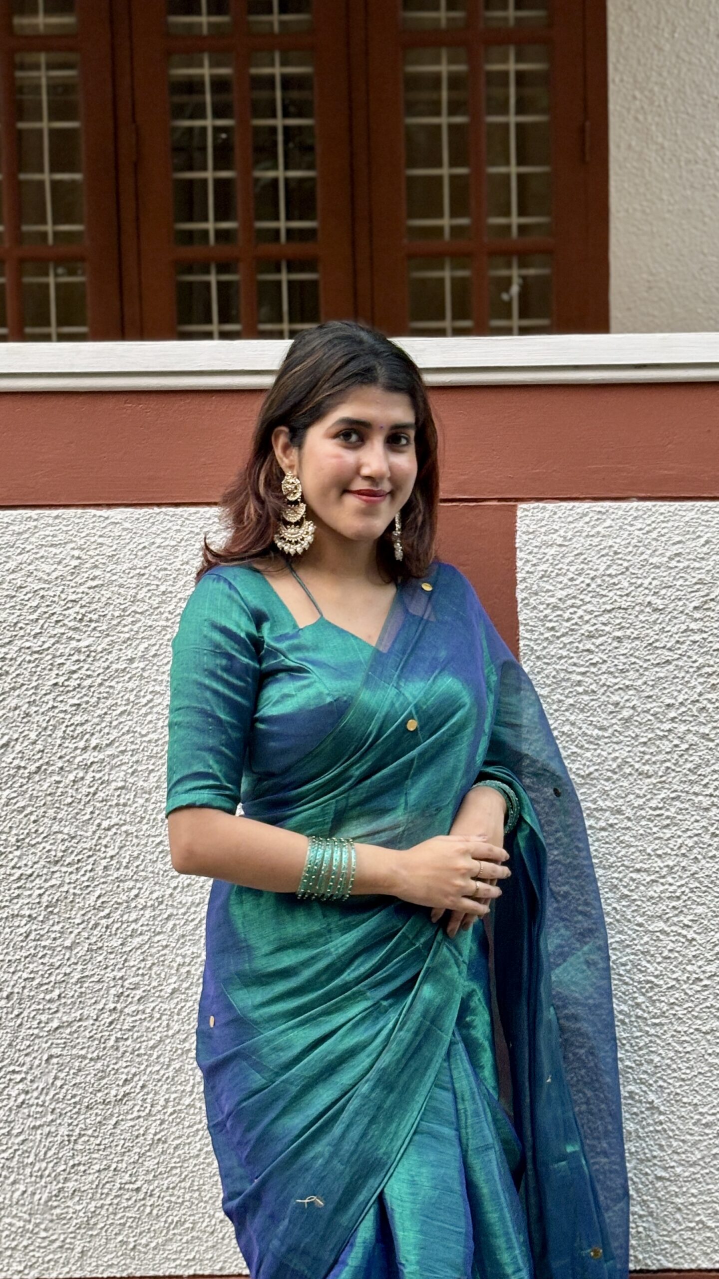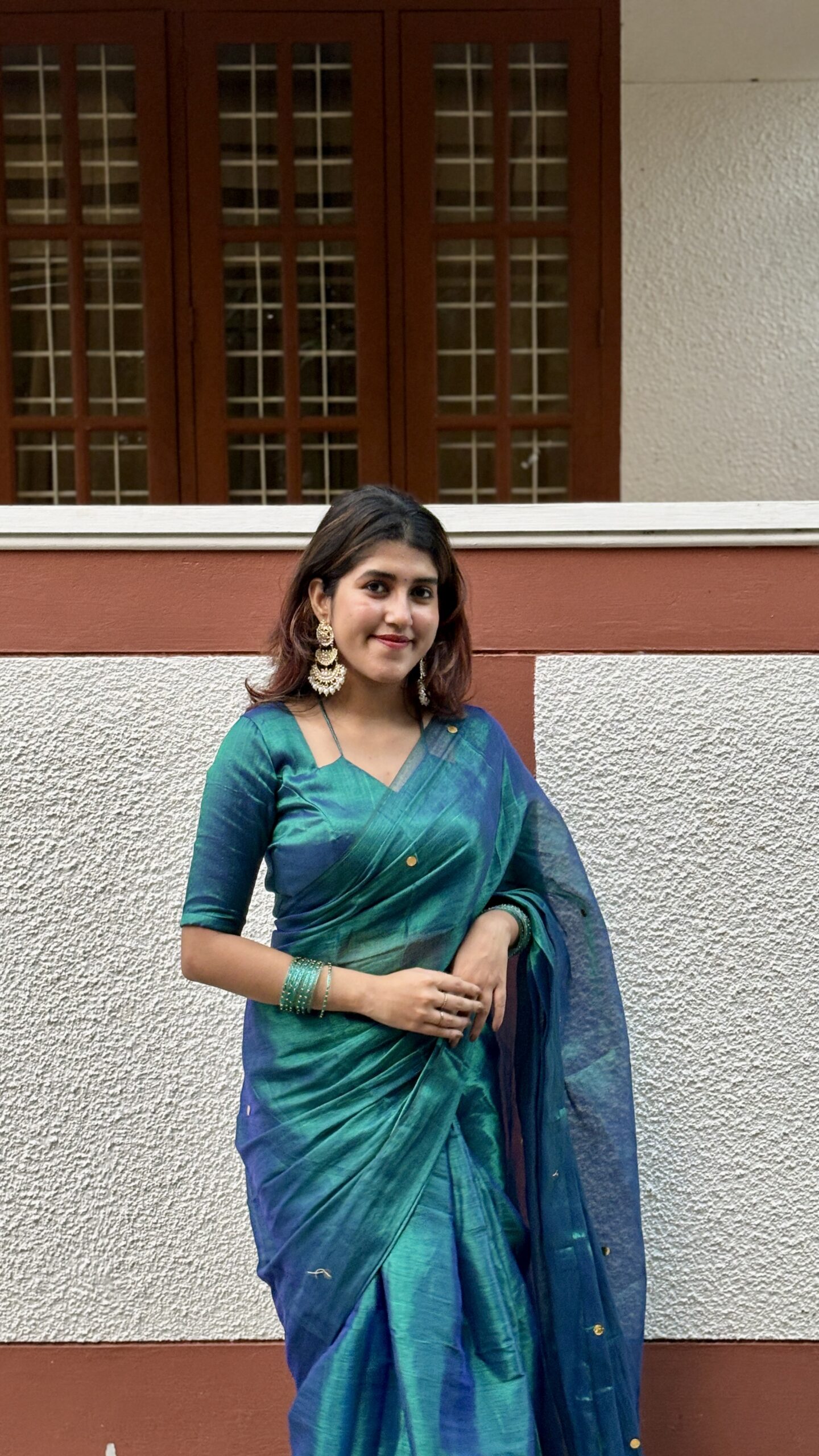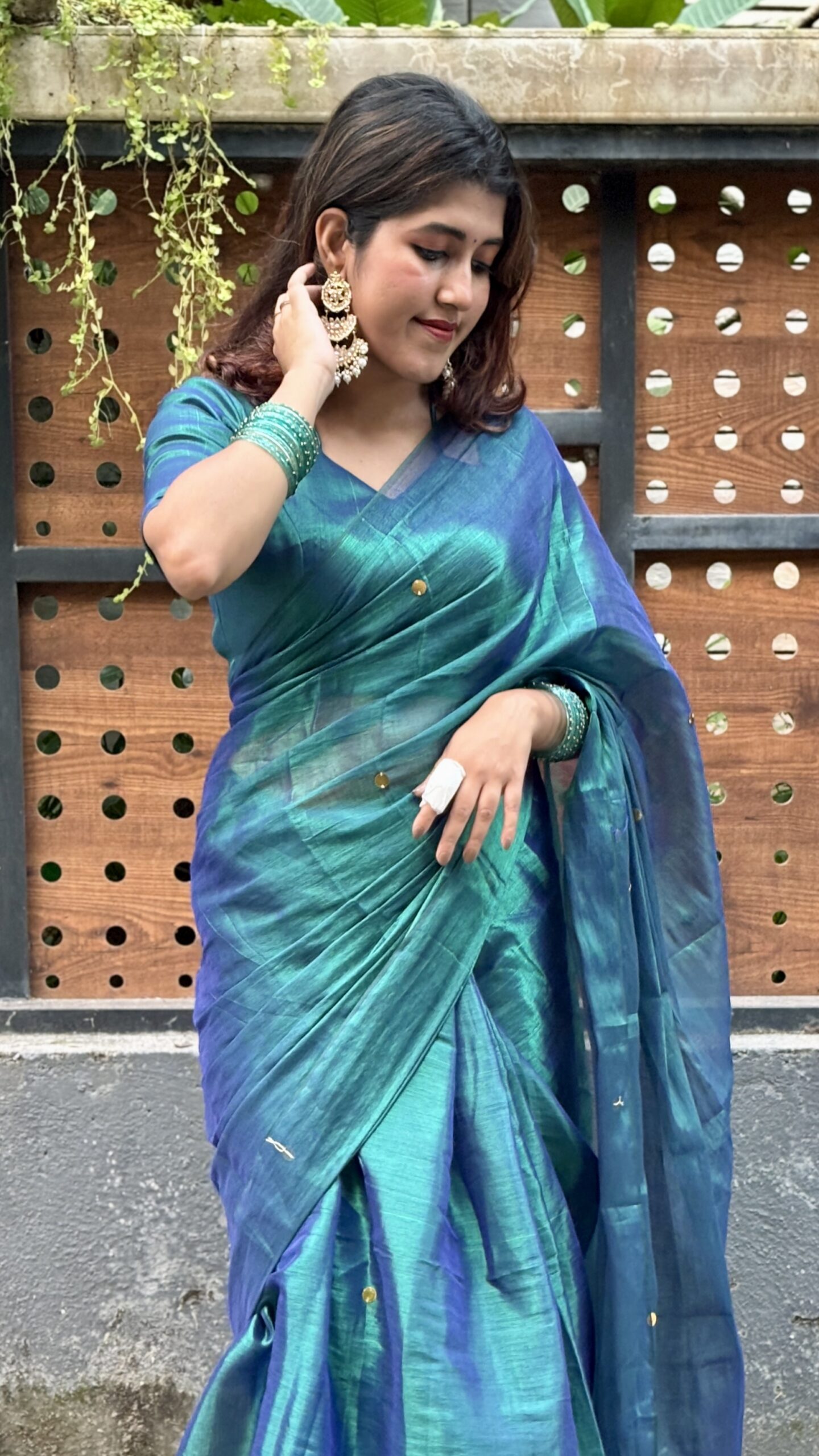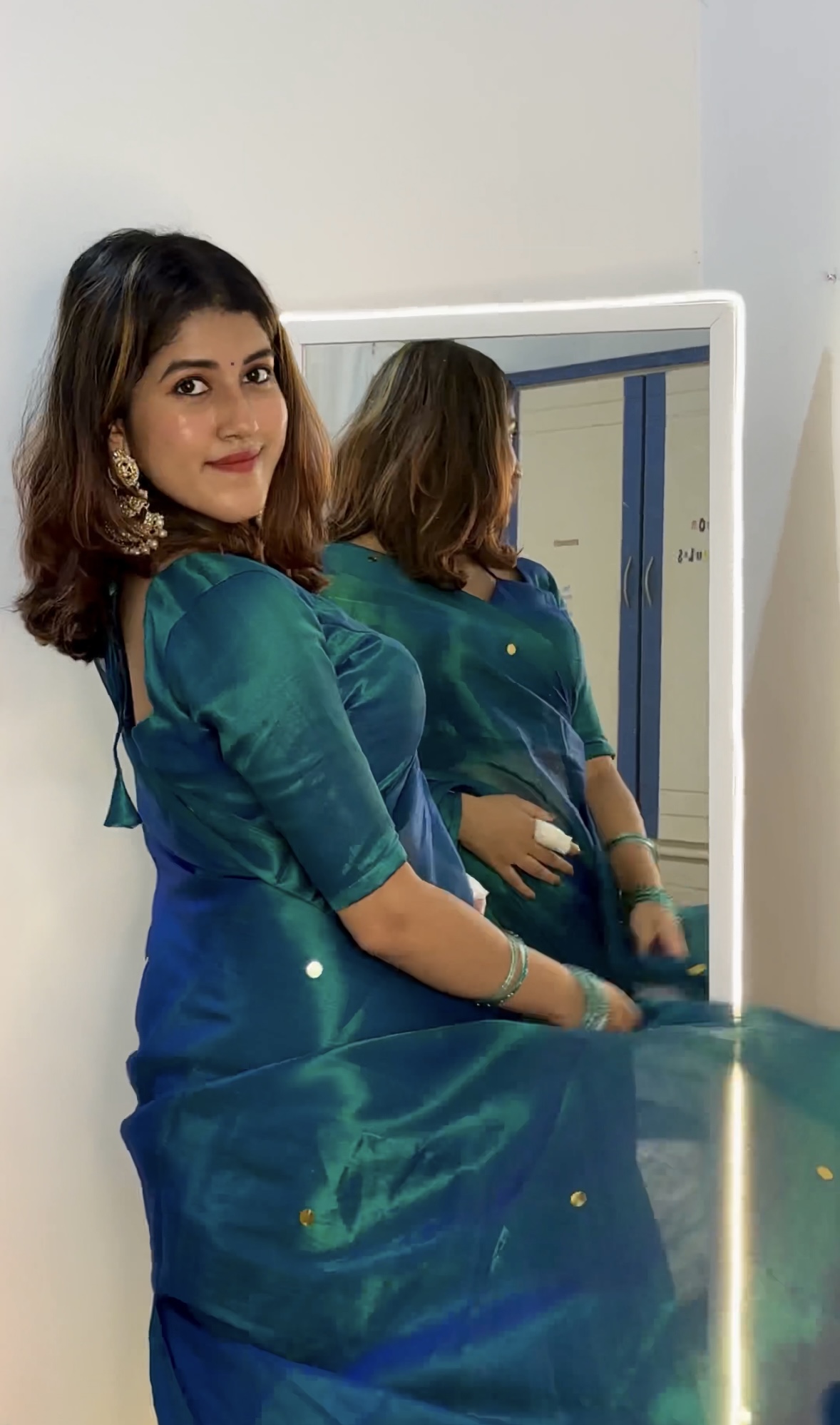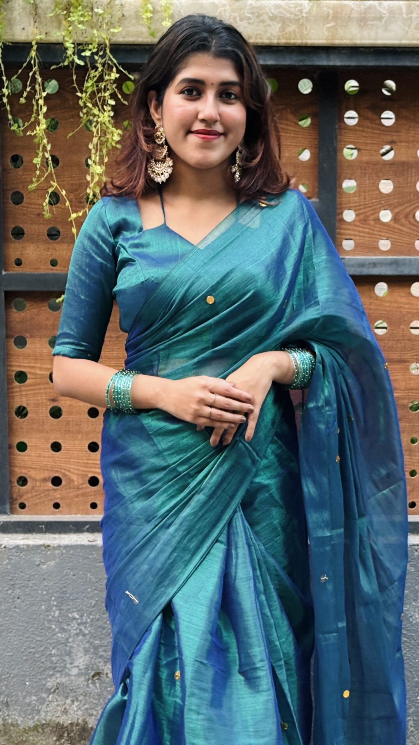 Experience elegance with this beautiful soft tissue saree, designed for a graceful and luxurious drape.