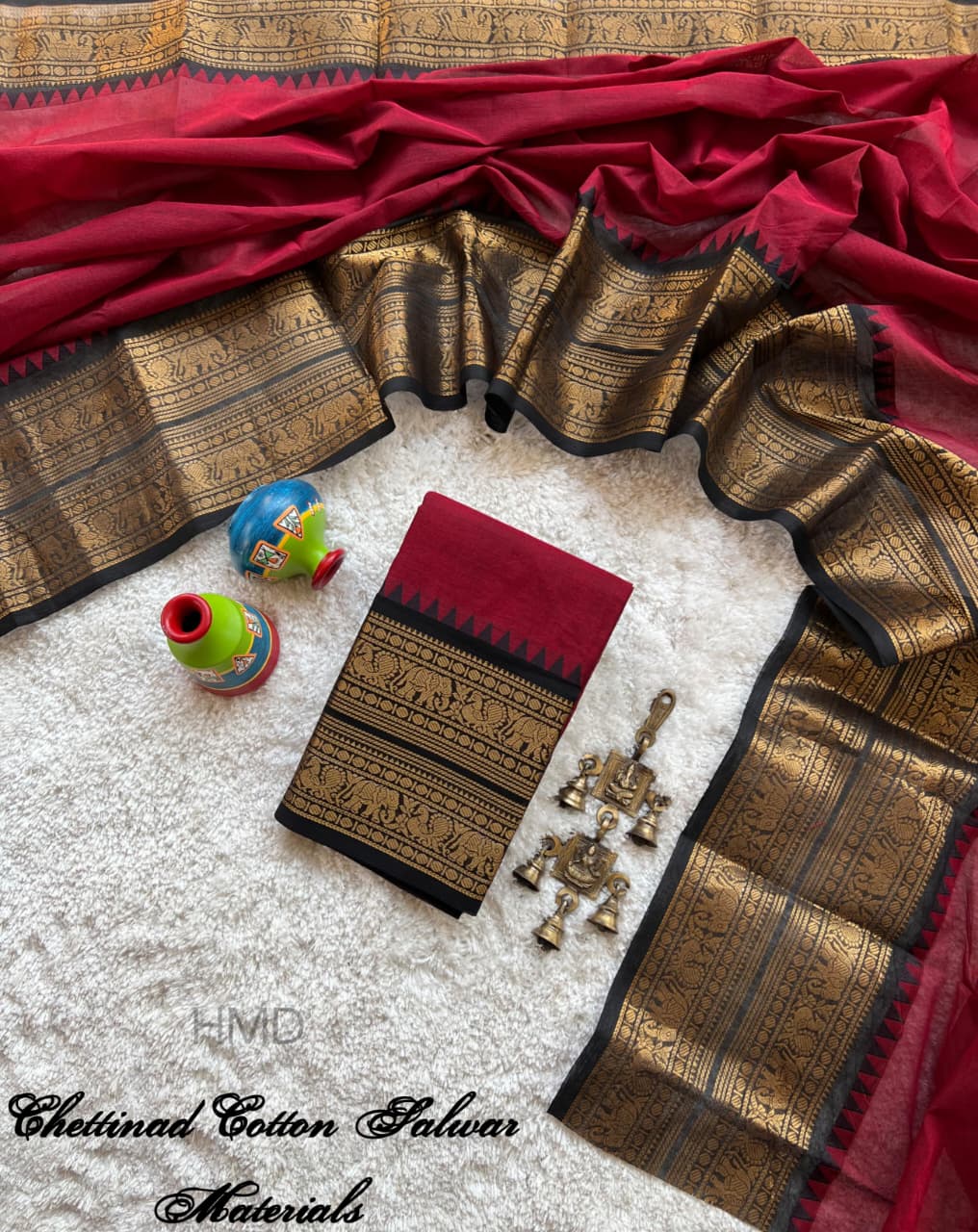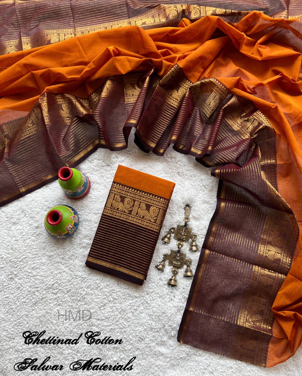 Experience the richness of traditional weaving with this premium Chettinad Kanchi cotton salwar material. Crafted with 100 count pure cotton, it offers unmatched softness, breathability, and a luxurious feel for all-day comfort.