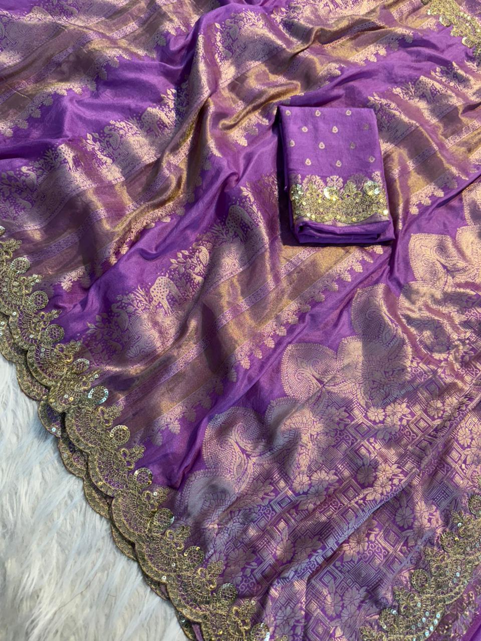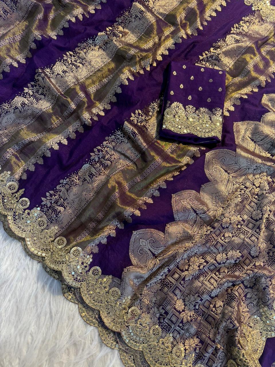Work: All-over zari weaving with coding work