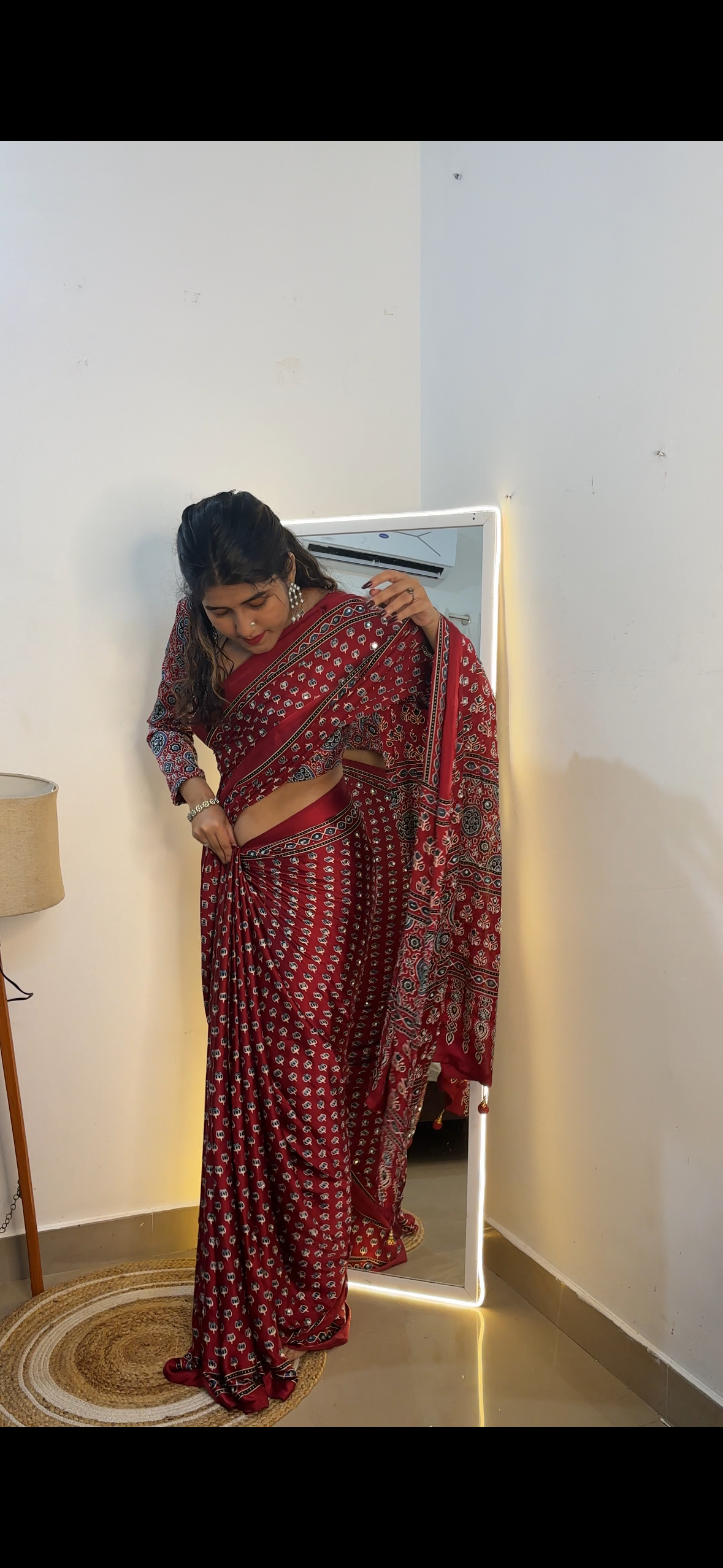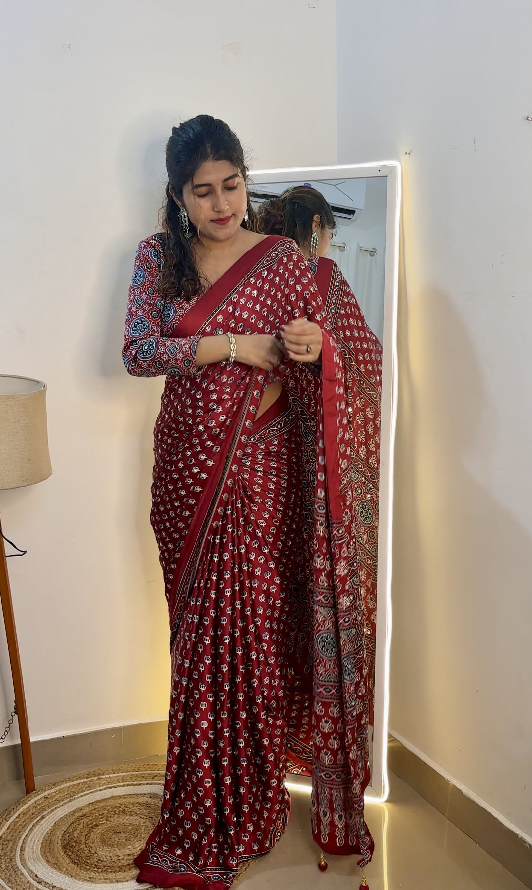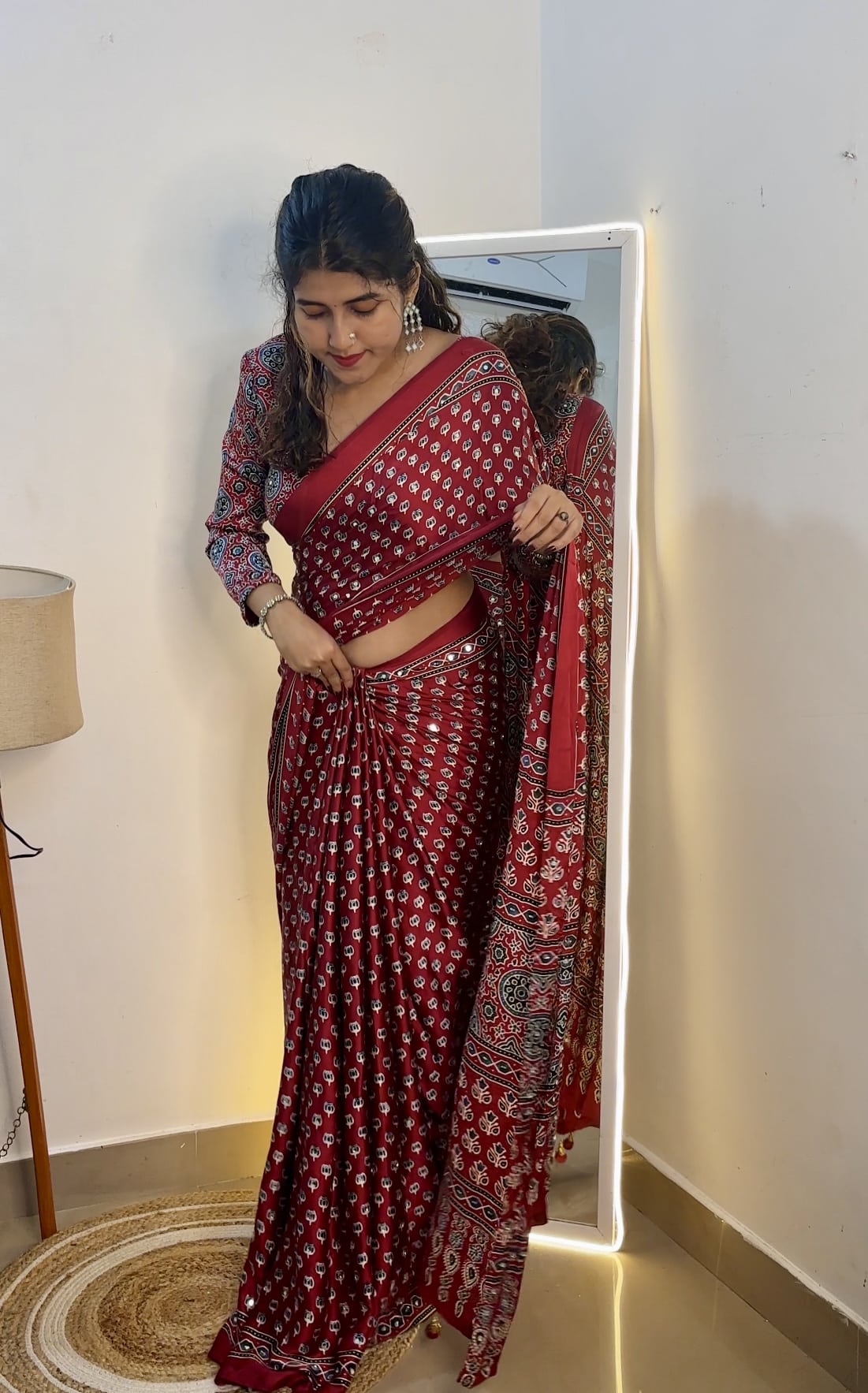 Perfect for festive occasions, casual gatherings, and party wear, this saree blends tradition with modern elegance effortlessly.