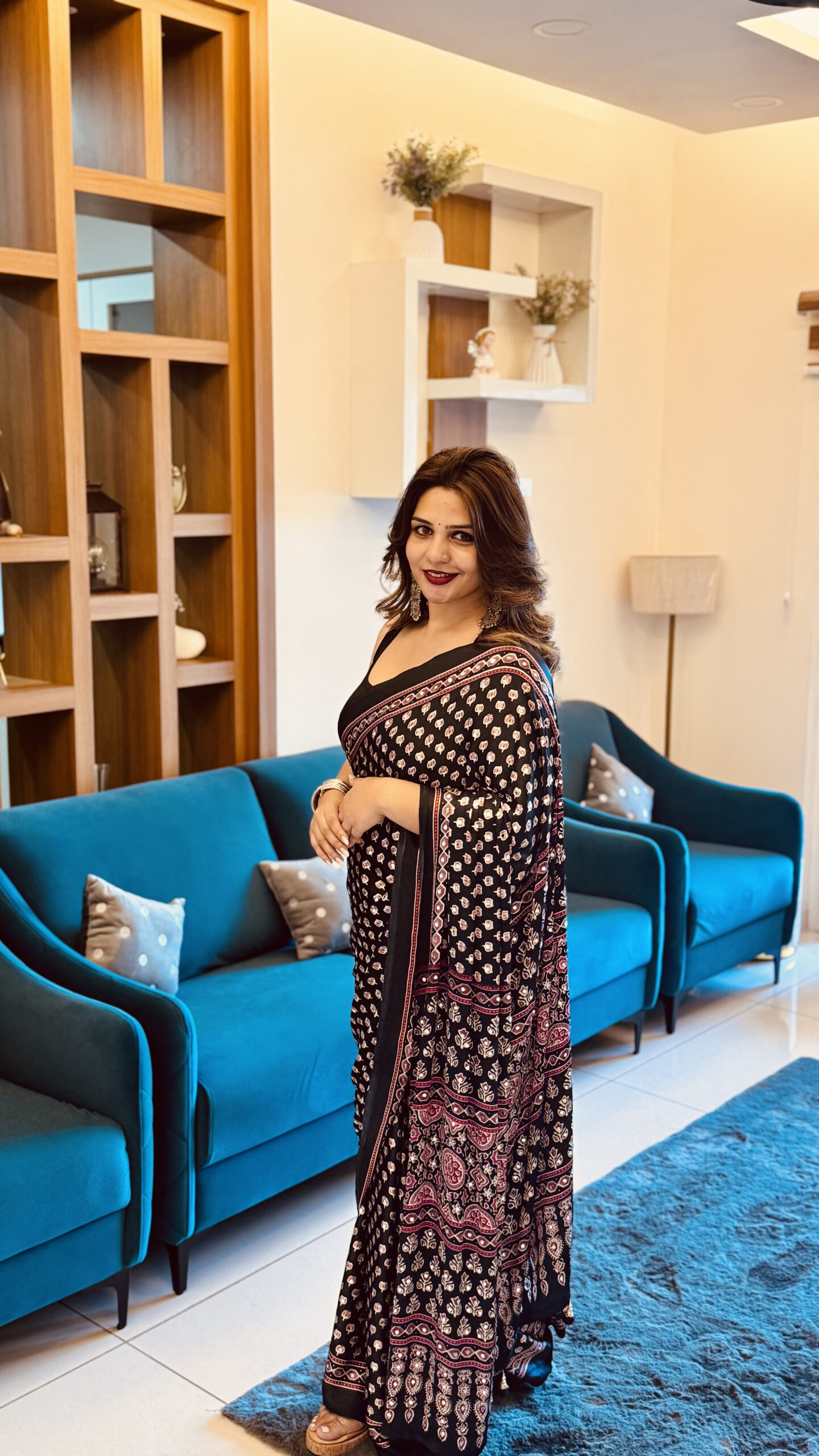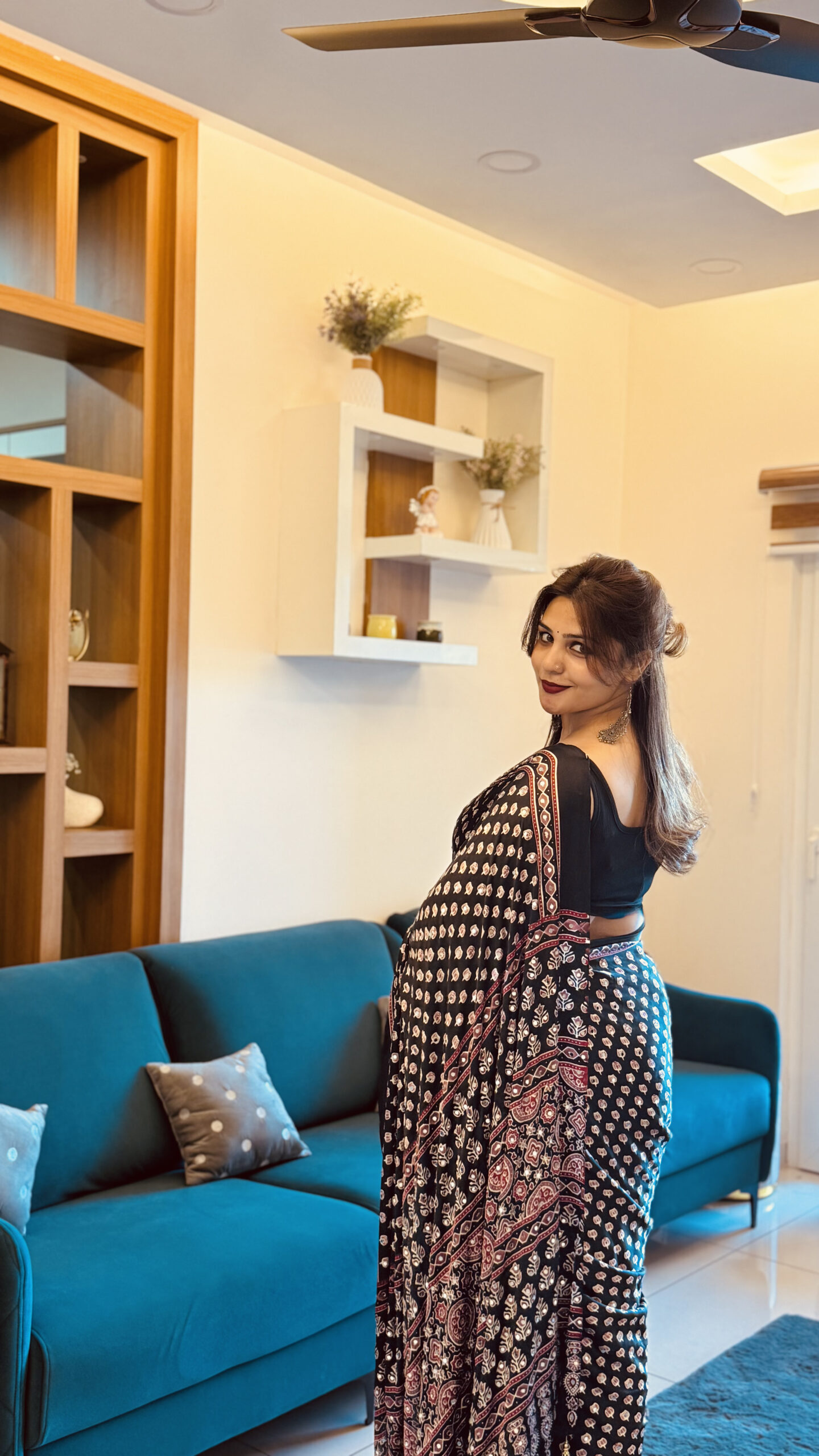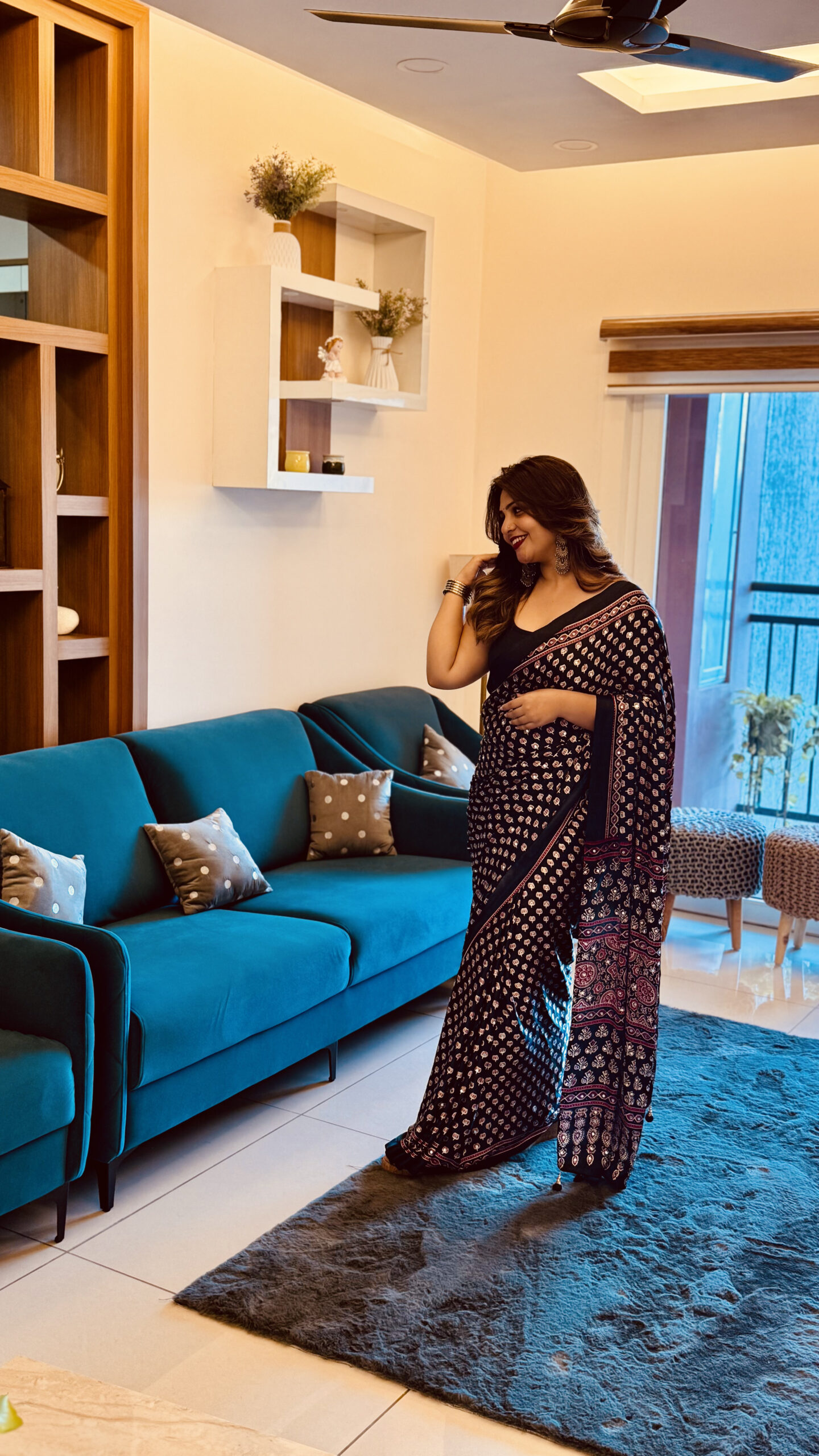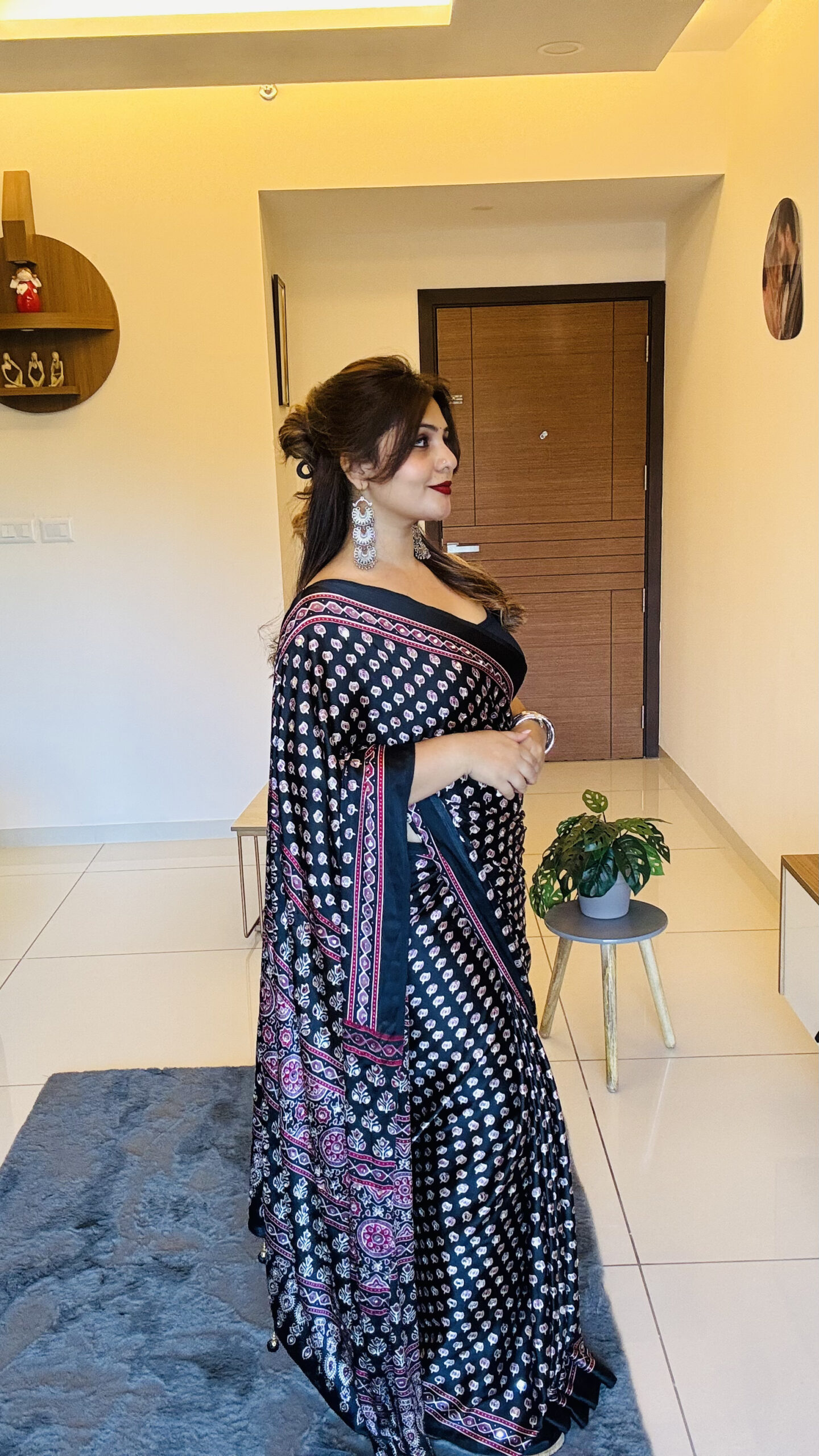 Perfect for festive occasions, casual gatherings, and party wear, this saree blends tradition with modern elegance effortlessly.