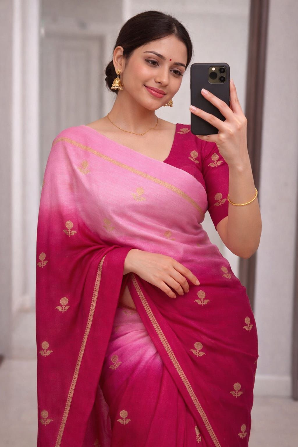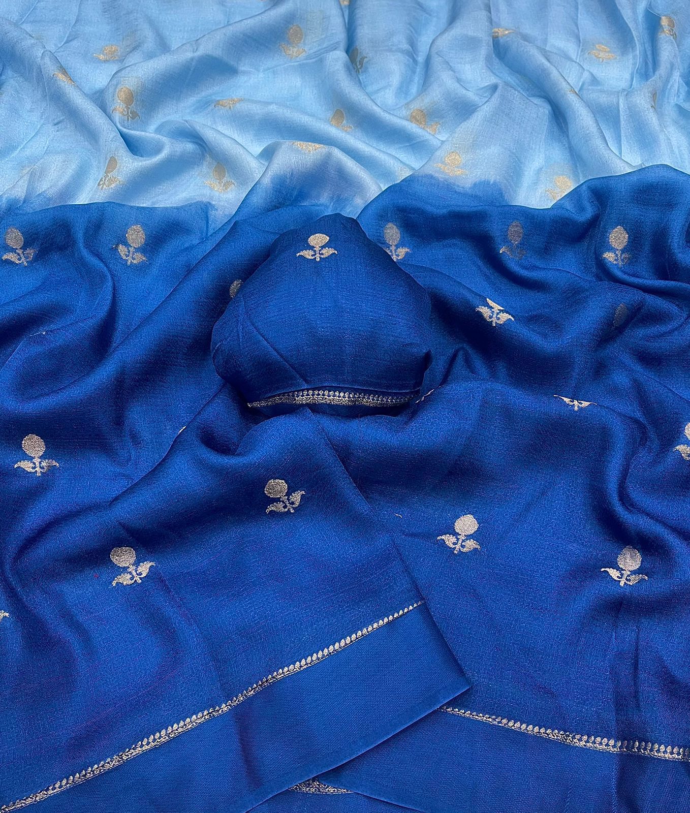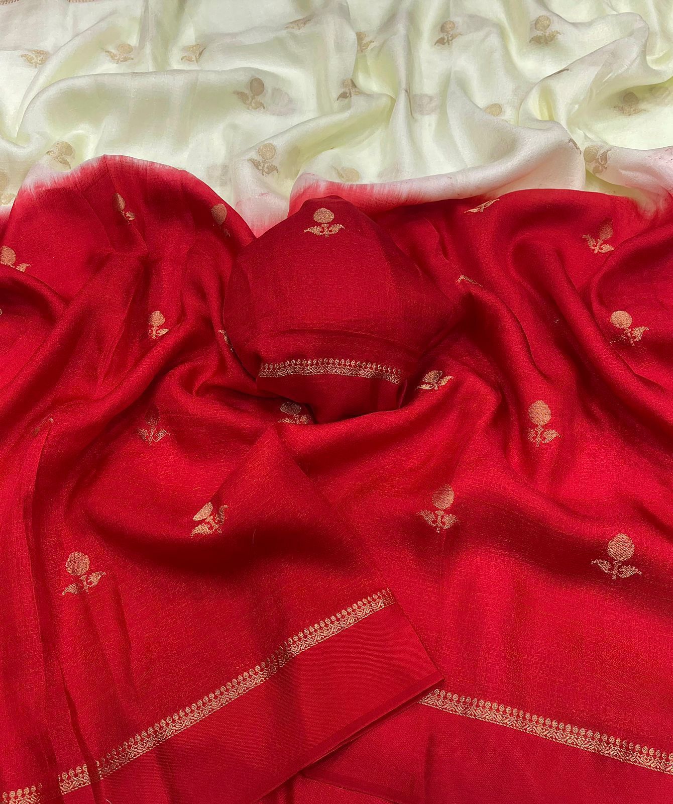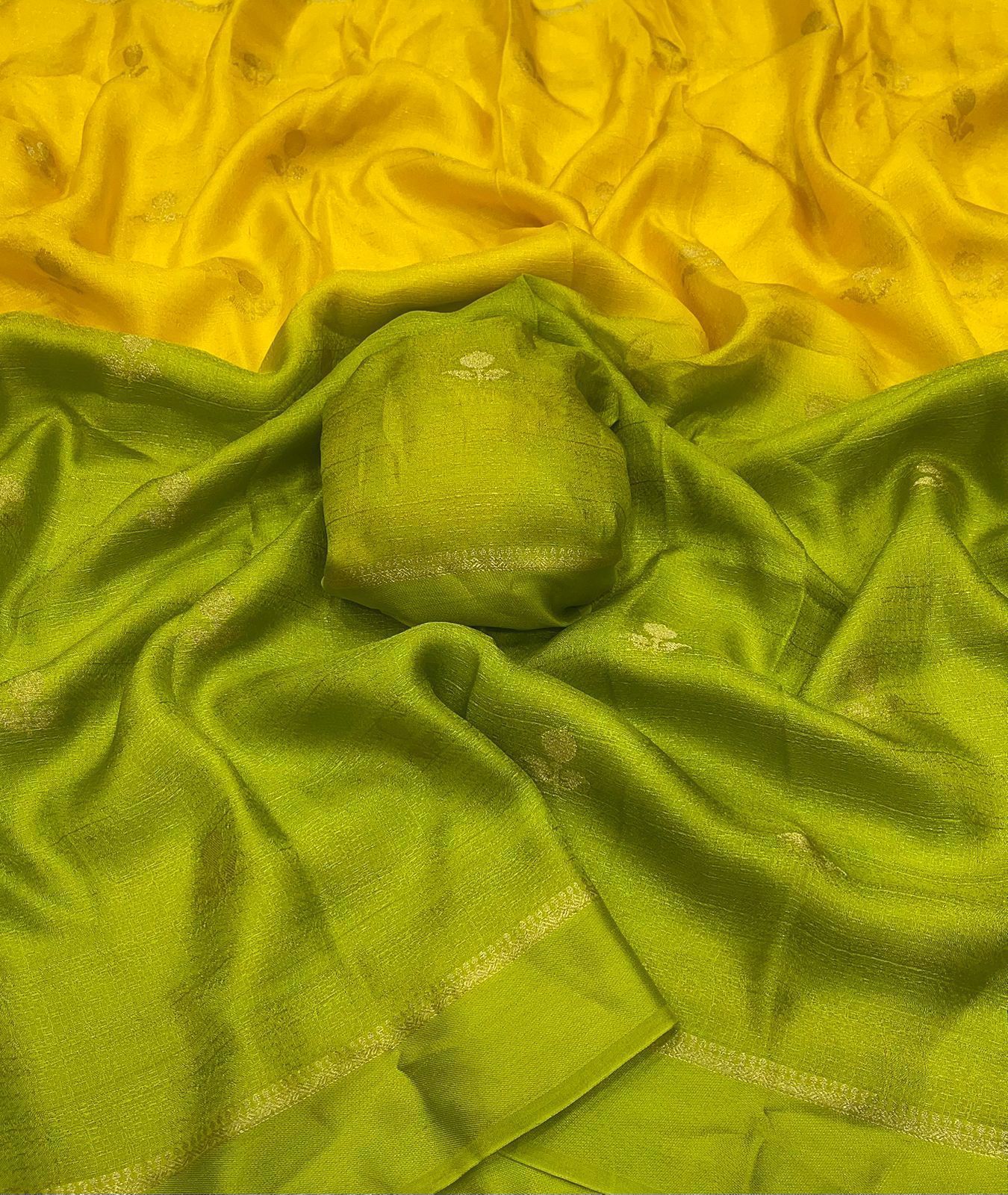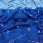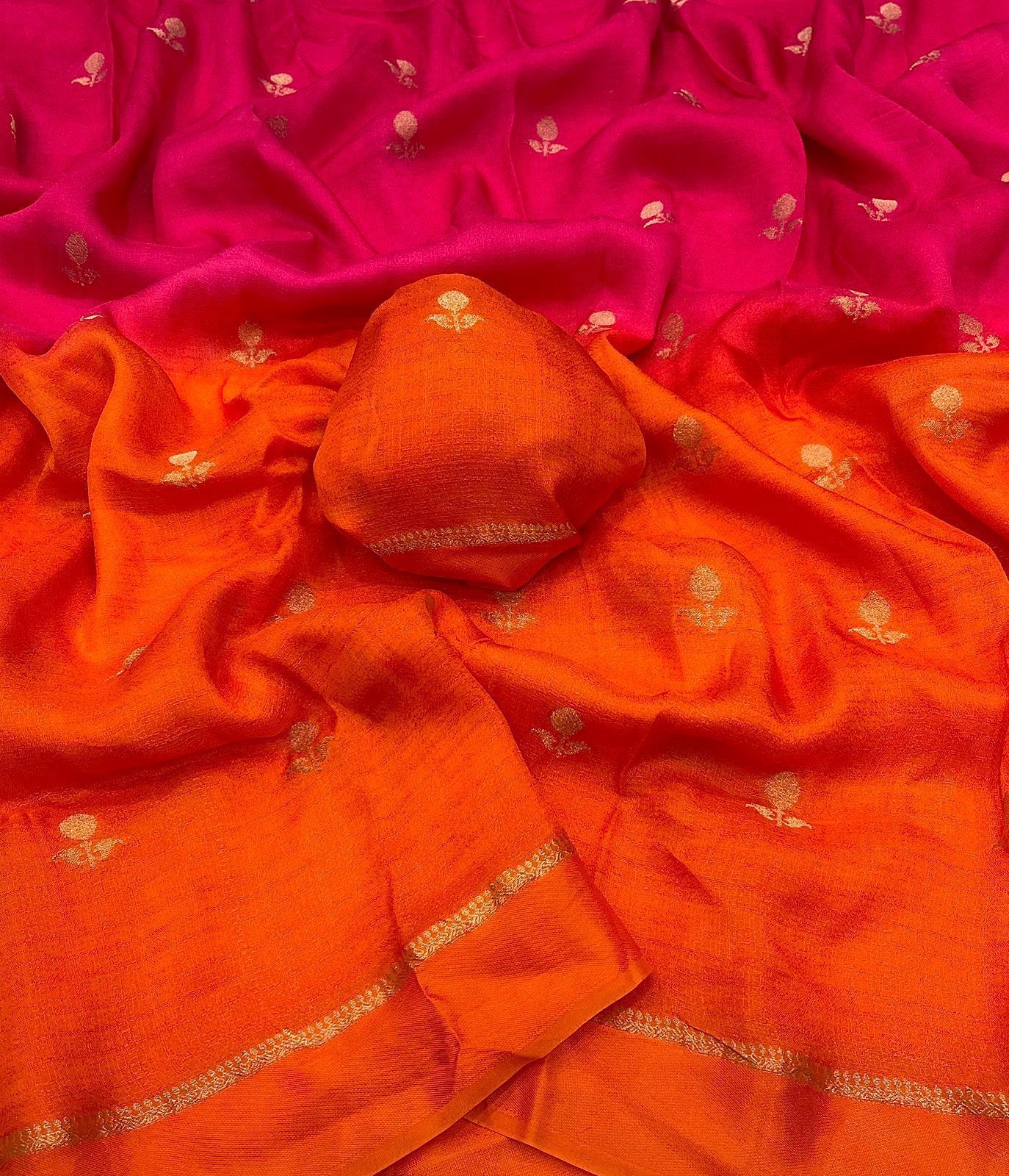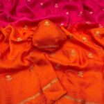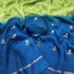 Experience the charm of tradition blended with modern elegance in this pure soft viscose khadi silk saree. Designed with an all-over jacquard leaf pattern, this saree offers a rich and sophisticated look that’s perfect for partywear and festive occasions.