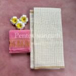 Grace your wardrobe with this elegant Pentex Golden Zari Kattam Sungudi cotton saree, beautifully blending tradition with subtle shimmer. The classic kattam (checks) pattern enhanced with rich golden zari detailing gives this saree a refined and festive appeal.