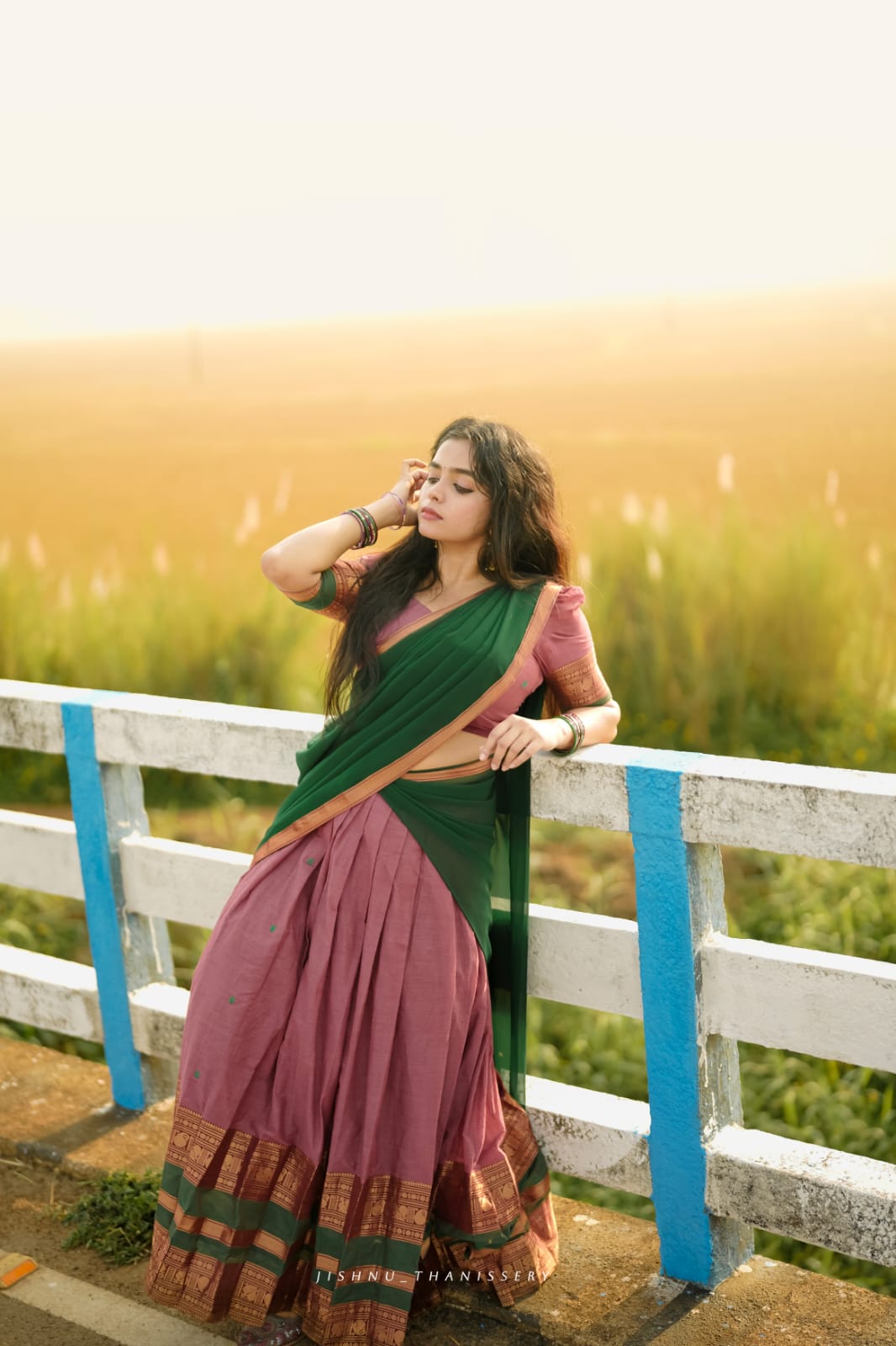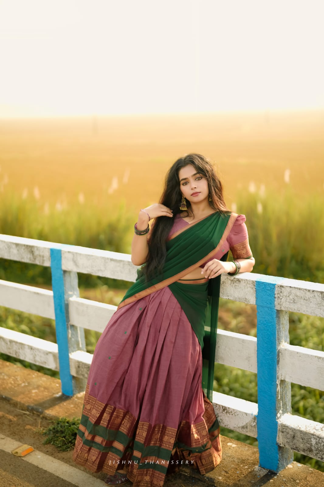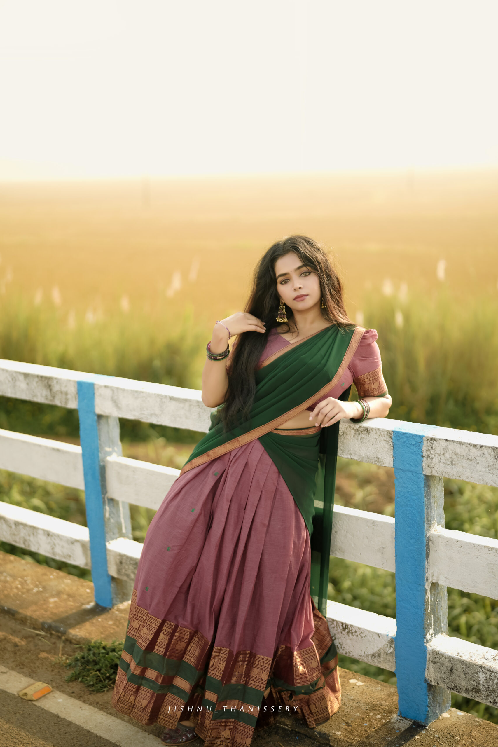 Step into timeless elegance with this beautifully curated Dhavani Set, crafted using premium Kanchi Cotton and soft Georgette for a perfect blend of heritage and comfort. Ideal for traditional functions, poojas, or festive wear, this unstitched set allows you to tailor your own graceful Langa Voni (Half Saree) ensemble.