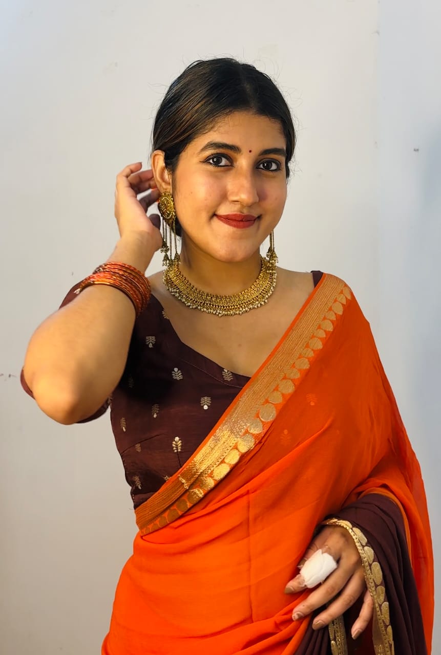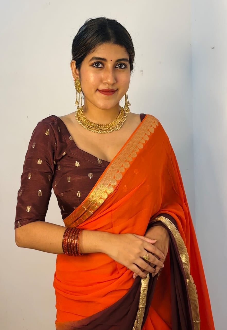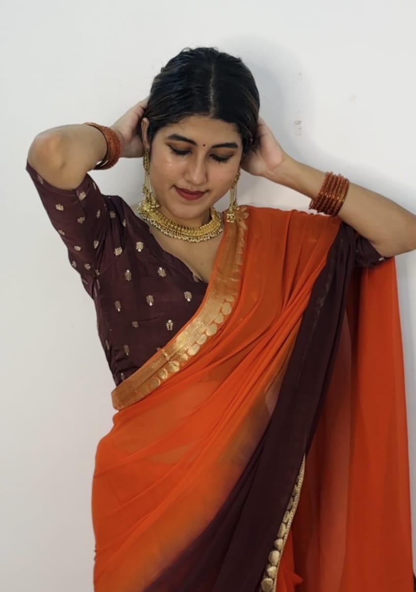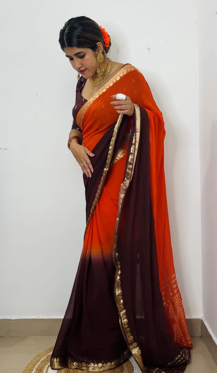 Dual Shade Viscose georgette saree with semi dola butta blouse