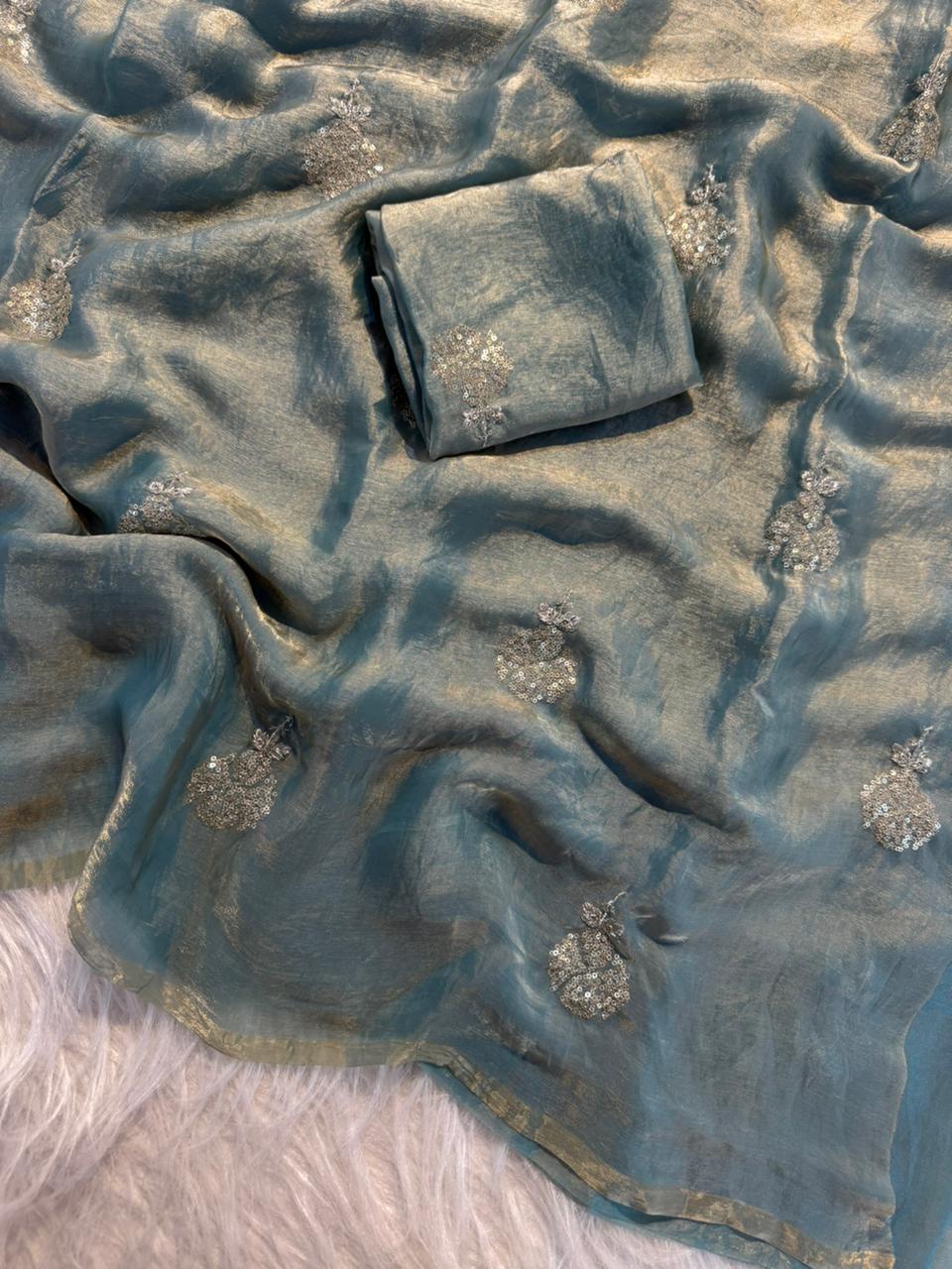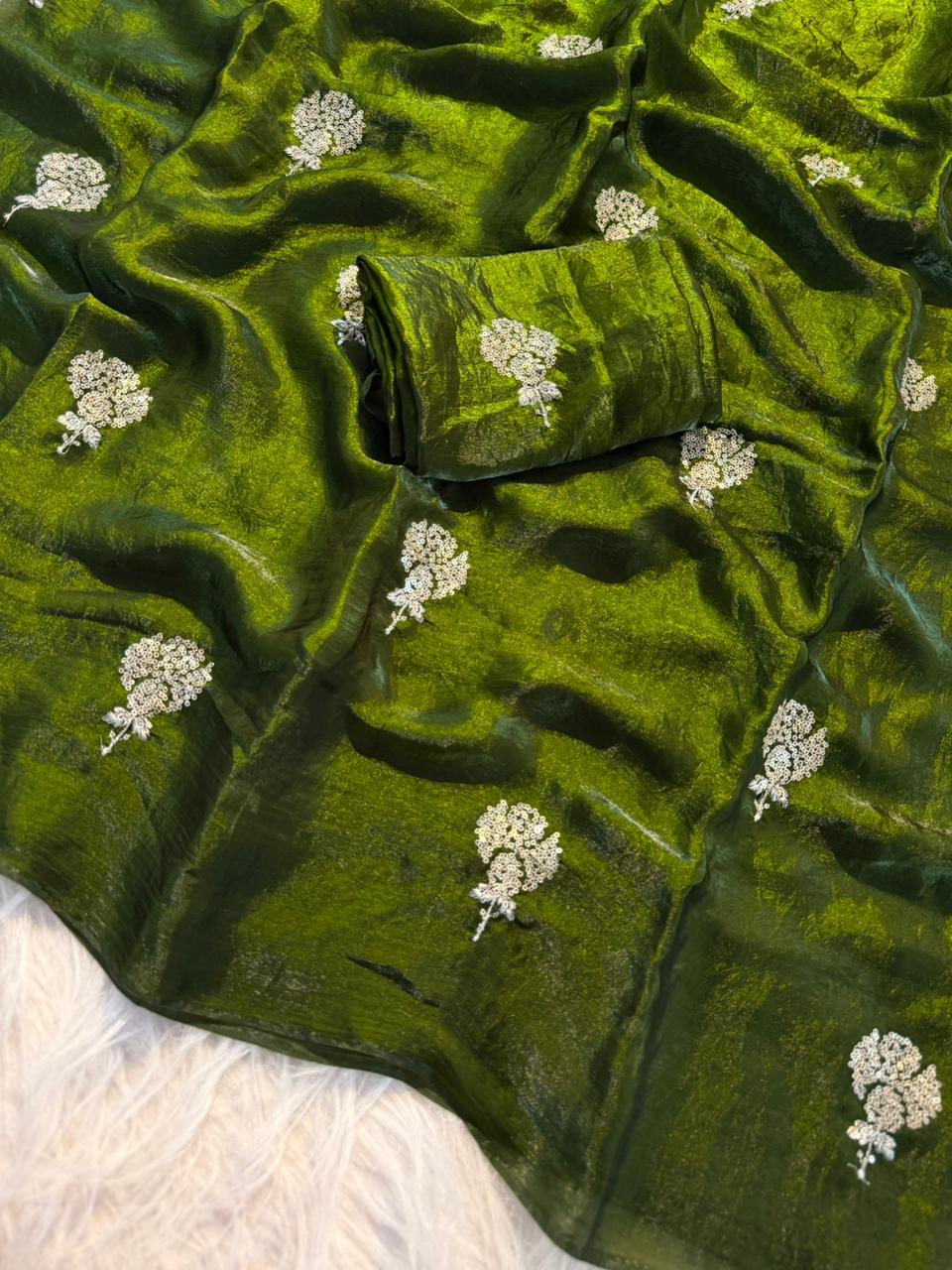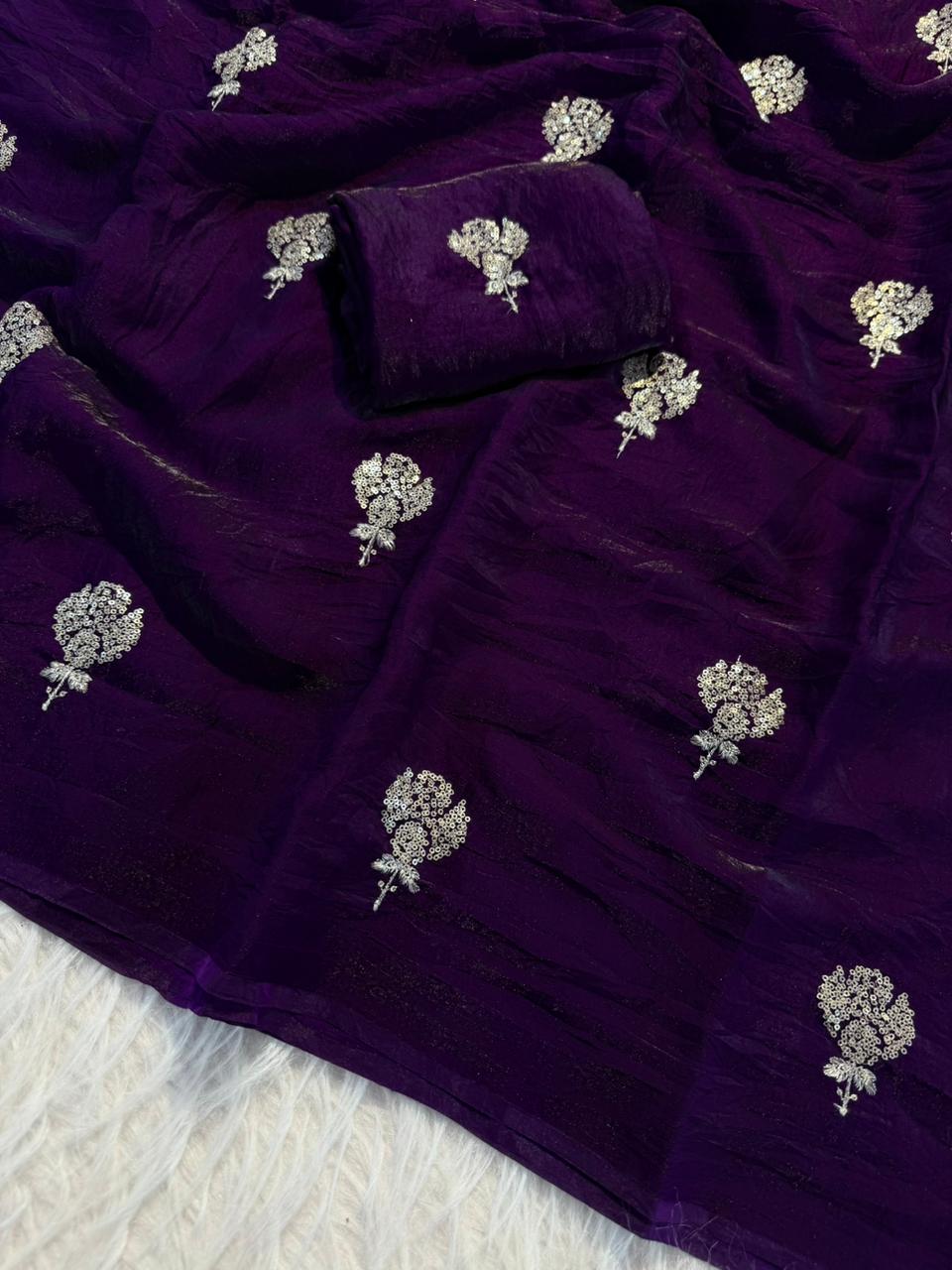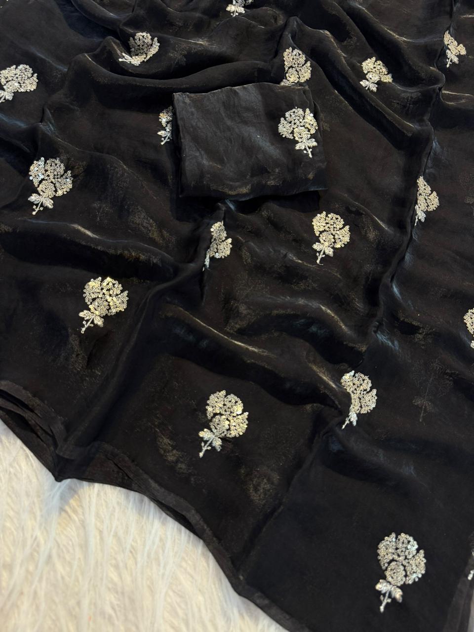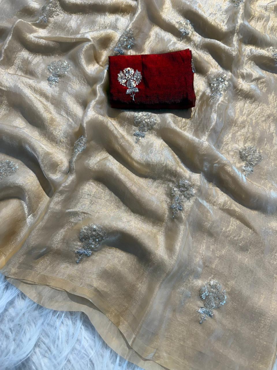 ✨ Design: Zari with sequin flower butti all over