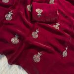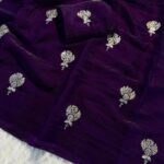 Elevate your festive look with our premium Fandy Satin Dual-Shade Saree, adorned with beautiful zari and sequin flower butti work all over the drape. The rich dual-tone finish adds a stunning shine, making it perfect for special occasions.