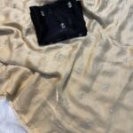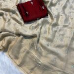 FABRIC:- Fandy satin dual shade with beautiful zari with sequence flower butti all over with running contrast blouse with work