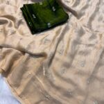 🎉 ONAM SPECIAL – Fandy Satin Dual Shade Saree with Zari & Sequin Butti Work 🌸
