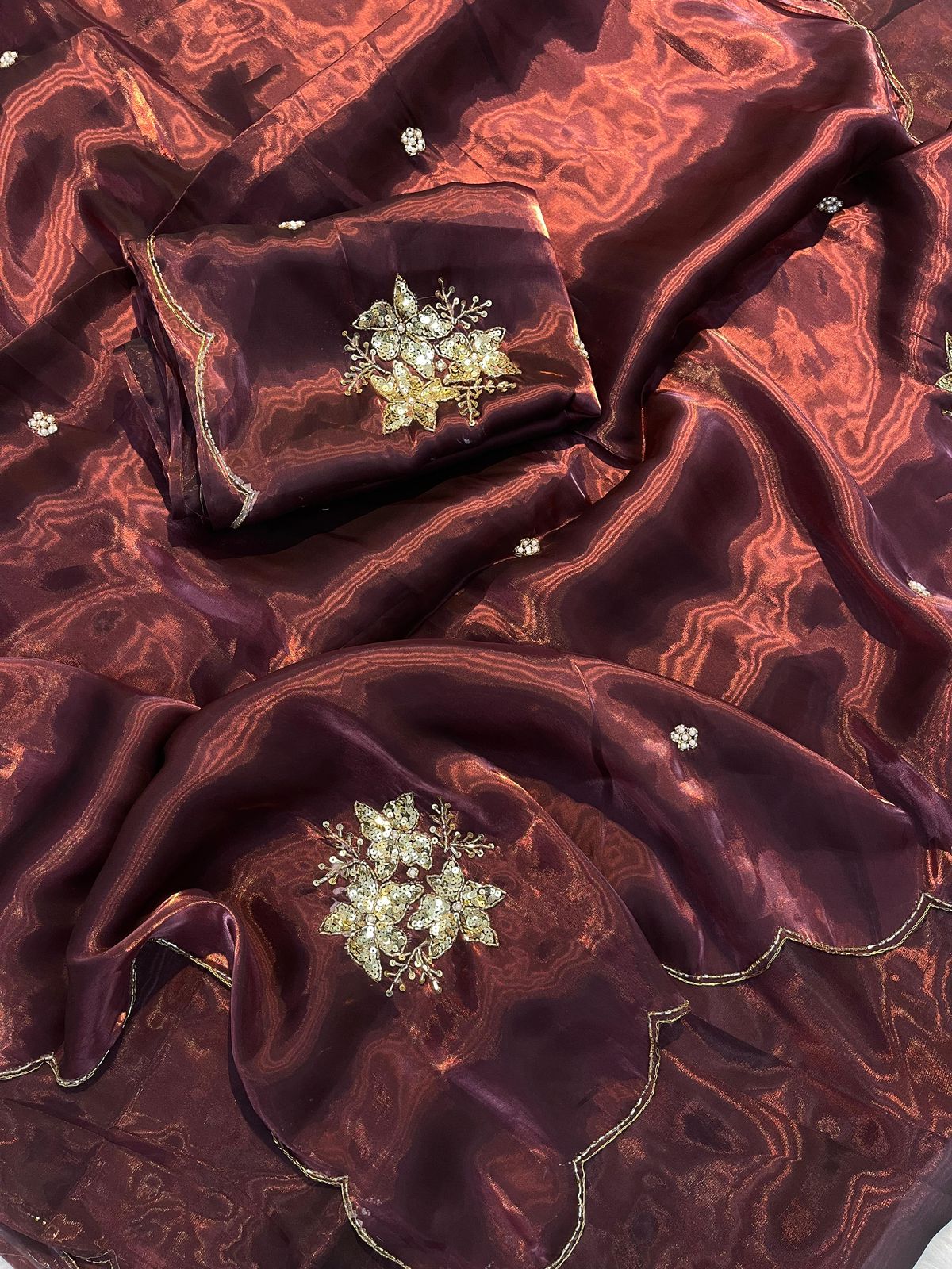 🌟 Saree Work: Hand Embroidery with Real Sequin Work