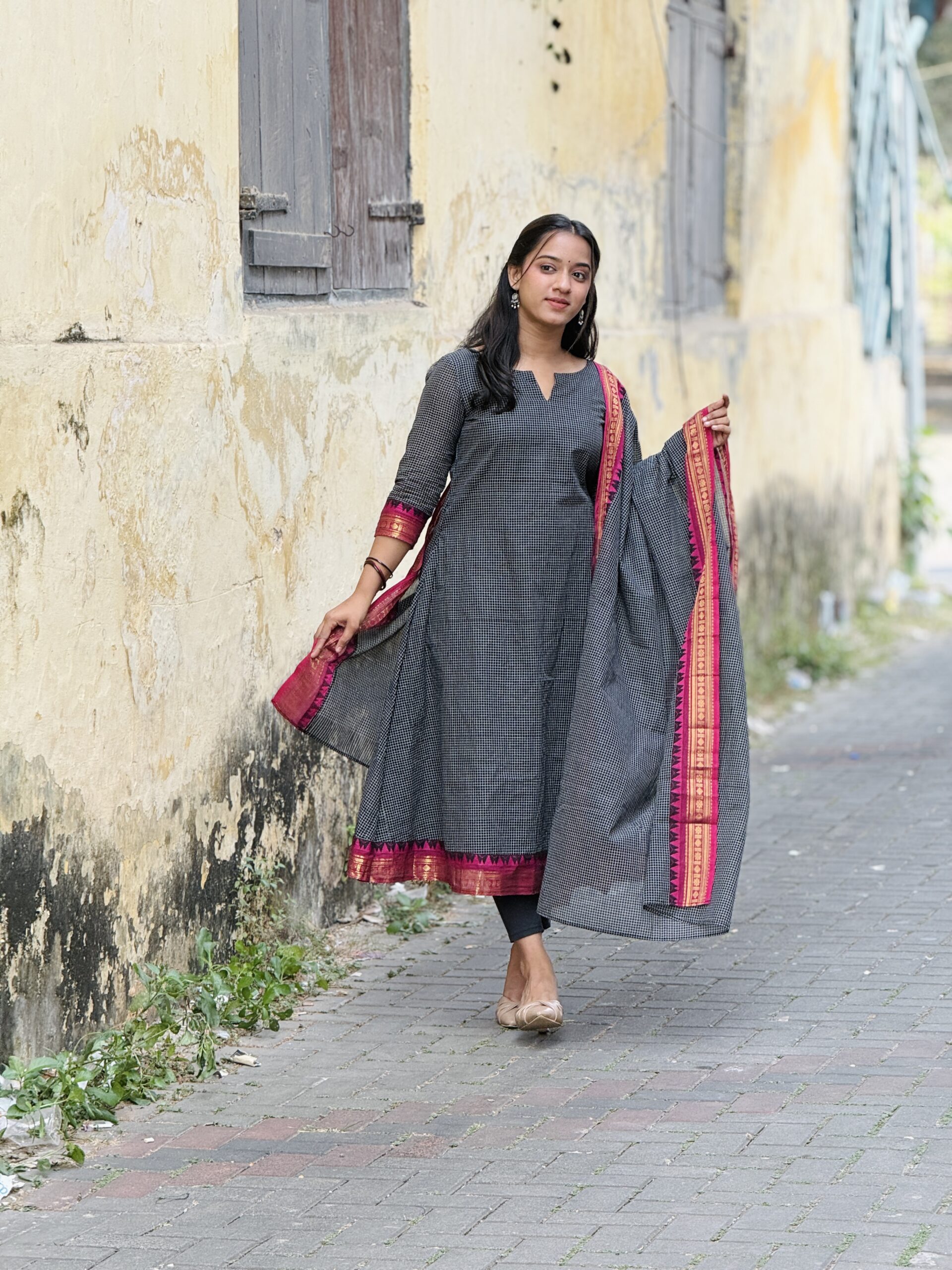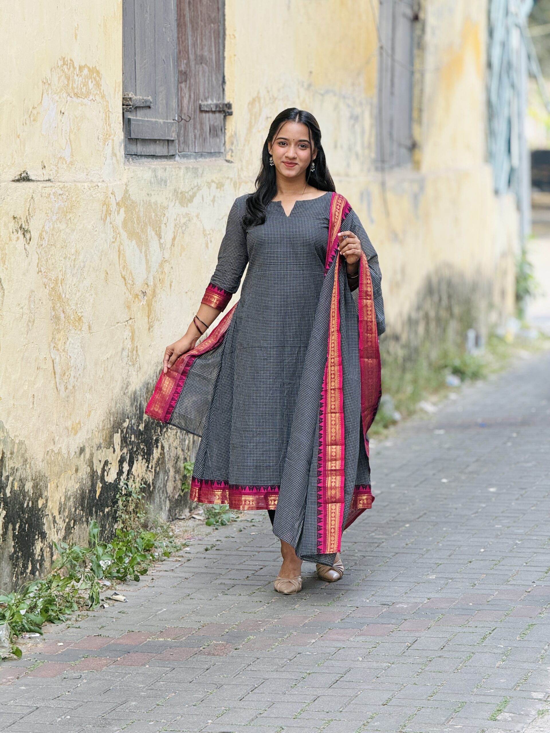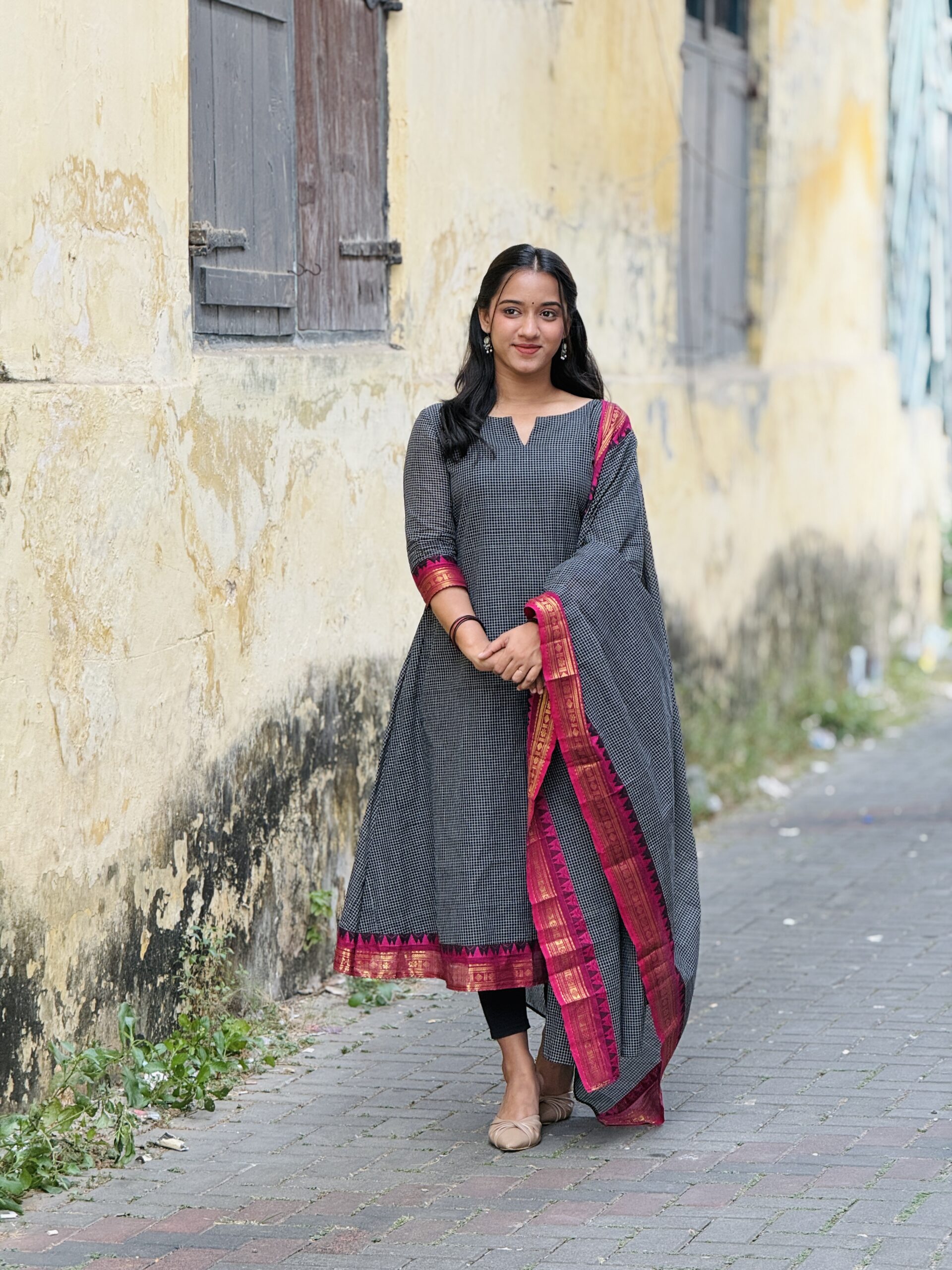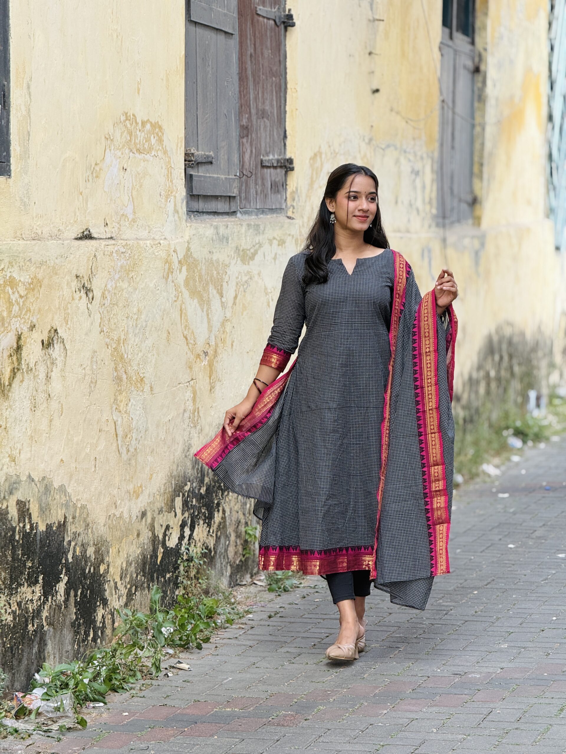 Elegant and traditional Korvai Kanchi cotton salwar set crafted from premium breathable cotton fabric for all-day comfort. Features classic Korvai style weaving with rich ethnic appeal, perfect for festive wear, traditional functions, and everyday elegance. The beautifully designed top pairs with a graceful matching dupatta that adds a refined and stylish finish. Soft texture, lightweight feel, and timeless South Indian craftsmanship make it a must-have ethnic outfit. �