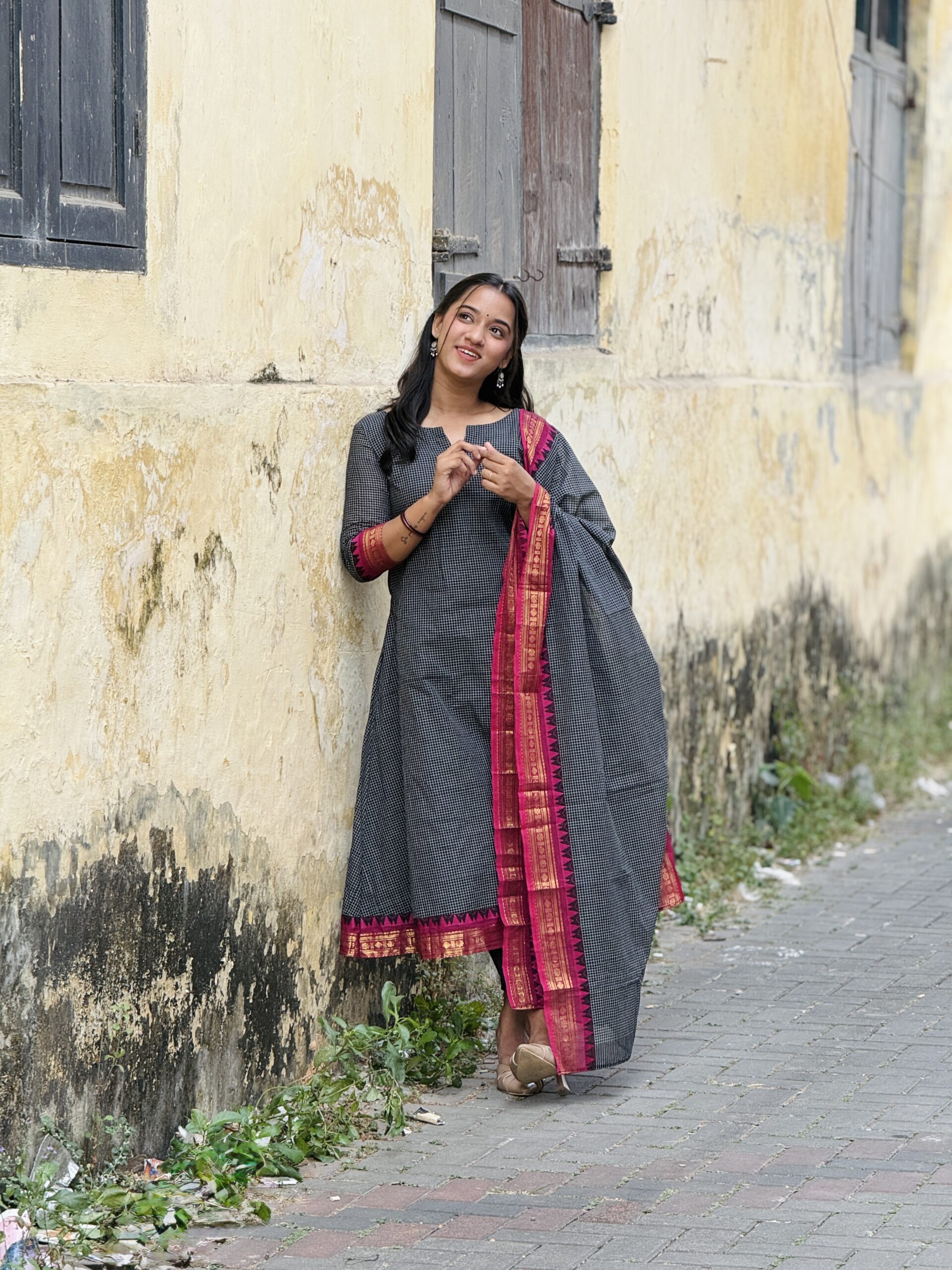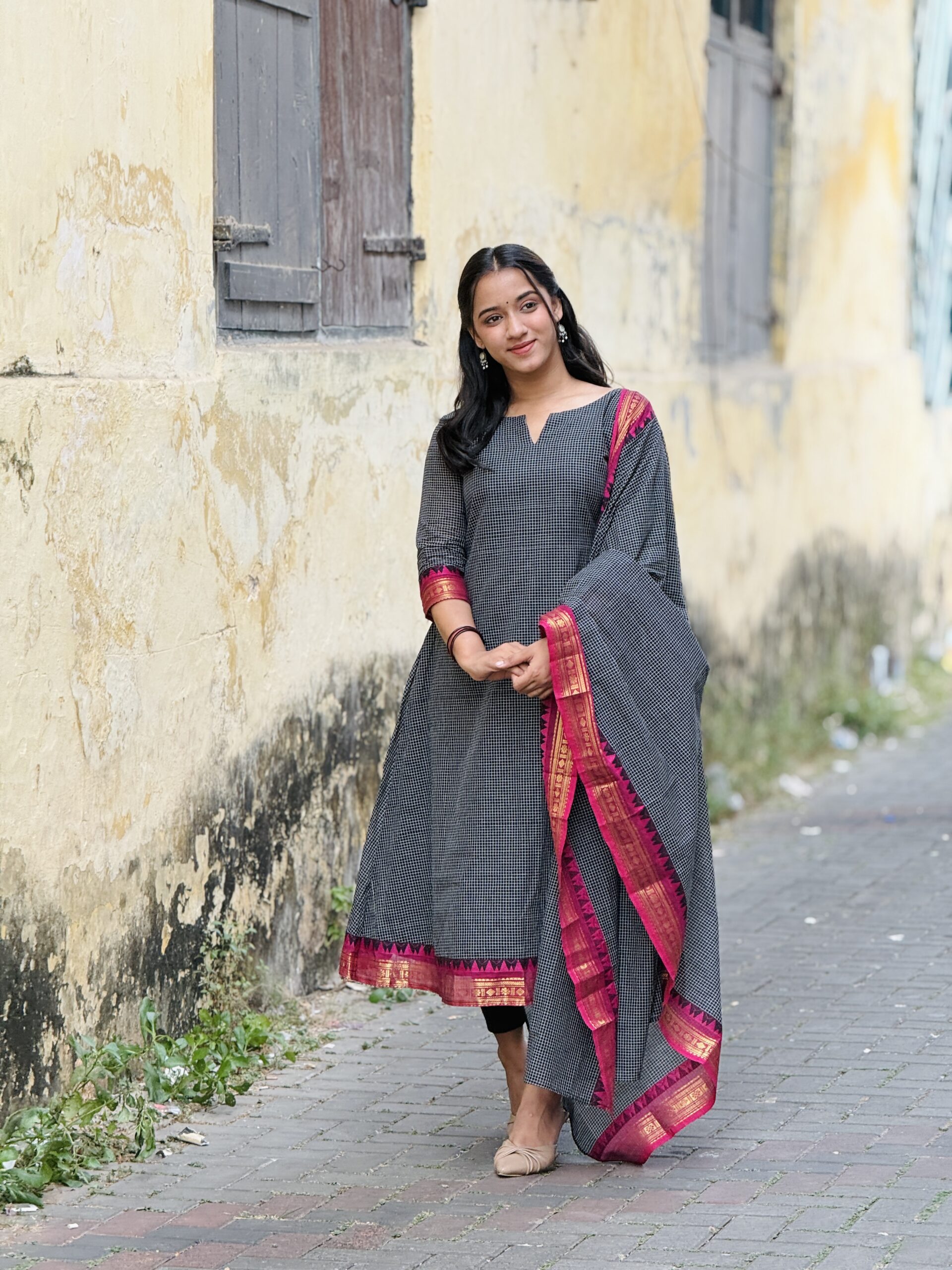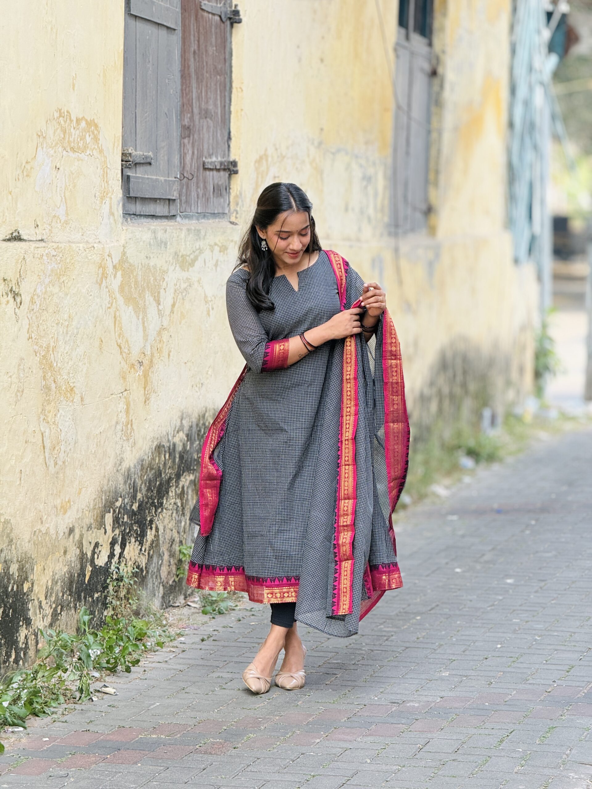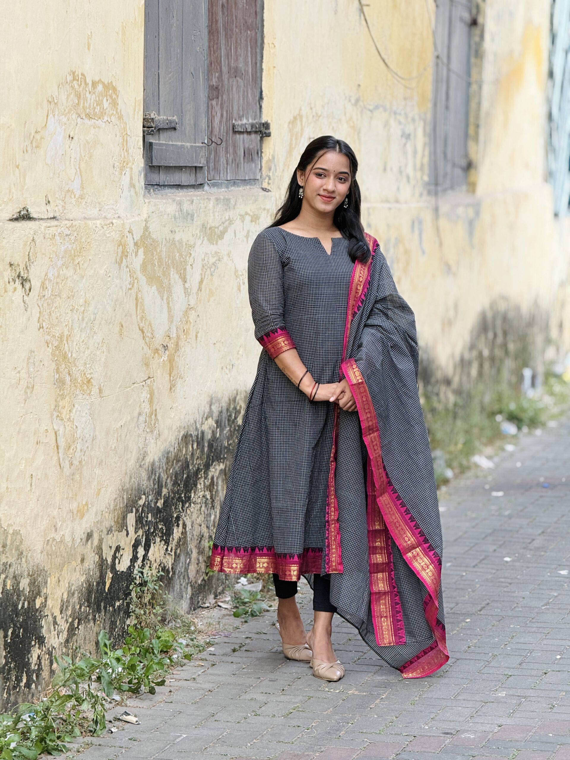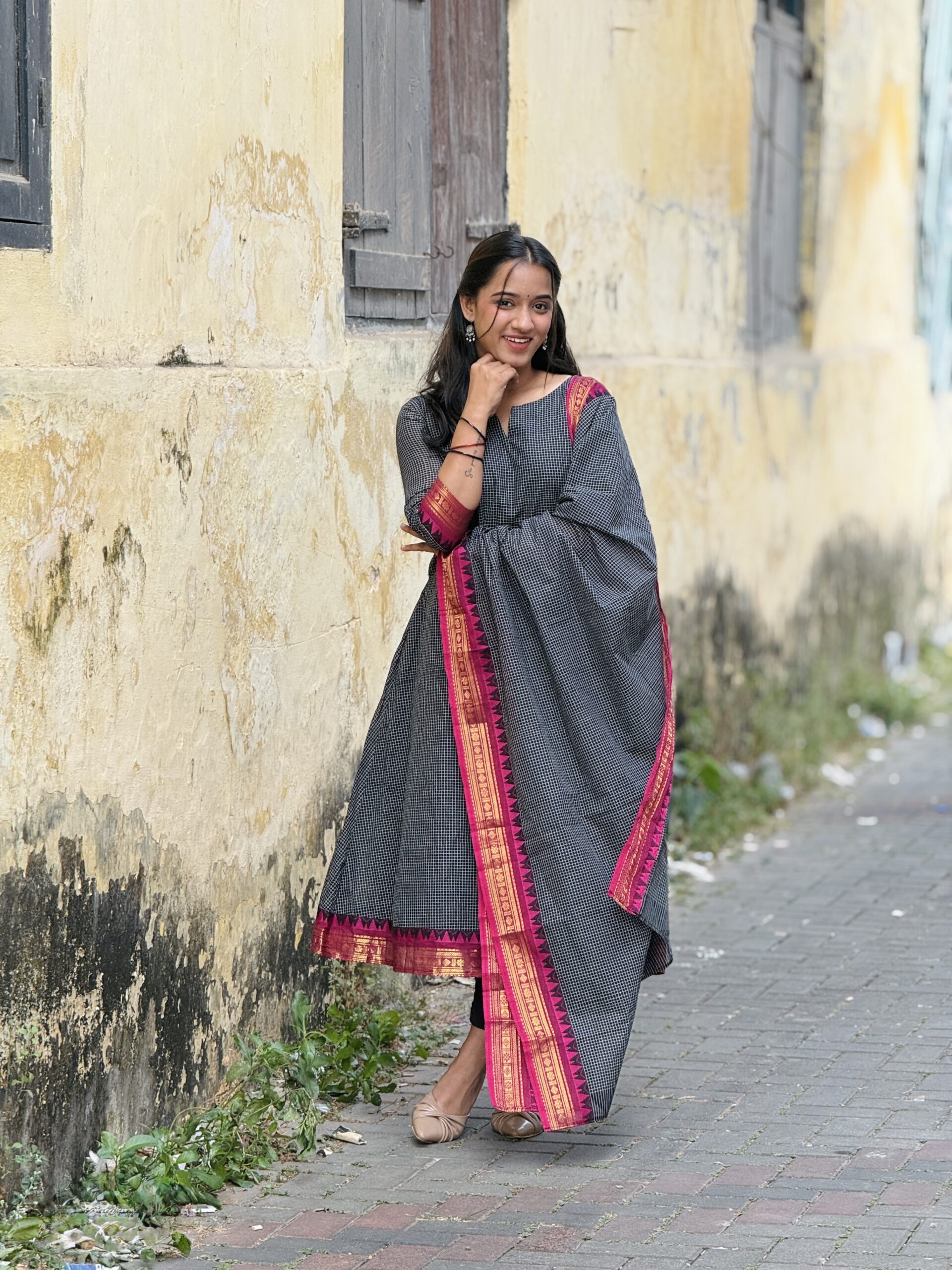 Elegant and traditional Korvai Kanchi cotton salwar set crafted from premium breathable cotton fabric for all-day comfort. Features classic Korvai style weaving with rich ethnic appeal, perfect for festive wear, traditional functions, and everyday elegance. The beautifully designed top pairs with a graceful matching dupatta that adds a refined and stylish finish. Soft texture, lightweight feel, and timeless South Indian craftsmanship make it a must-have ethnic outfit. �