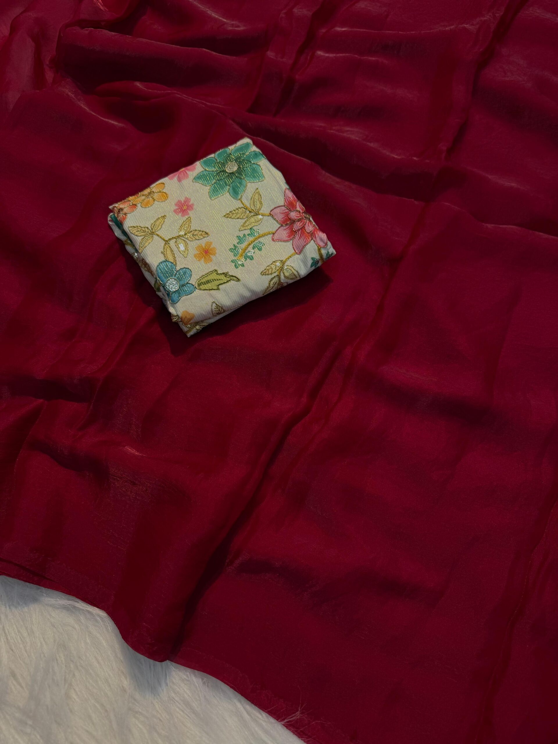 👚 Blouse: Meti Silk with Position Print & Work (Unstitched)