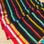 🎨 Design: Rangoli-Inspired Multicolour Stripes with Zari Border