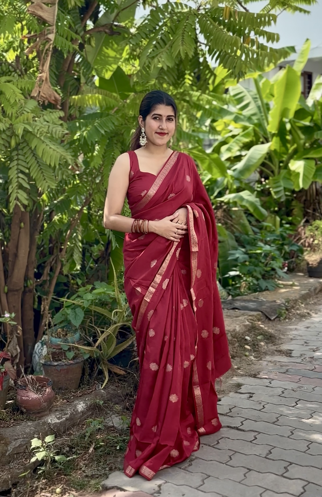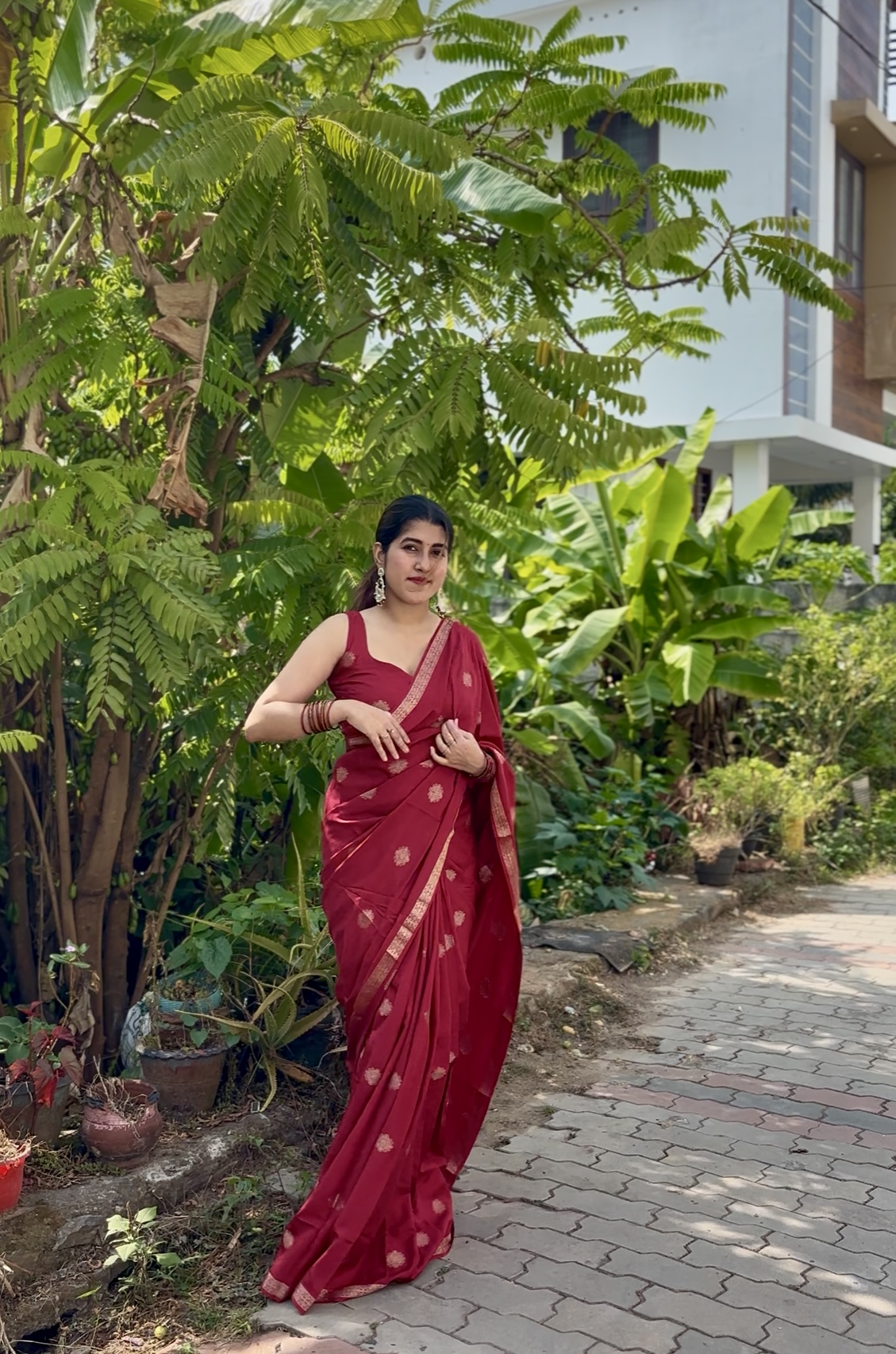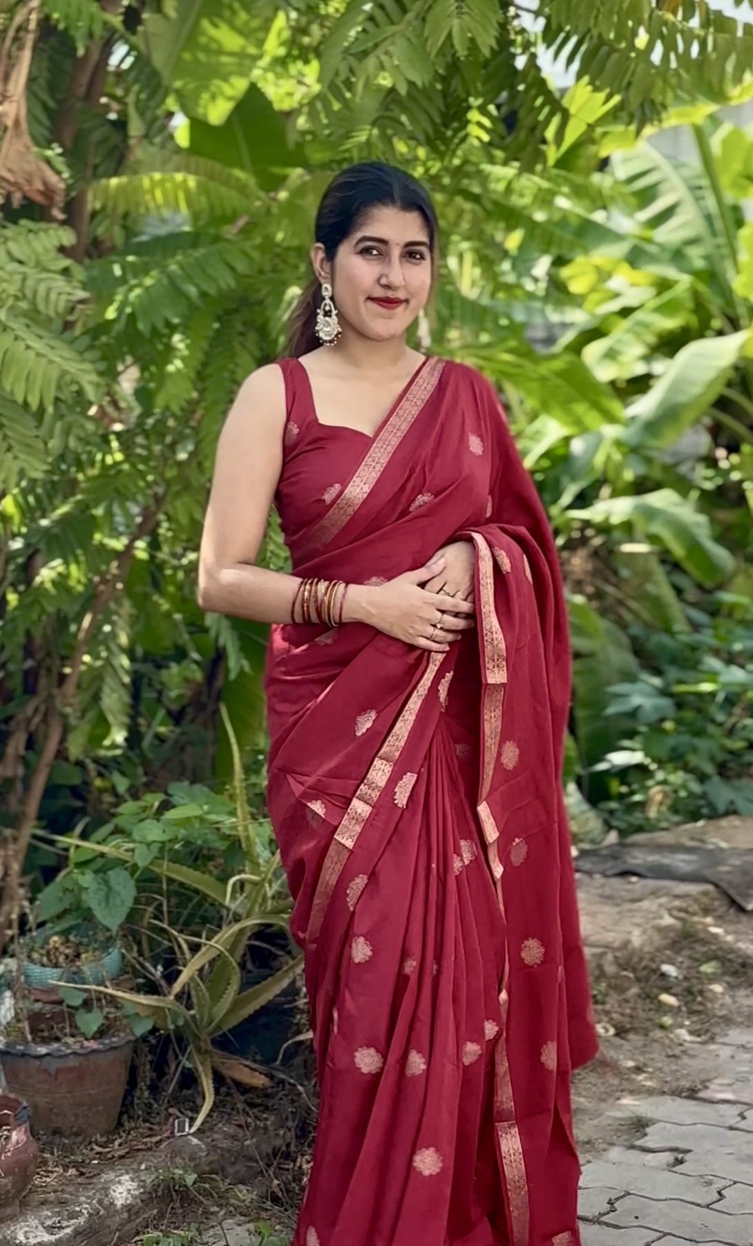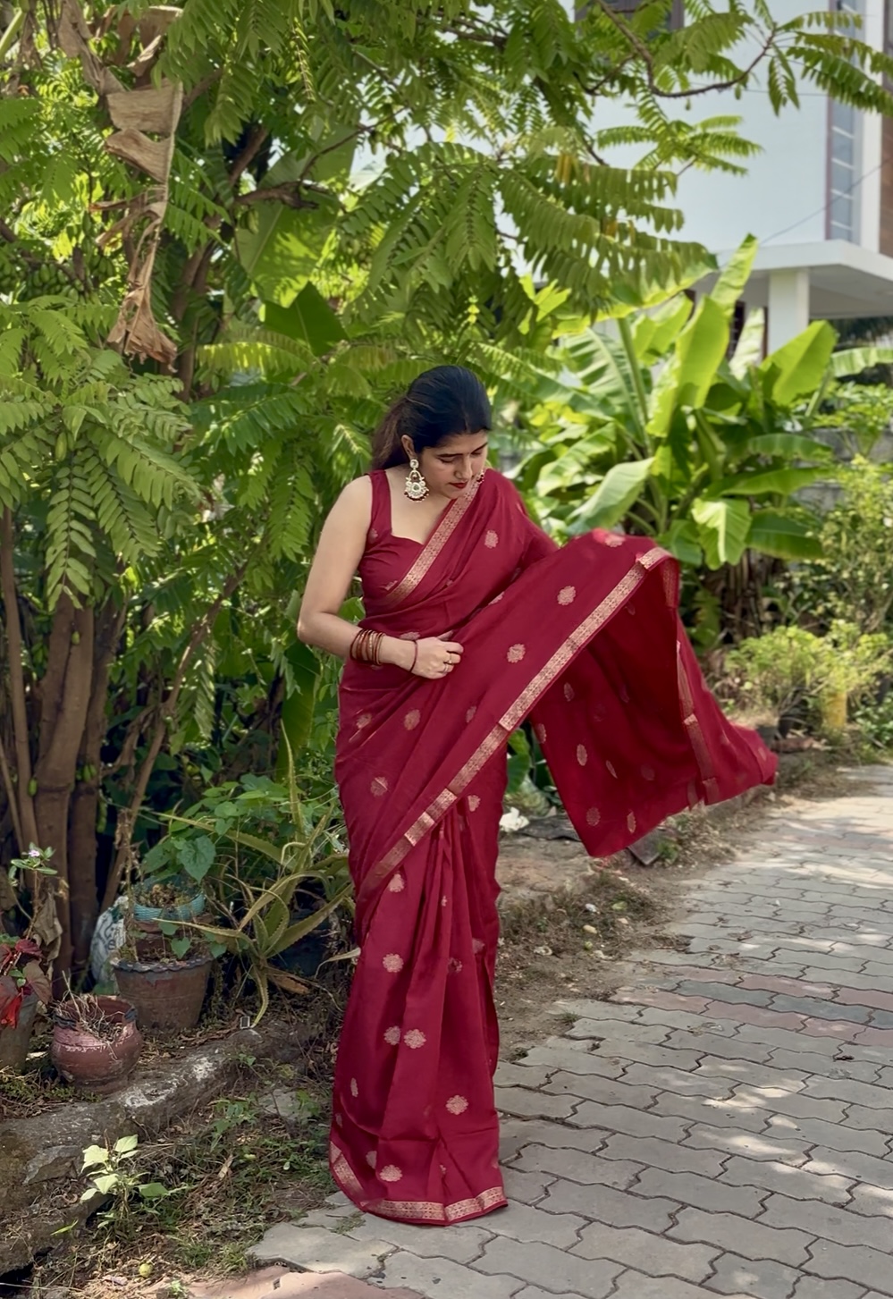 Crafted in rich pure viscose dola fabric, this elegant saree features a delicate small zari border paired with a beautiful self-weave pattern. The highlight is the graceful big butta figure woven all over the saree, giving it a timeless and classy appeal. Comes with a matching running blouse to complete the look.