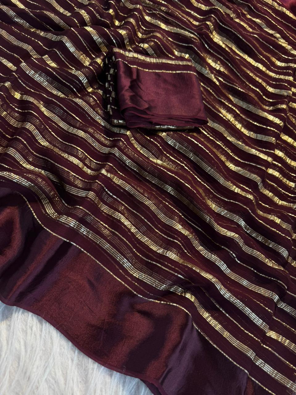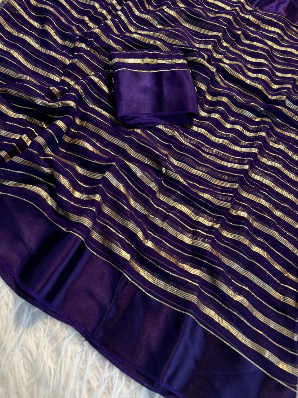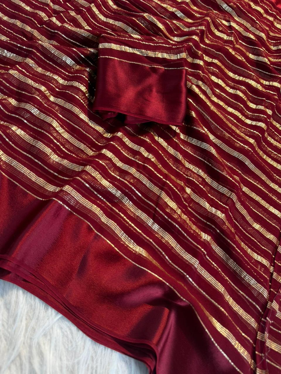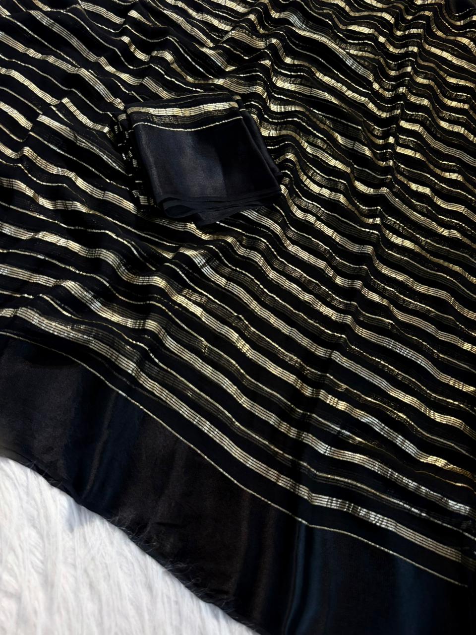 Elevate your ethnic collection with this elegant pure viscose georgette saree featuring a stylish stripe pattern throughout. Designed with a premium viscose satin border that adds a rich and graceful finish, this saree is perfect for both casual and festive wear. The lightweight and flowy fabric ensures comfort along with a flattering drape.