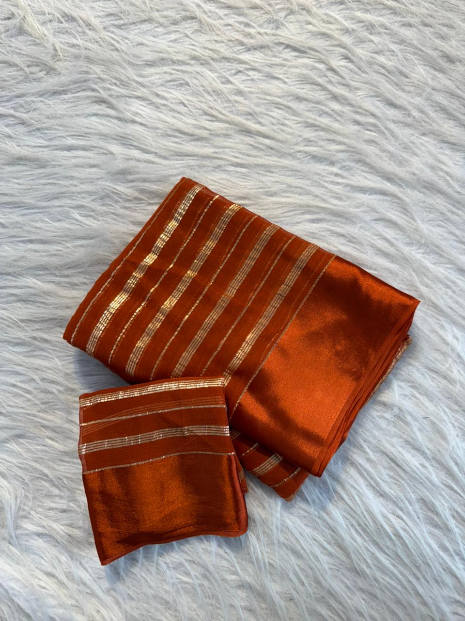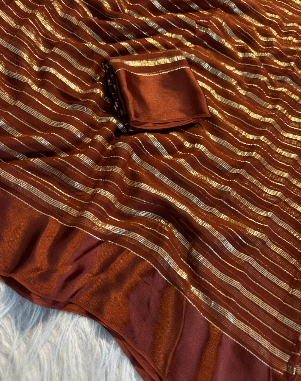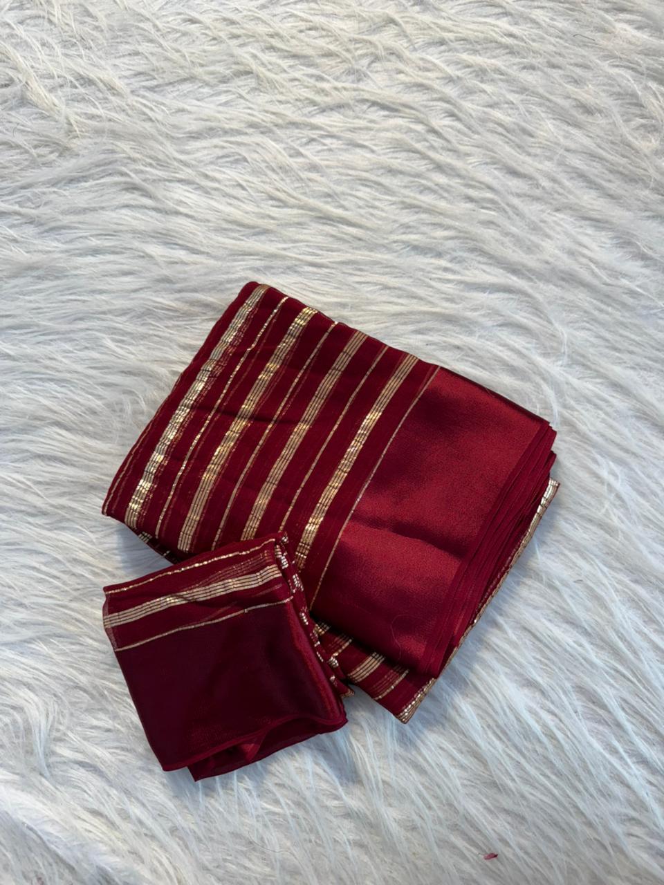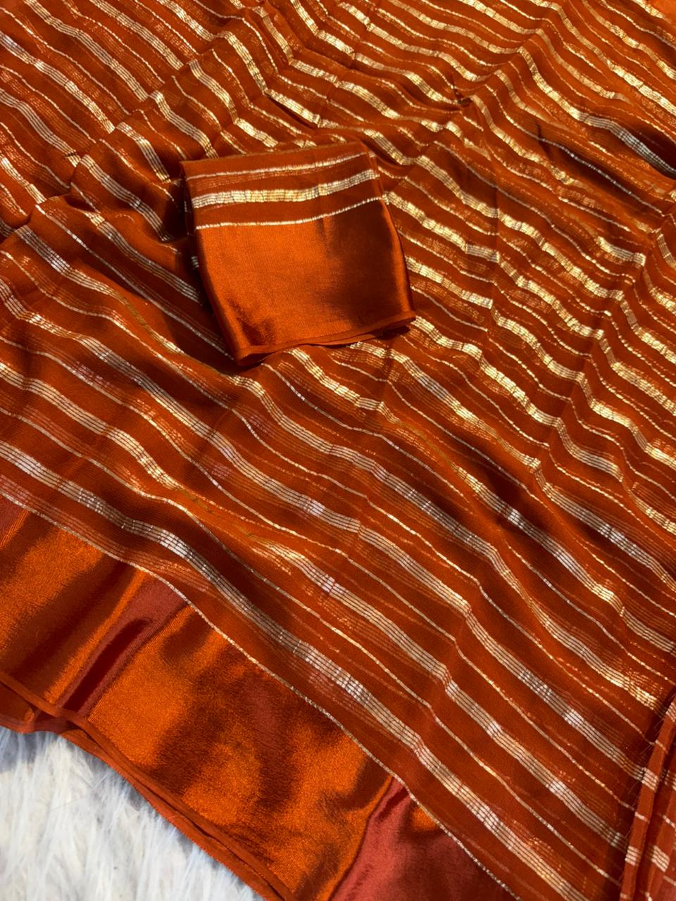 Elevate your ethnic collection with this elegant pure viscose georgette saree featuring a stylish stripe pattern throughout. Designed with a premium viscose satin border that adds a rich and graceful finish, this saree is perfect for both casual and festive wear. The lightweight and flowy fabric ensures comfort along with a flattering drape.