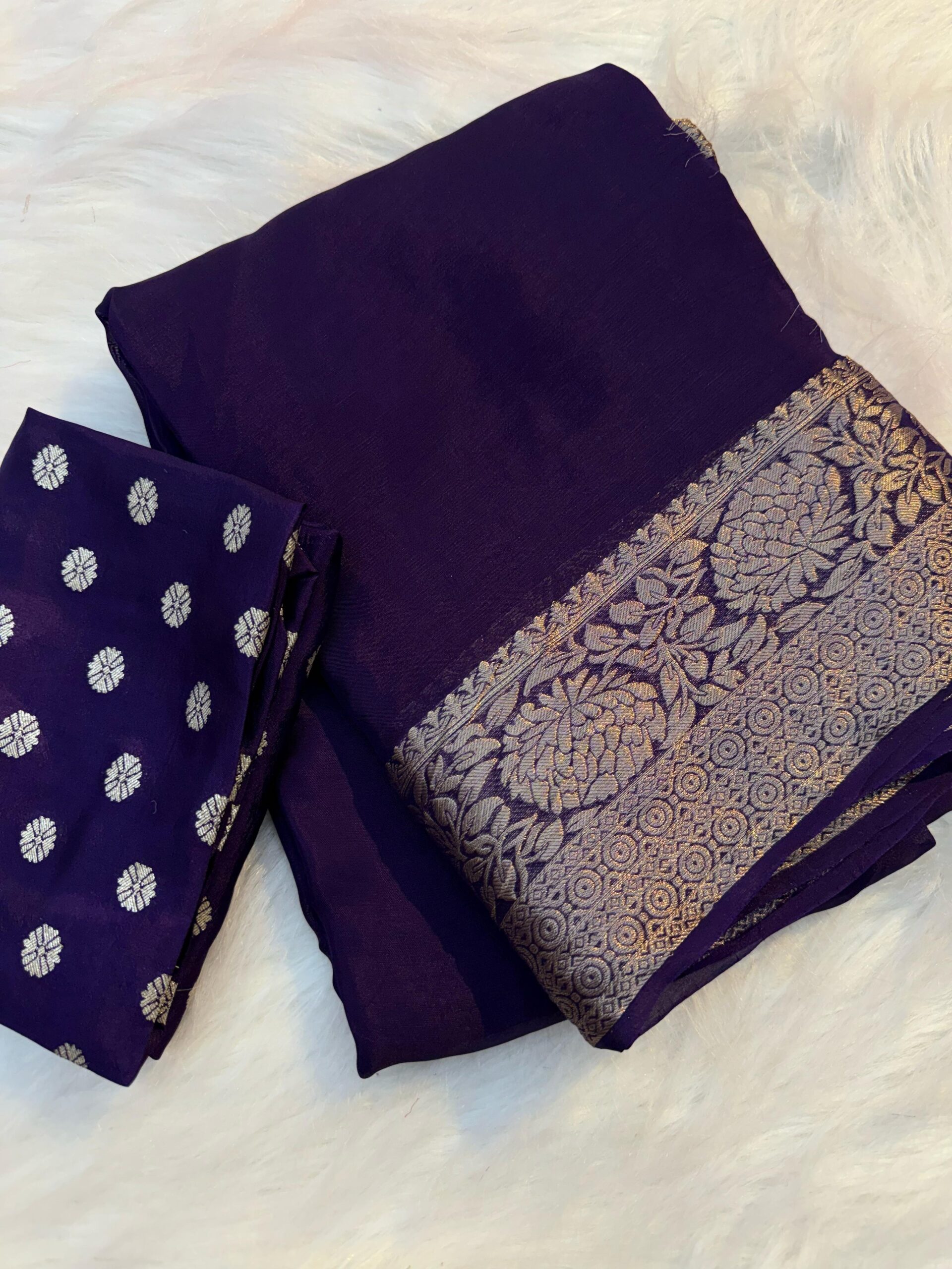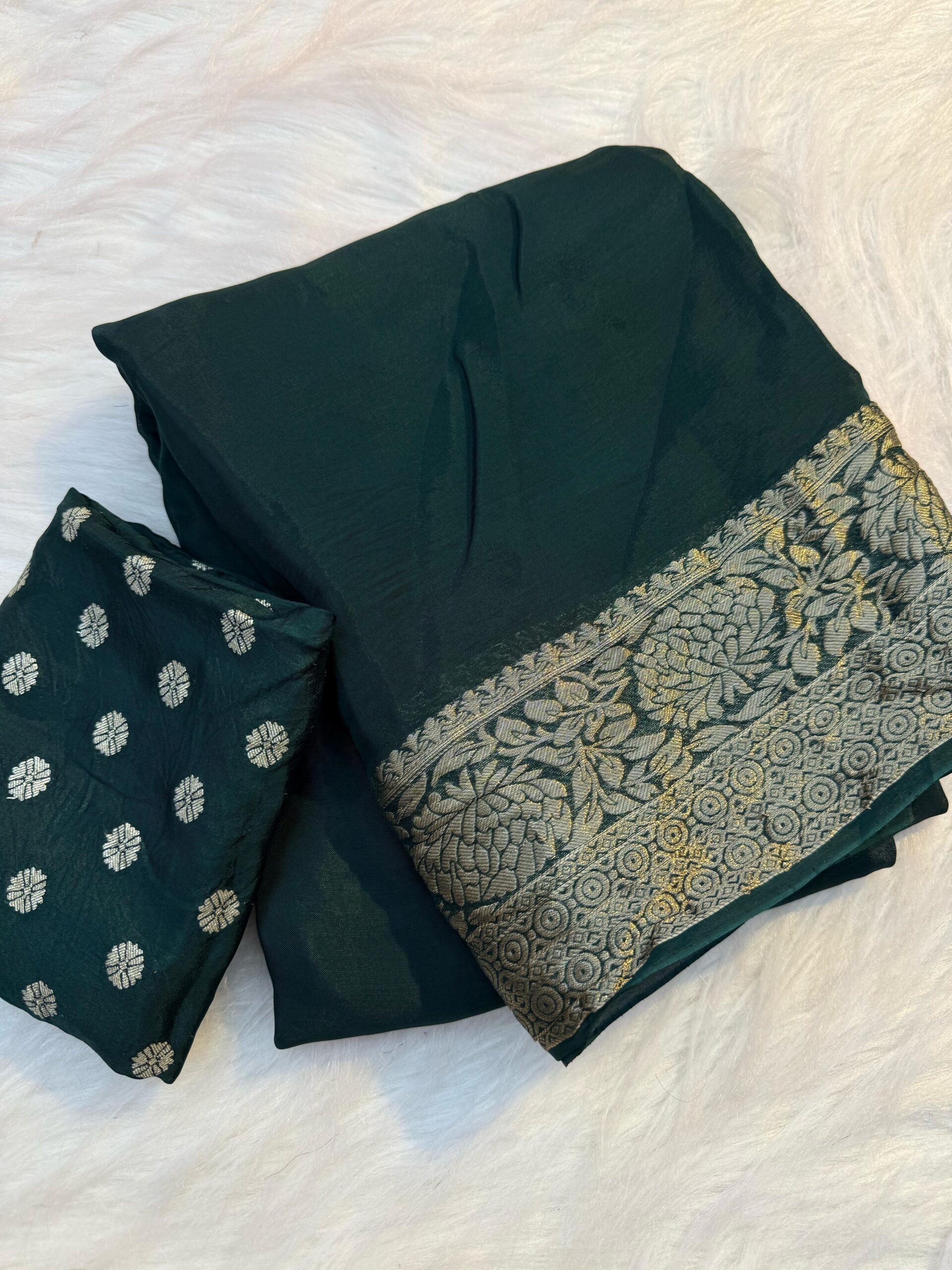 Pure viscose mysore crepe saree with party wear designer viscose blouse
