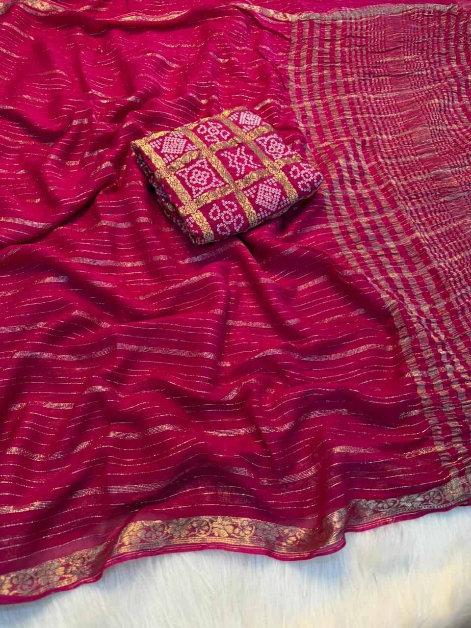 Blouse: Pure viscose heavy bandhani (matching)