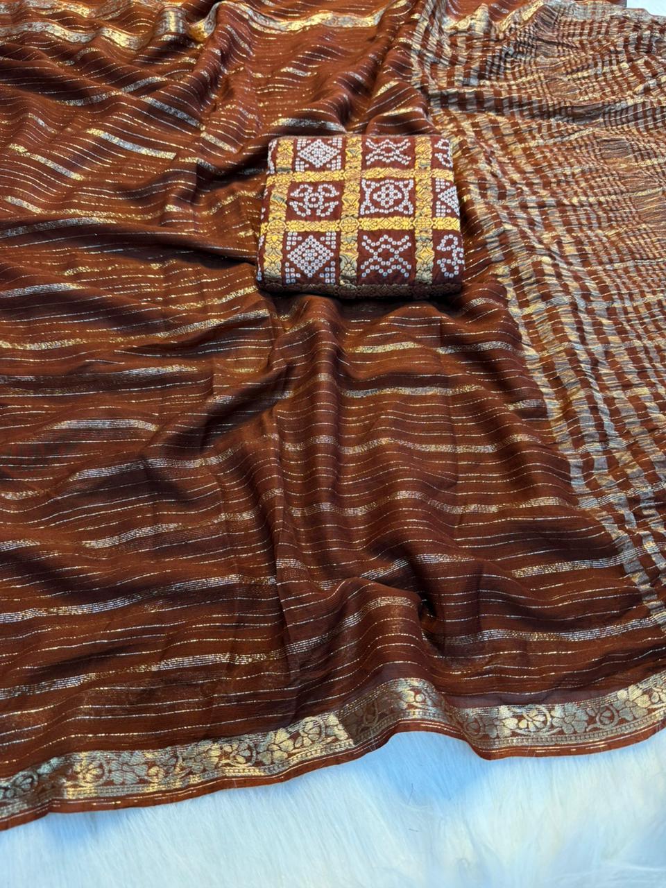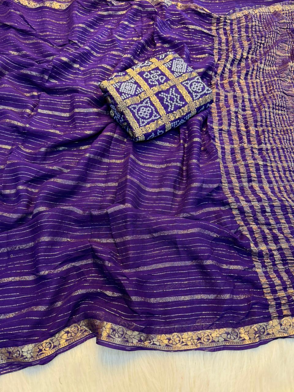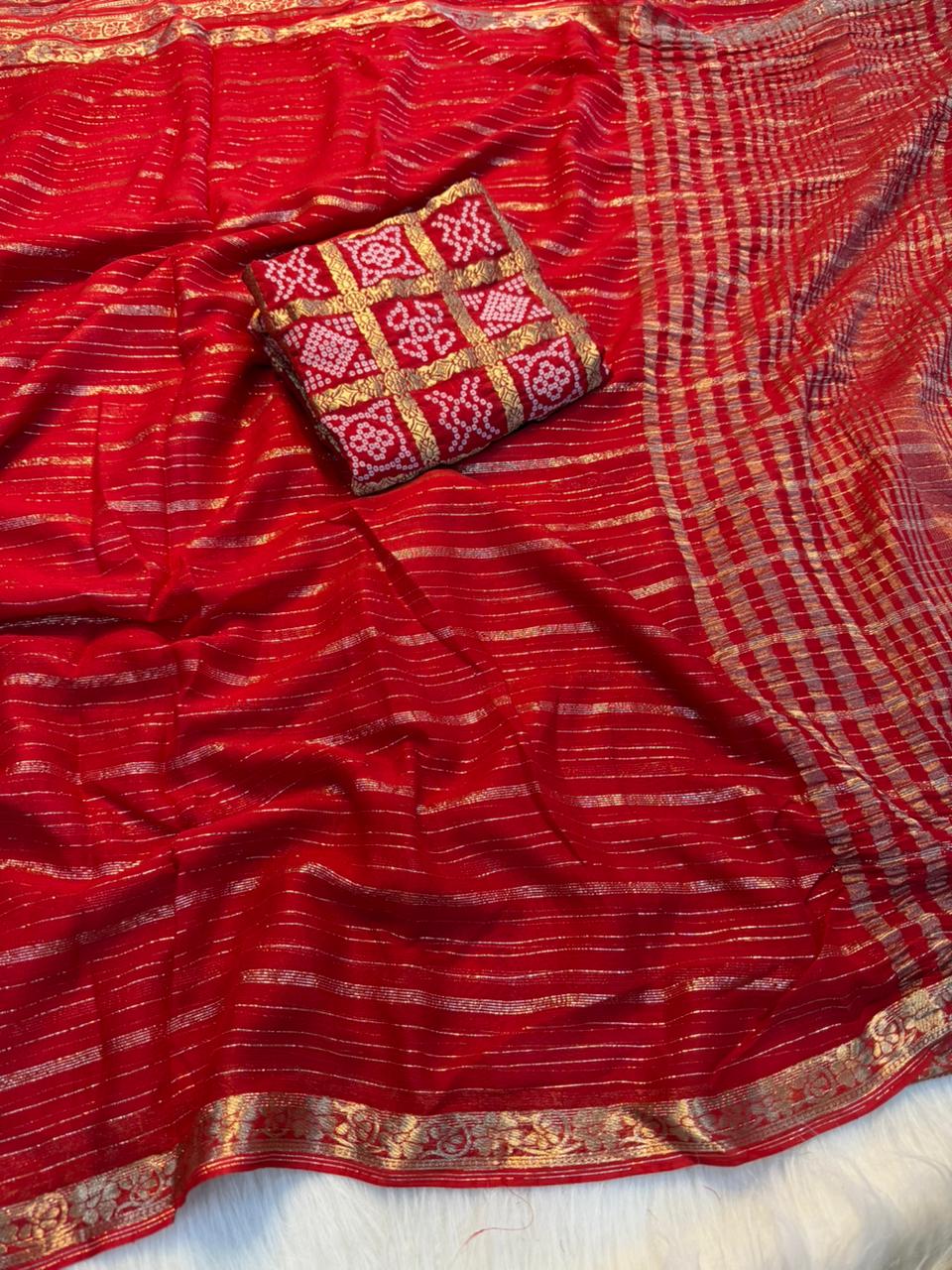 Paired with a pure viscose heavy bandhani matching blouse, this ensemble is perfect for weddings, festive occasions, and special celebrations.