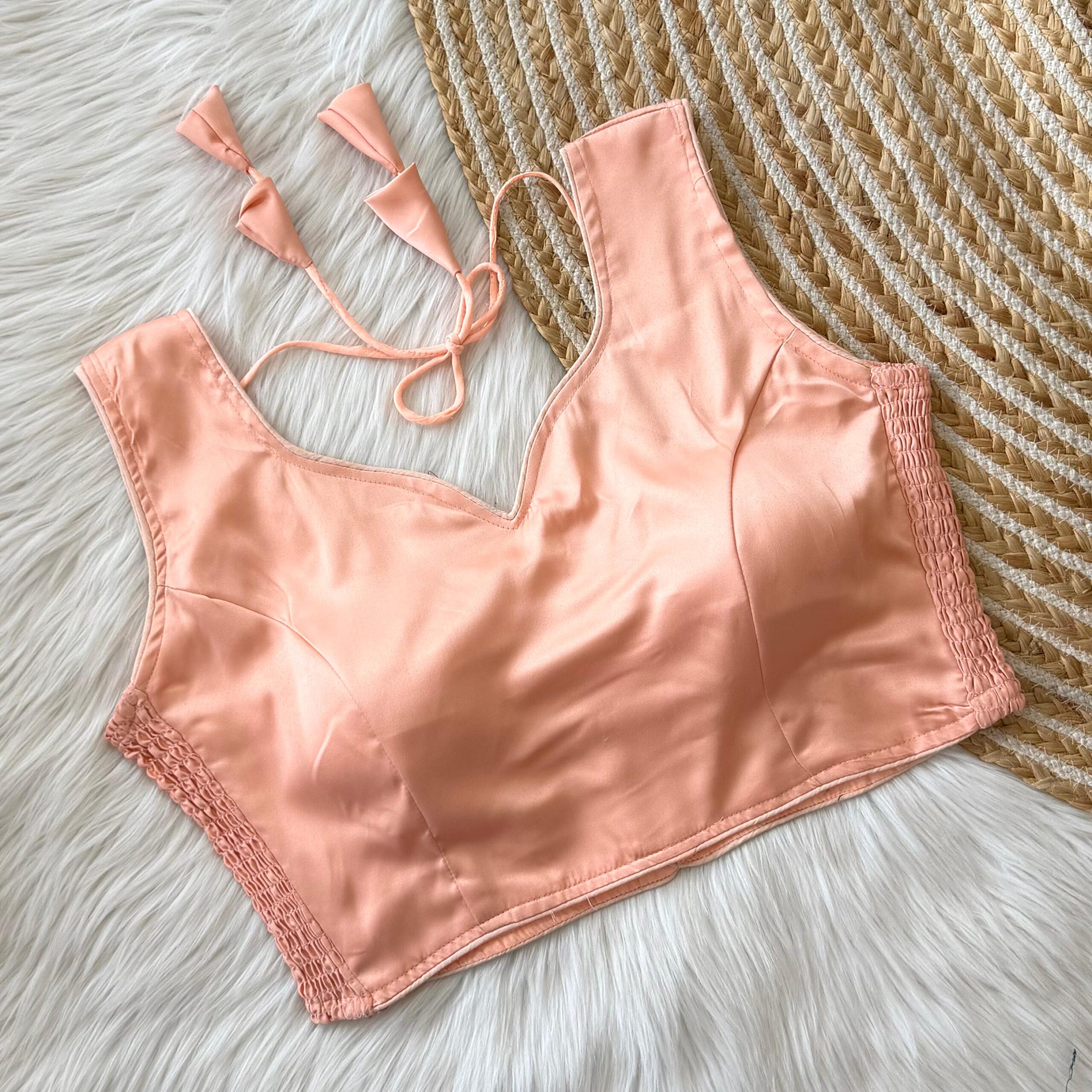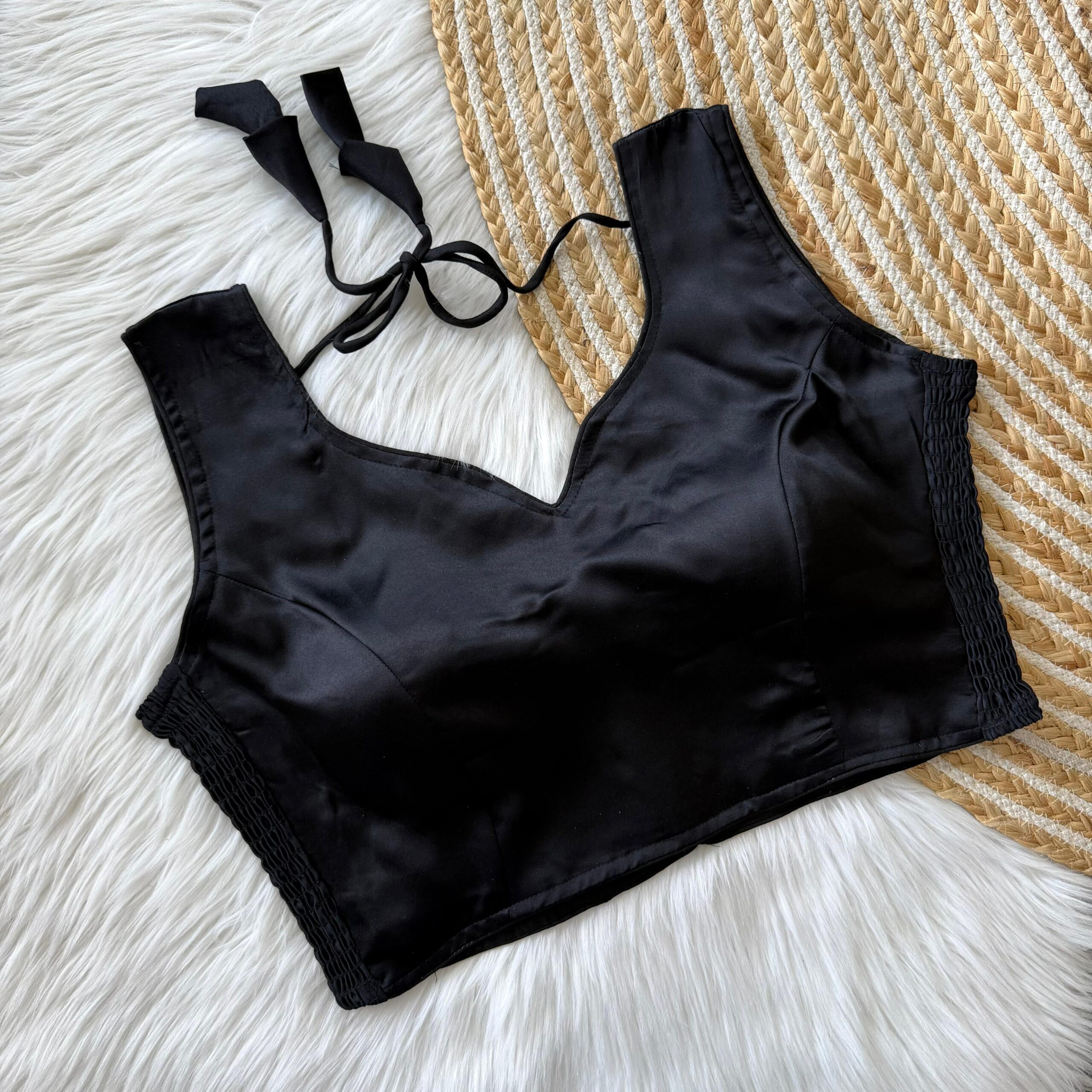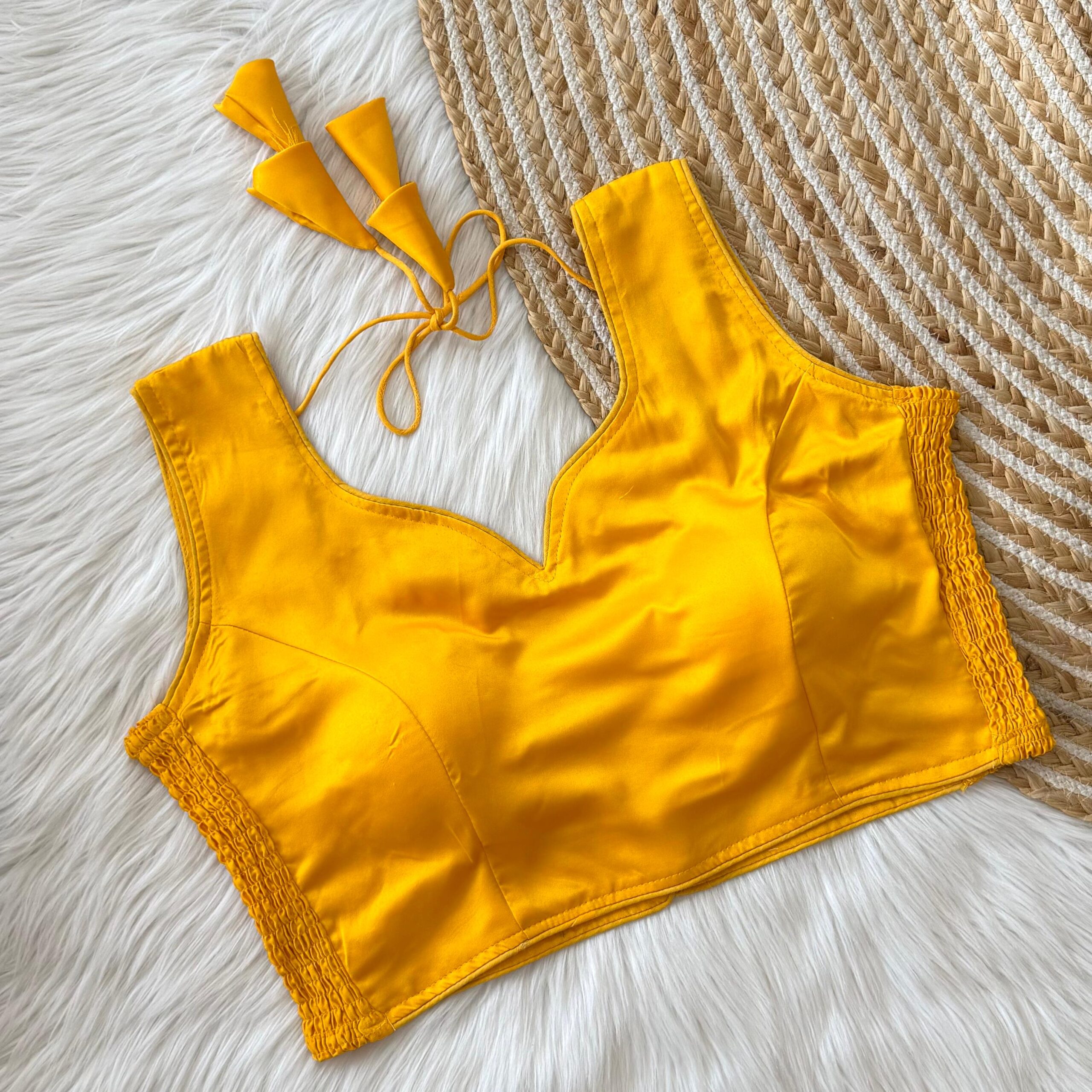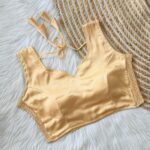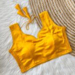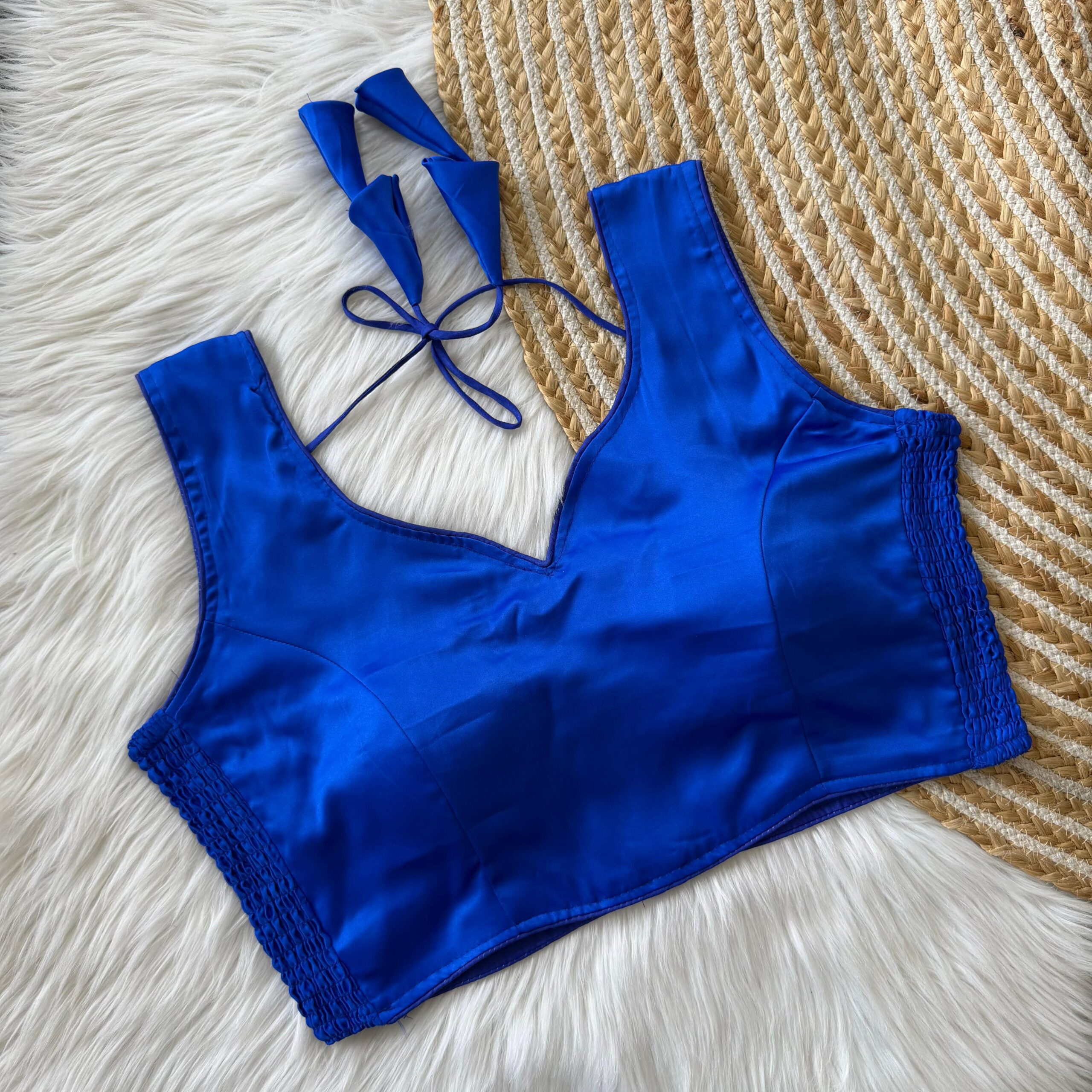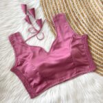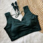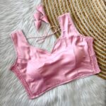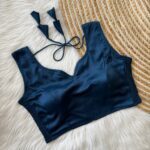 This sleeveless blouse comes with built-in padding for added convenience and a structured look, making it perfect for effortless styling. Its versatile design pairs well with both traditional and contemporary sarees.