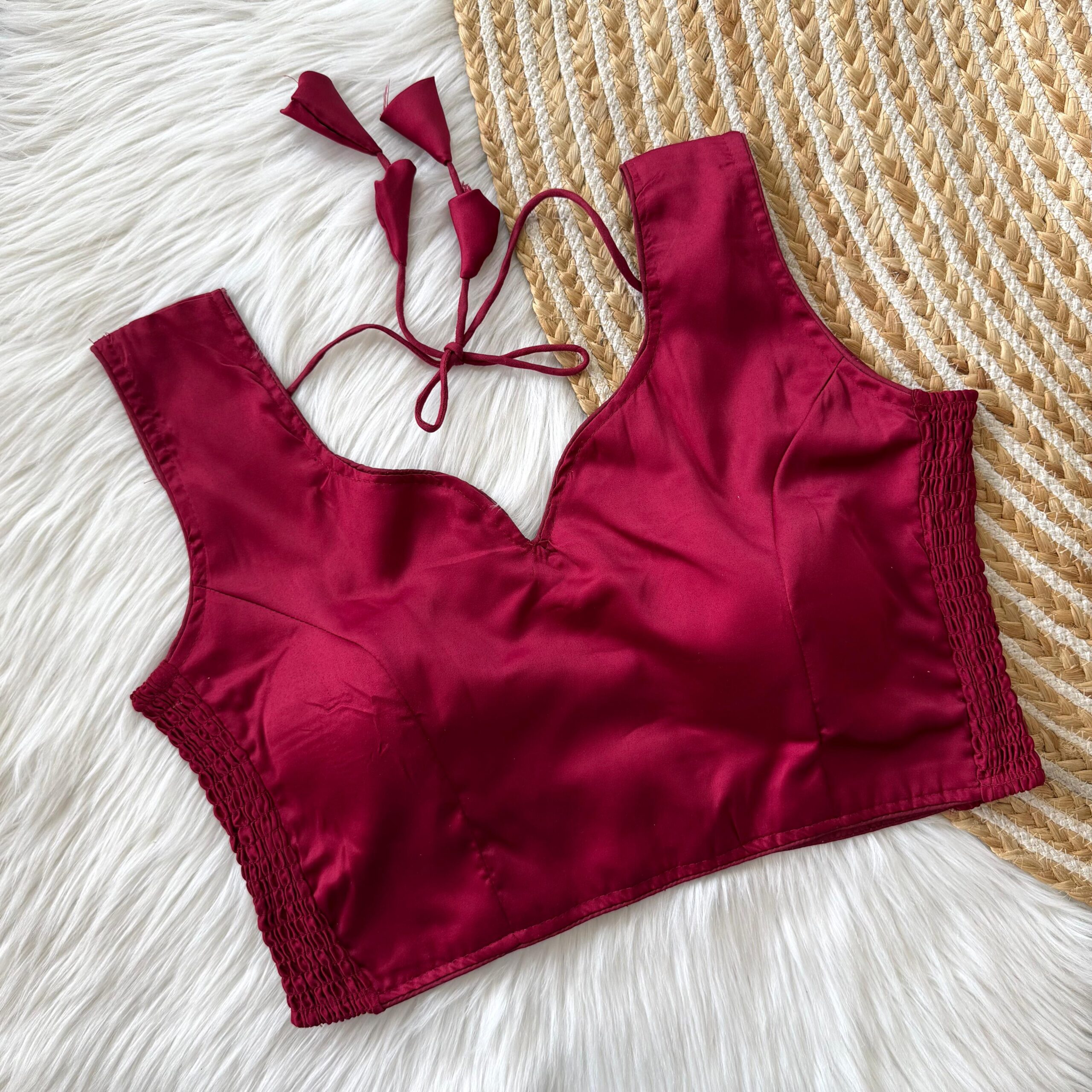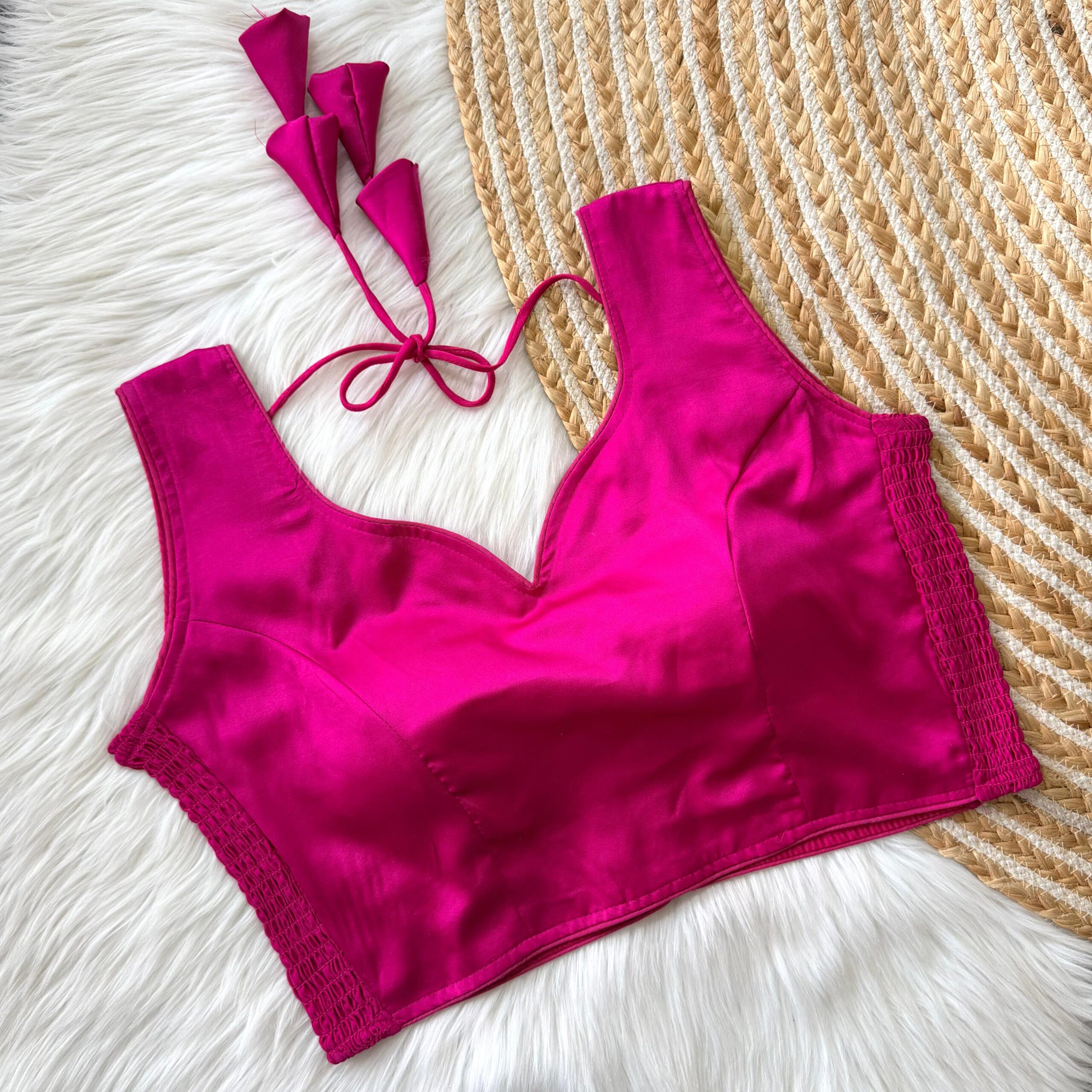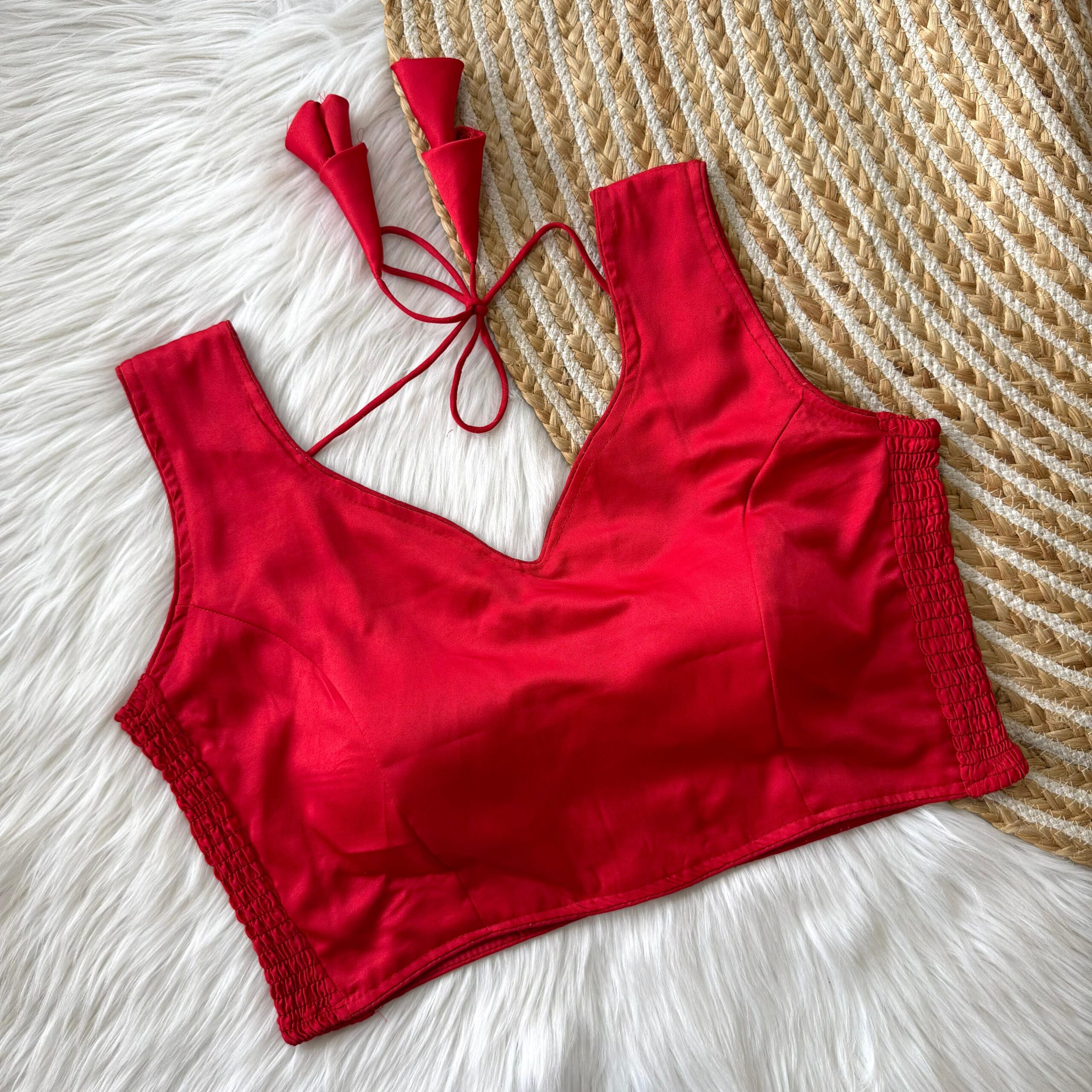 Upgrade your saree look with this elegant soft pure silk readymade blouse, designed for both comfort and style. Crafted from premium silk fabric, it features an elastic attachment that ensures a snug and flexible fit, adapting beautifully to your body shape.